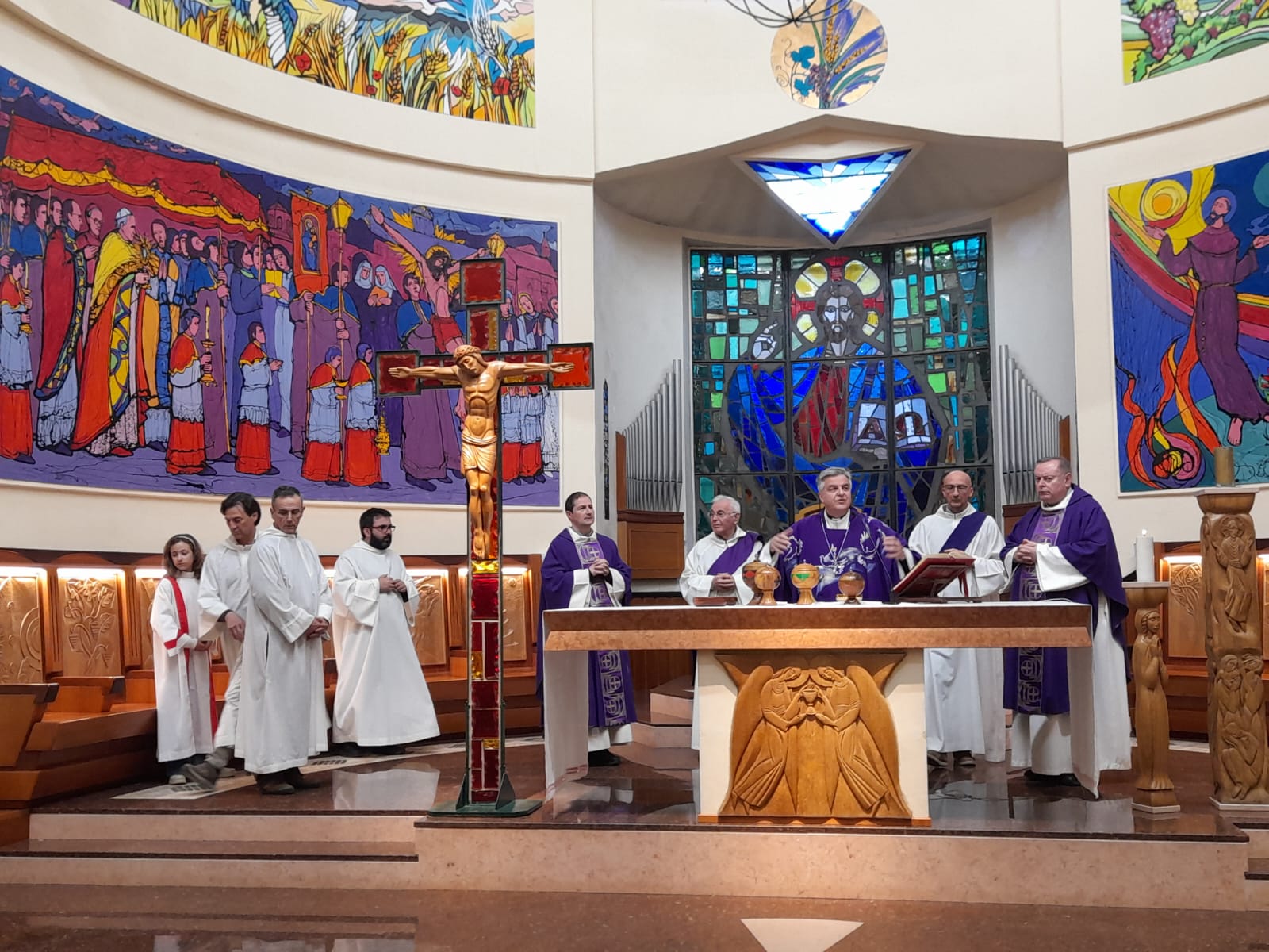 Al termine dell’Assemblea tutti i partecipanti si sono ritrovati nella chiesa Cristo Re per celebrare la Santa Messa, presieduta dal vescovo Gianpiero Palmieri e concelebrata da don Gianni Croci, delegato per la Pastorale e direttore di Caritas diocesana, don Gianni Capriotti, economo diocesano e segretario del CDAE, dai diaconi Giovanni Maria Bettoni, Luciano Caporossi e Natale Flaviano Marinozzi, dal seminarista Simone Gaspari e da tutto il popolo di Dio presente.