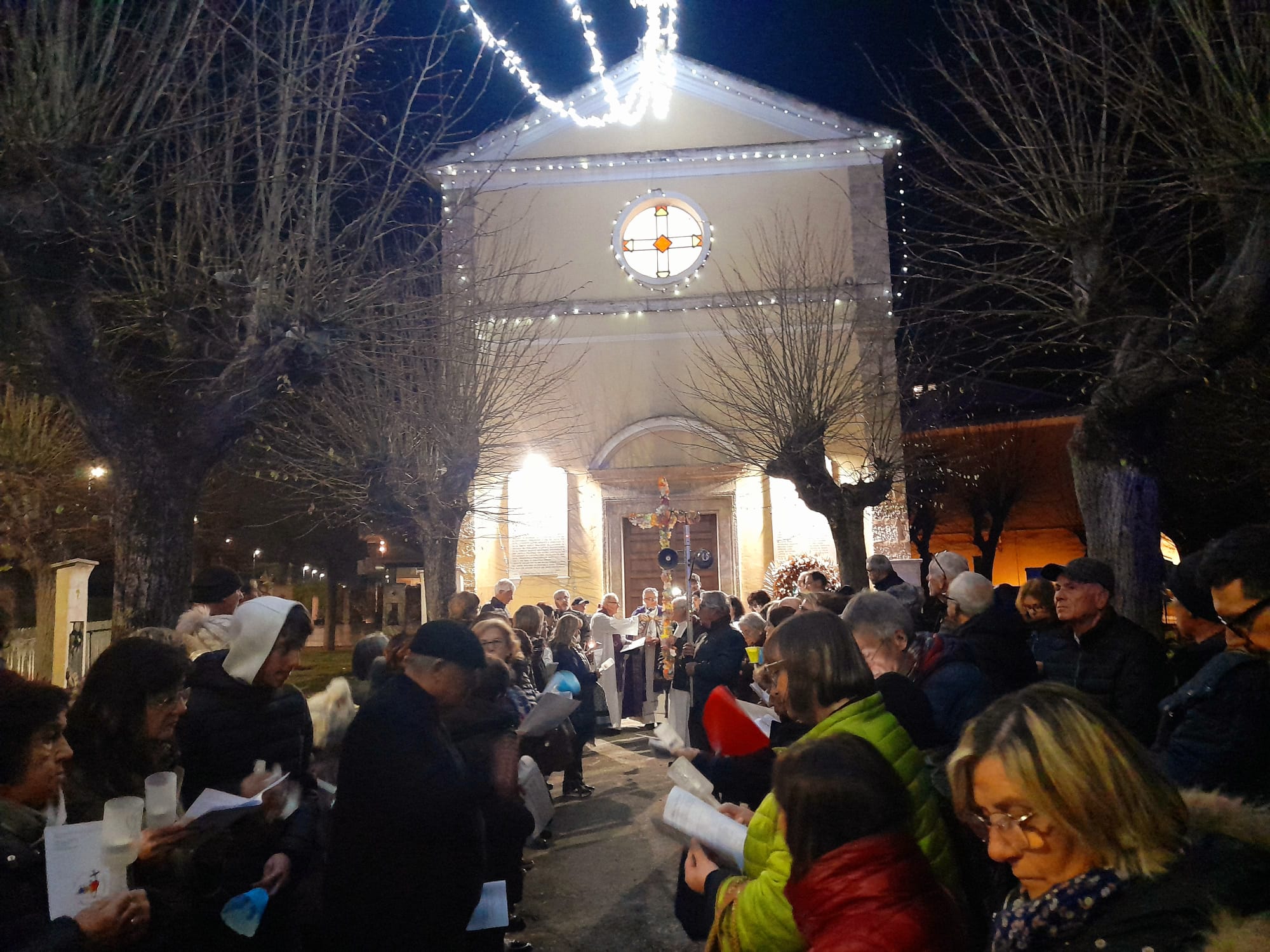 Dopo le Confessioni e la preghiera del Magnificat, il parroco don Luigino Scarponi ha invitato tutti i presenti ad un gesto concreto di carità, riprendendo le parole di papa Francesco: “Speranza invoco in modo accorato per i miliardi di poveri, che spesso mancano del necessario per vivere”. Le offerte libere che sono state raccolte saranno destinate a sostenere la Caritas locale, che da anni aiuta concretamente le famiglie indigenti del territorio. Prima della benedizione finale, i fedeli sono stati invitati a scambiarsi un abbraccio di pace, ulteriore segno di comunione e concordia a cui il perdono ricevuto conduce.