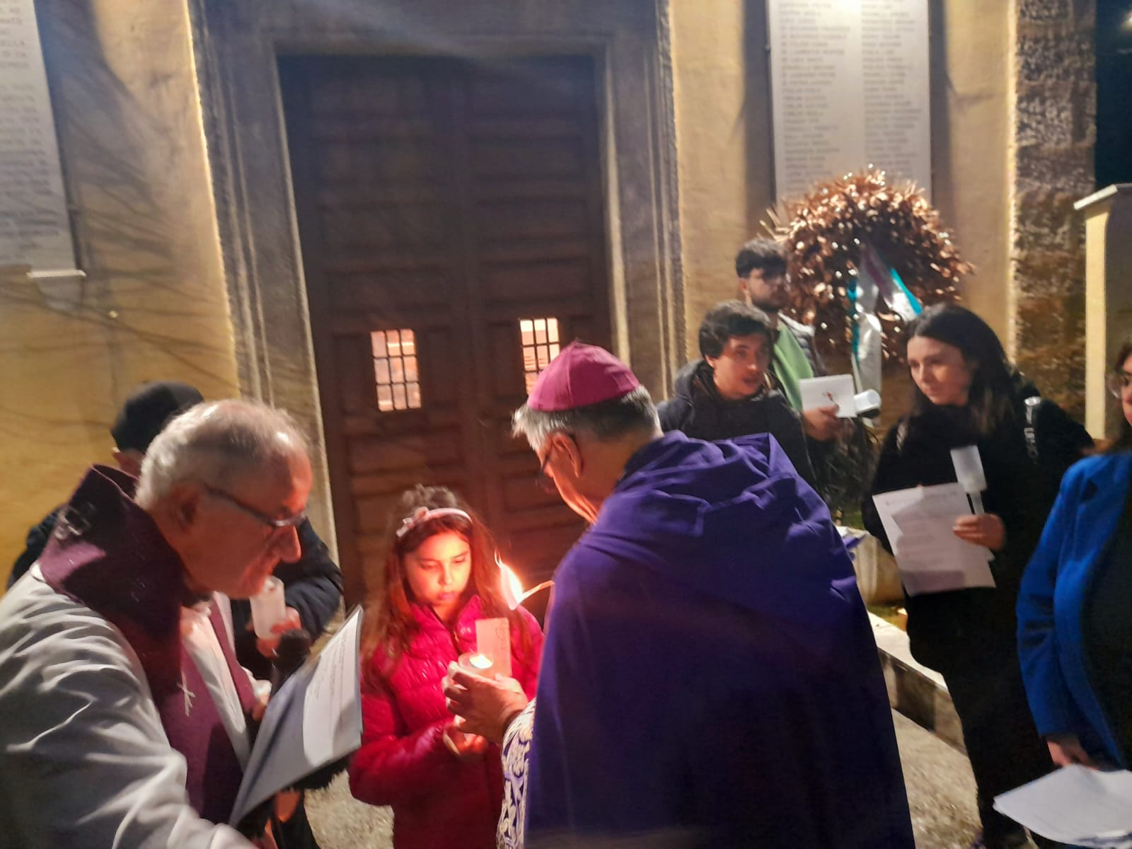 Alle ore 21:00, davanti alla chiesa Santa Maria delle Grazie, è iniziata la Celebrazione Giubilare con la lettura di uno stralcio della Bolla di Indizione del Giubileo Ordinario dell’Anno 2025 dedicato alla speranza, in cui papa Francesco spiega che “la speranza cristiana non illude e non delude, perché è fondata sulla certezza che niente e nessuno potrà mai separarci dall’amore divino”.
