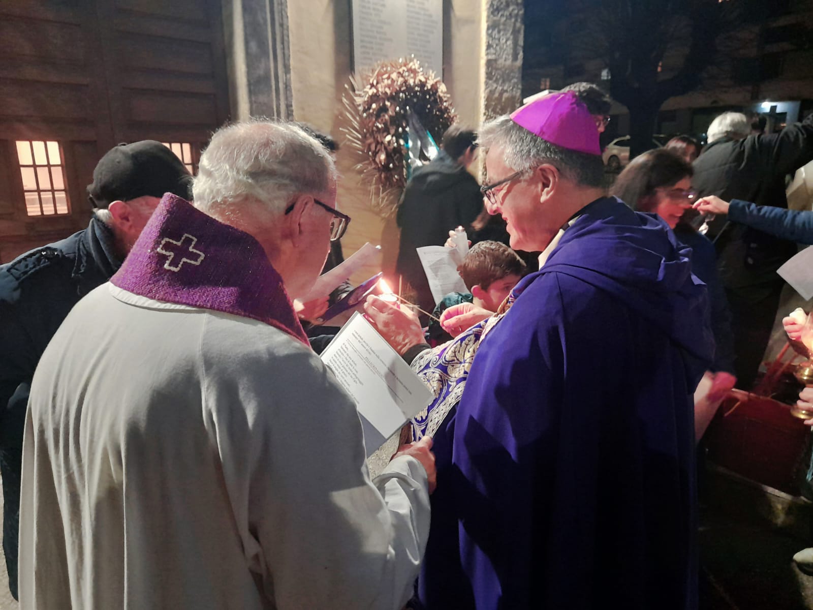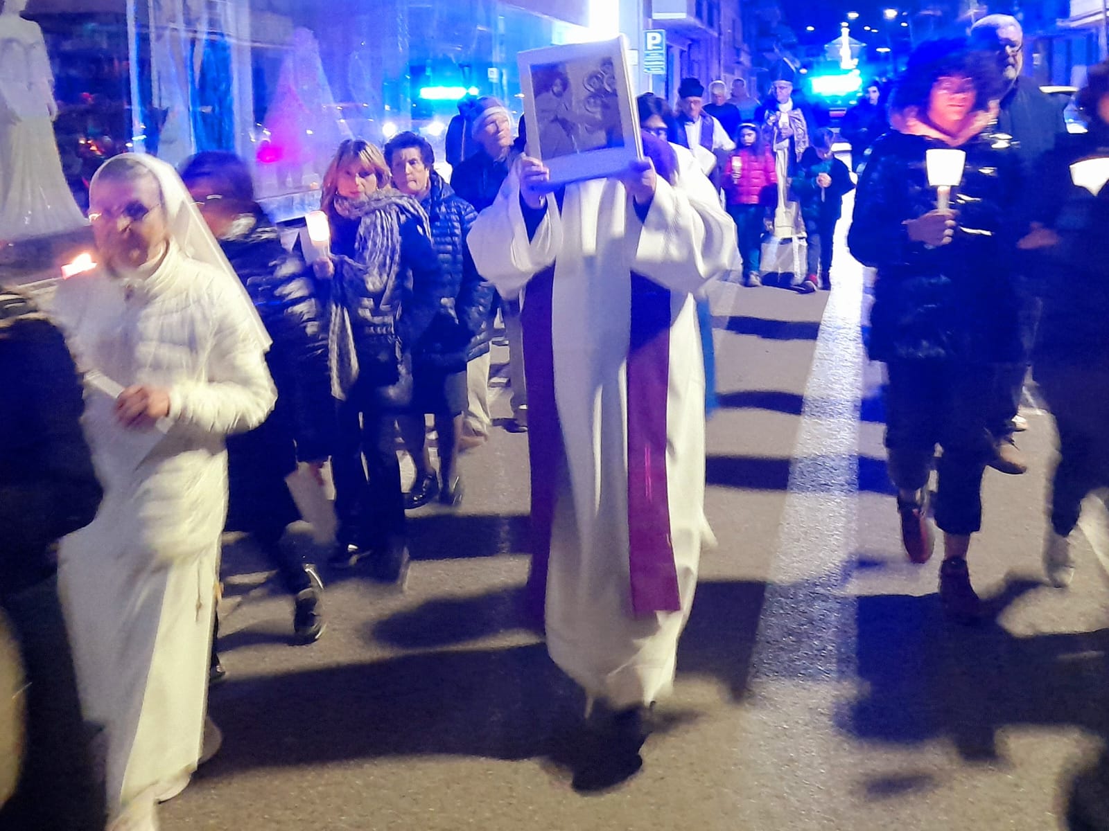 A seguire i fedeli hanno vissuto il rito del lucernario: il vescovo Gianpiero ha acceso una candela dalla lampada che portava il fuoco del cero Pasquale e poi ha passato la luce alle persone vicine, che a loro volta hanno fatto la stessa cosa. Si è trattato di un momento molto significativo e suggestivo, durante il quale la Luce della fede nel Risorto si è propagata per tutta la via, di fedele in fedele, fino ad illuminarla tutta.