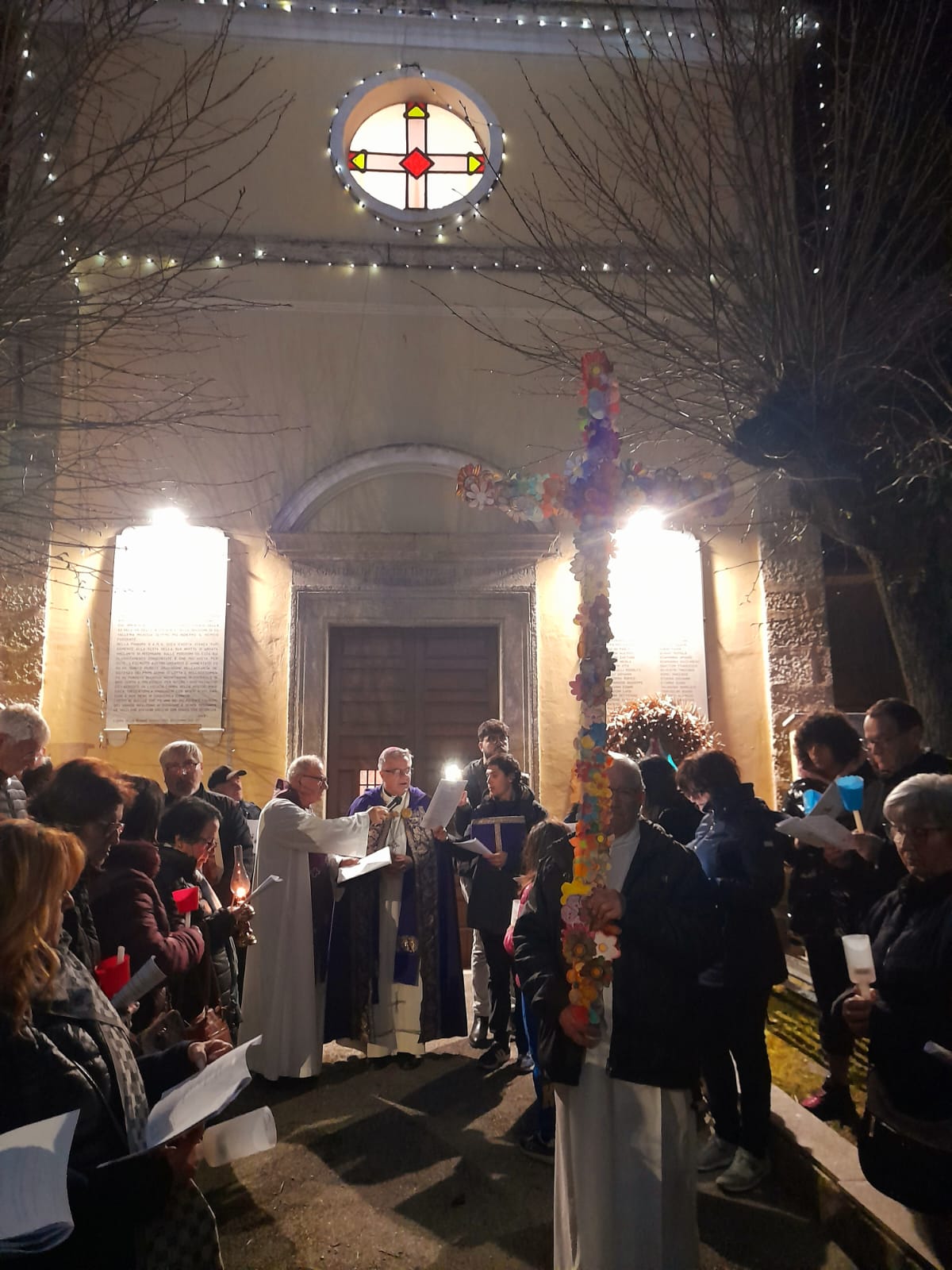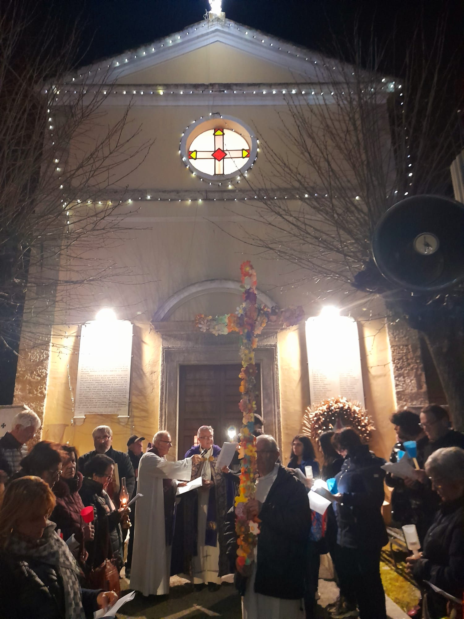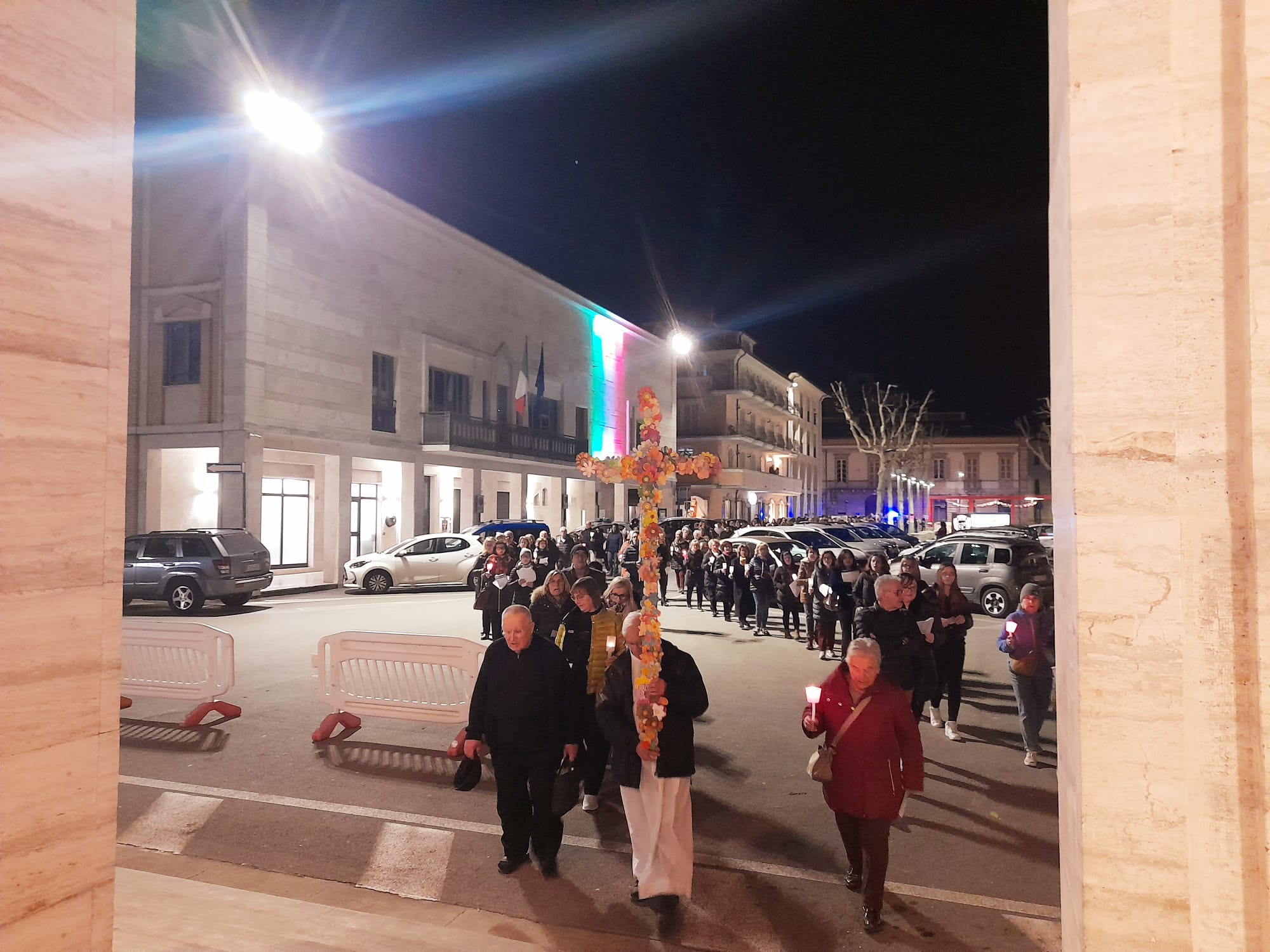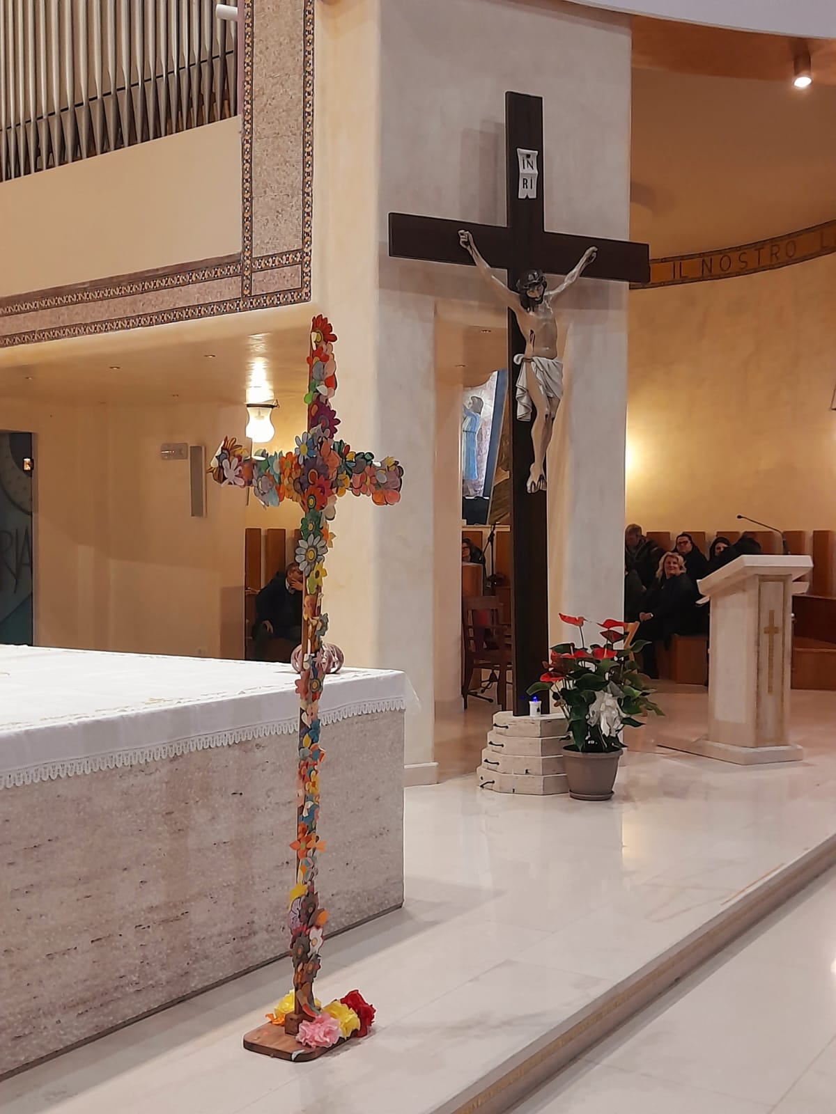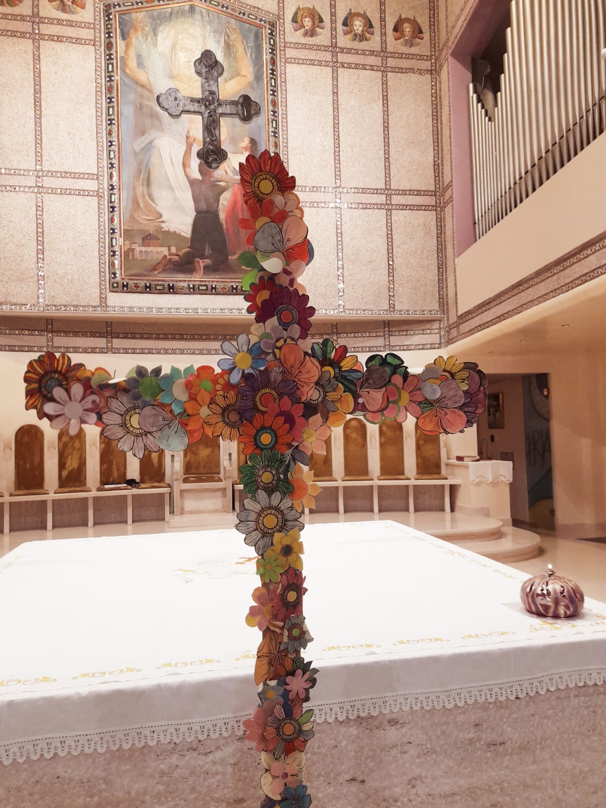 A seguire è iniziato il pellegrinaggio a piedi fino alla chiesa Sacro Cuore di Gesù. Il corteo è stato preceduto dalla croce ornata con tanti fiori di carta colorati, realizzati dai bambini del catechismo in segno di festa e di speranza. Numerosi i ragazzi e i giovani che hanno partecipato. Lungo il cammino tutti i pellegrini – adulti, giovani e anziani – hanno potuto riflettere sulla loro vita e sulla loro fede, pregando alcuni Salmi e cantando le litanie dei Santi.