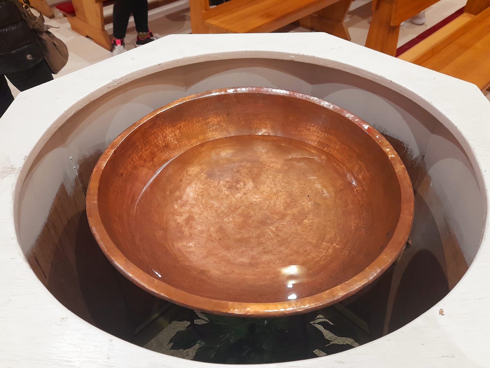 Dopo il rinnovo delle promesse battesimali, mons. Palmieri ha compiuto un altro gesto in memoria del Battesimo: ha benedetto l’acqua del fonte ed ha asperso tutti i presenti, un segno di perdono e purificazione da ogni peccato.