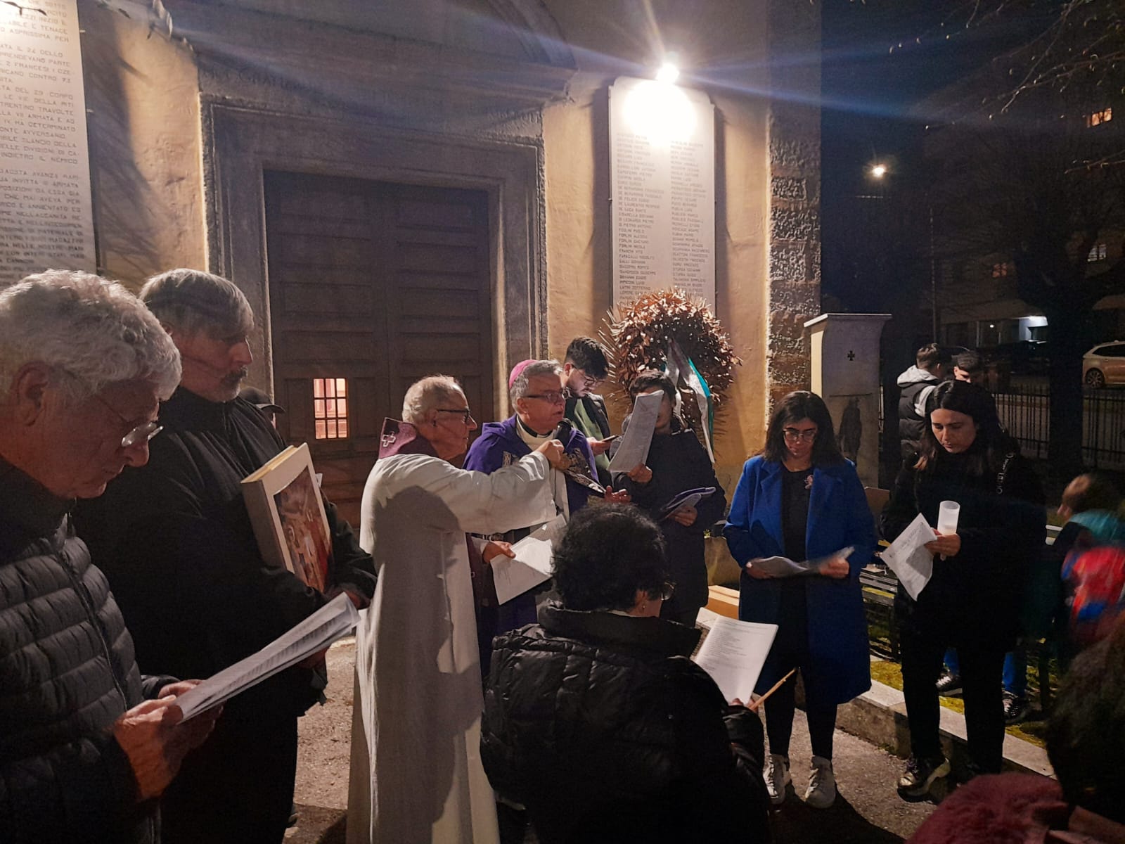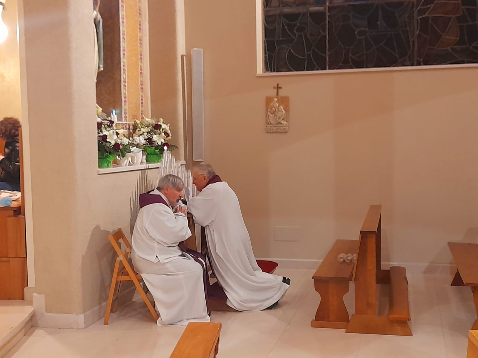 Prima di tutto pensare alla vita come ad un cammino, chiedendoci ‘A che punto sto del mio cammino?’ Sto bene? Sto male? Come vivo il mio rapporto con gli altri?’. Questo è il primo momento che abbiamo sperimentato stasera. Poi essere riconoscenti per il dono della fede e del Battesimo, che ci ha fatto diventare un solo corpo con il Signore e con tutta la Chiesa. Anche questo momento lo abbiamo già vissuto. Poi è la volta di chiedere perdono ed è quello che ci apprestiamo a fare. Infine, nella quarta tappa, siamo chiamati a vivere nella carità, ovvero a riversare ai fratelli e alle sorelle la misericordia e l’amore ricevuti dal Signore.