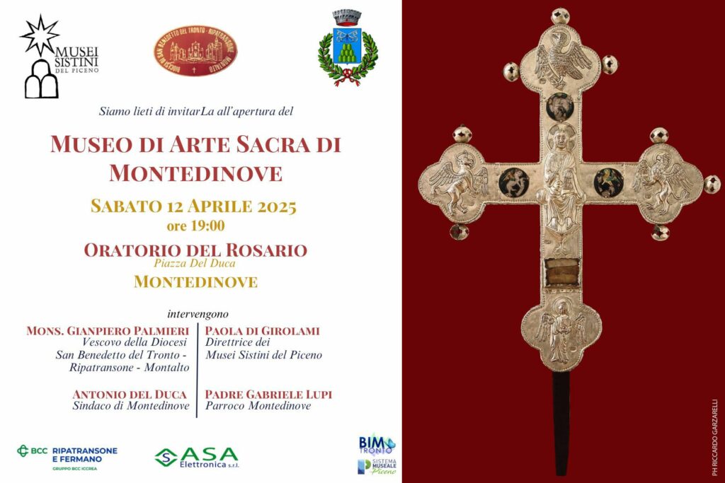 MONTEDINOVE – Un nuovo scrigno di bellezza e spiritualità apre le sue porte nel cuore dei Monti Sibillini: il Museo di Arte Sacra di Montedinove verrà ufficialmente inaugurato sabato 12 aprile alle ore 19:00, presso l’Oratorio del Rosario in Piazza del Duca.