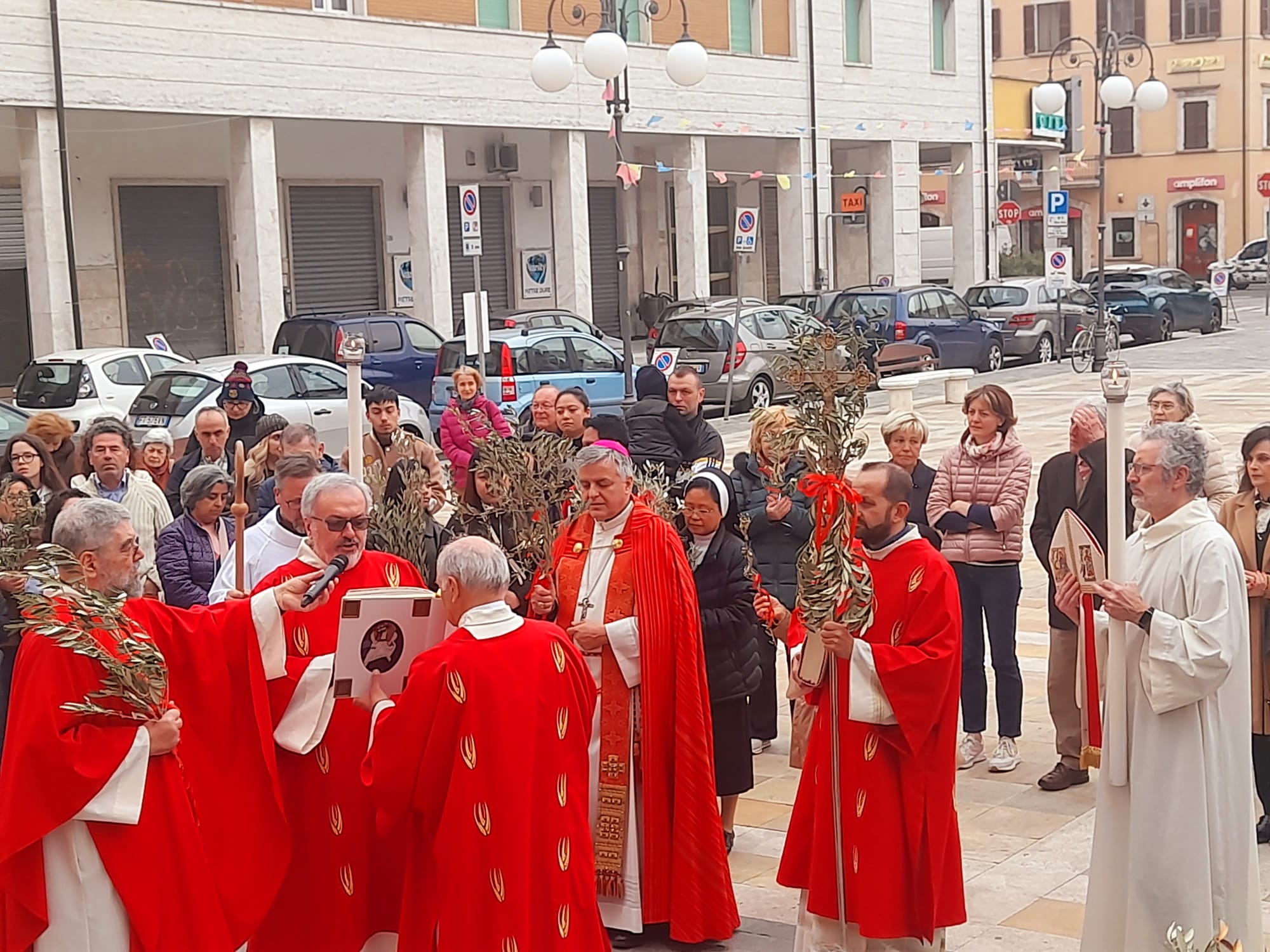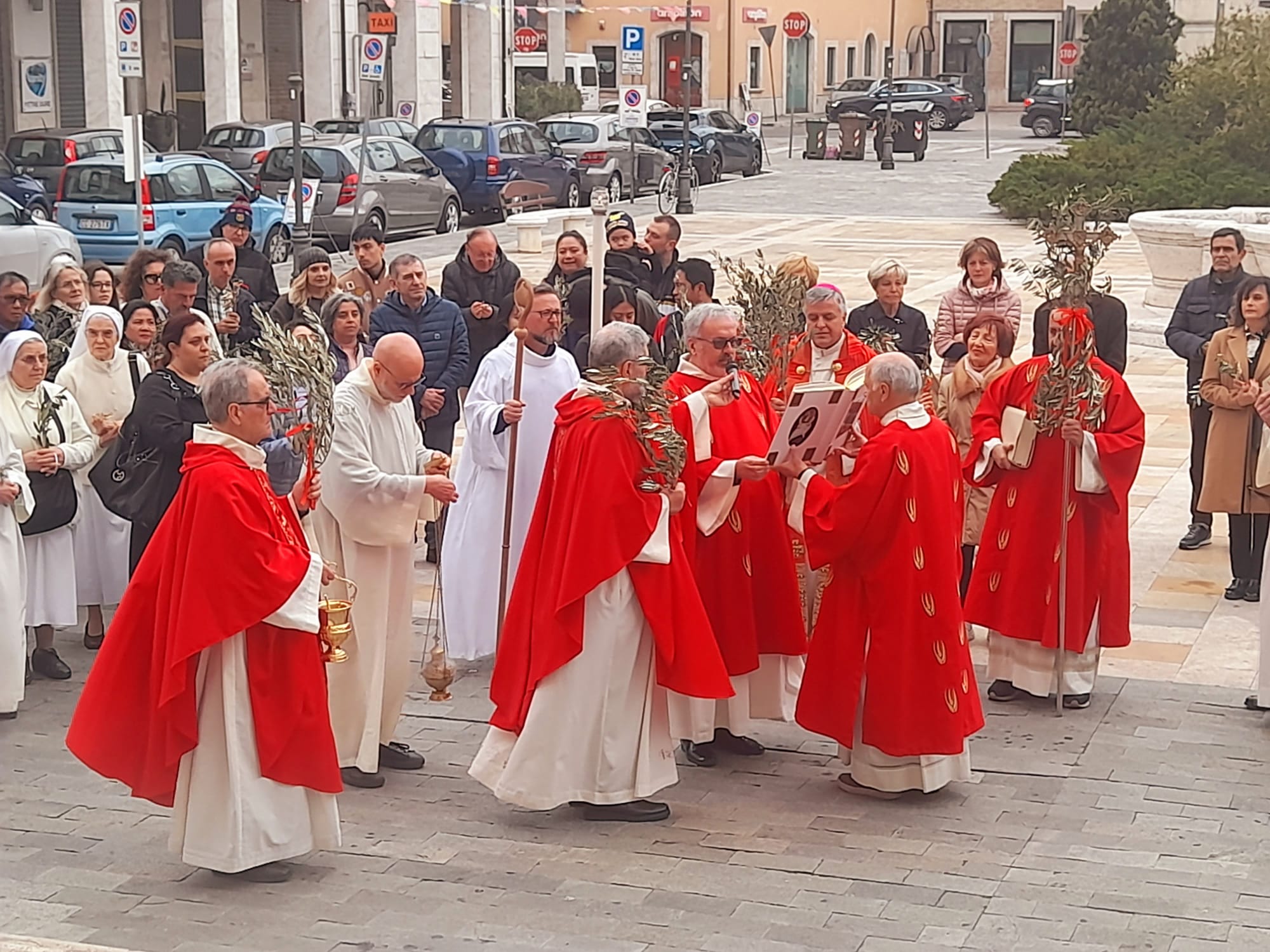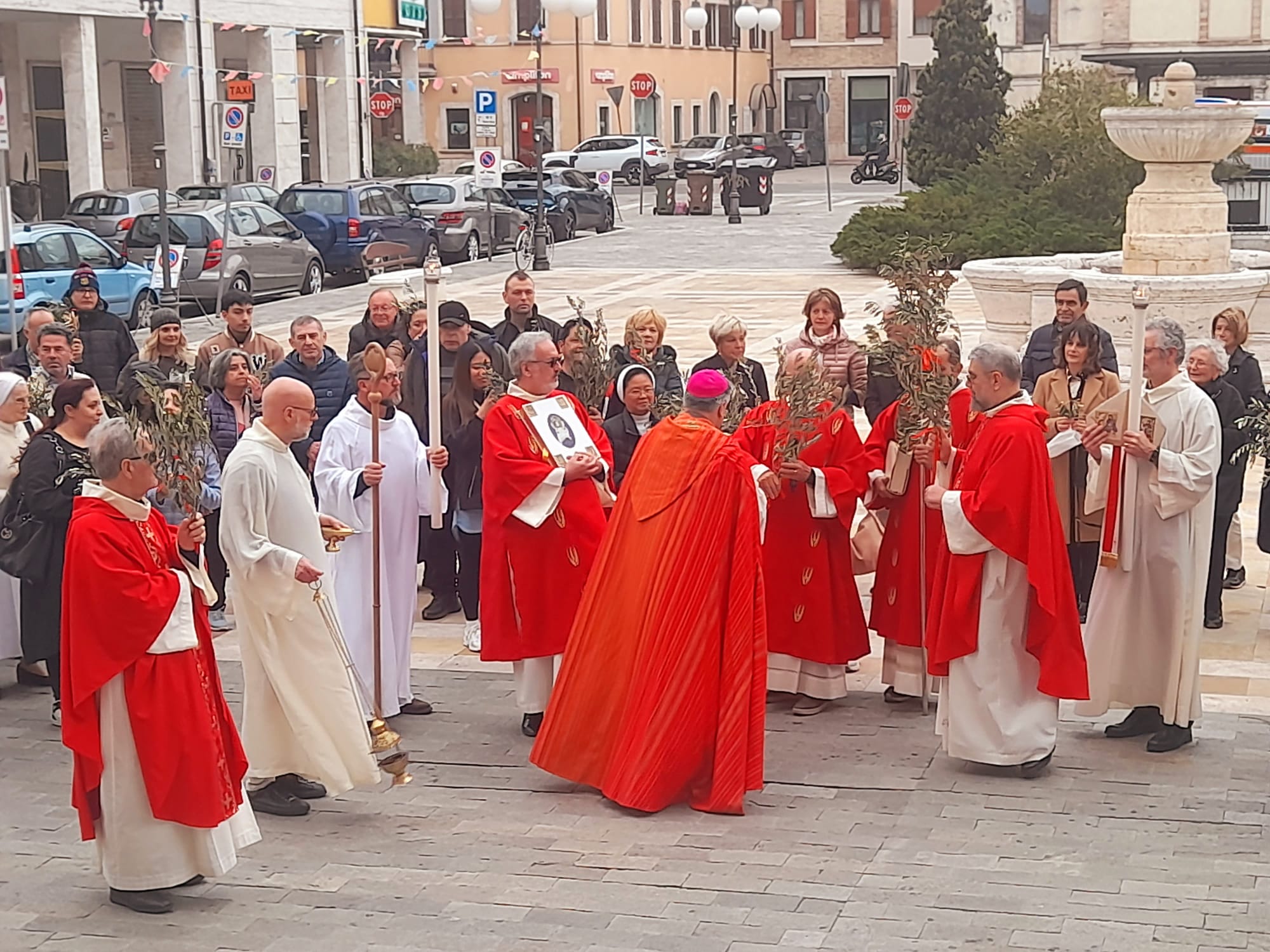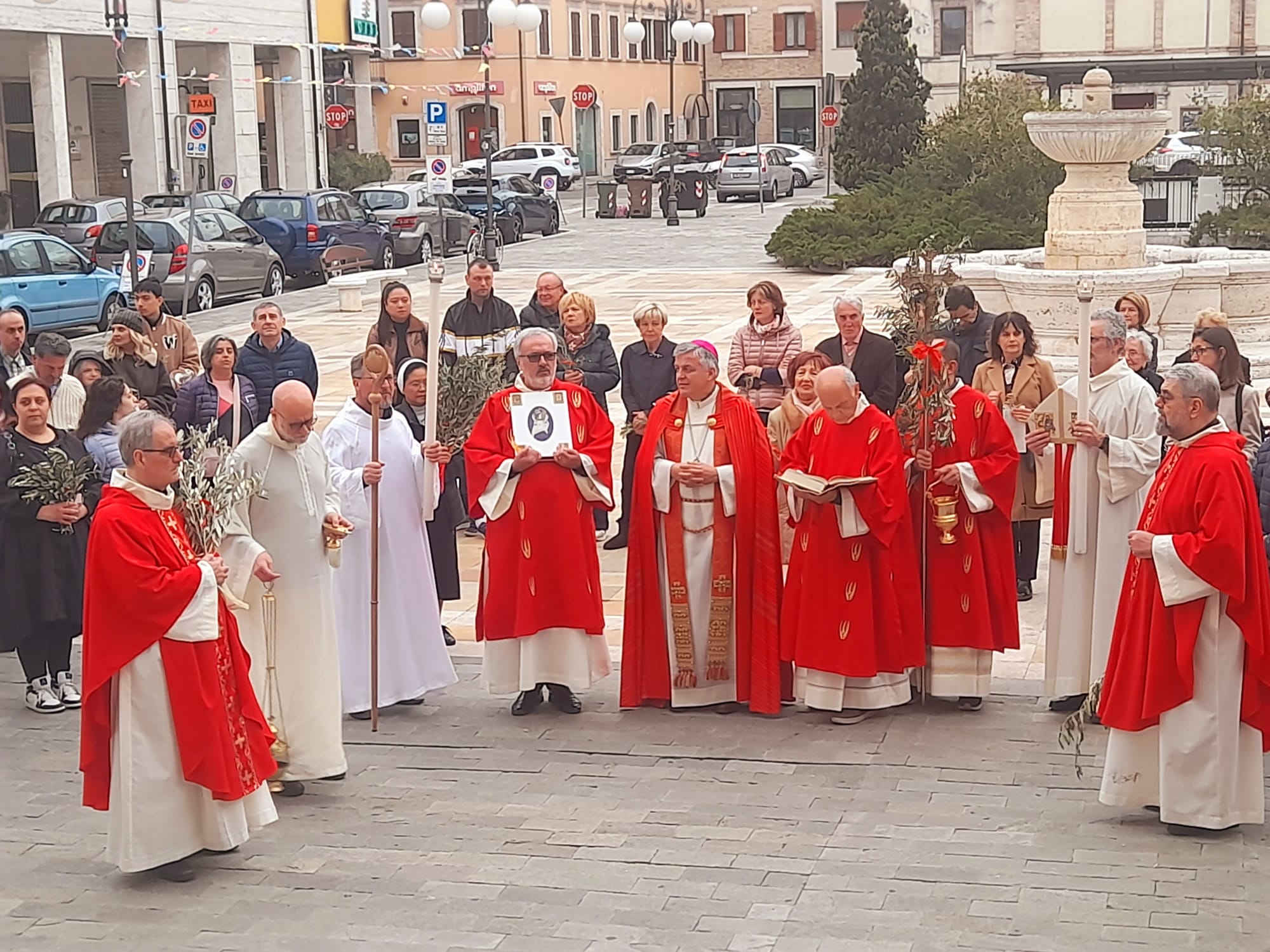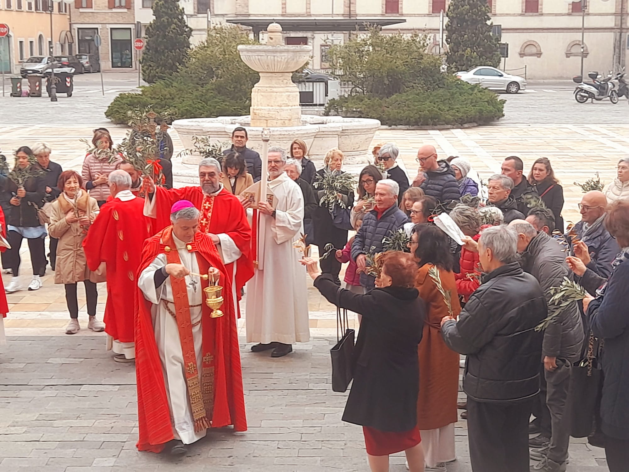 Dopo la Messa delle ore 11:00 in Ascoli Piceno, l’arcivescovo Palmieri nel pomeriggio si è recato a San Benedetto del Tronto per presiedere la Messa anche nella Diocesi Truentina. Prima della Celebrazione Eucaristica, presso piazza Nardone, il prelato ha benedetto i ramoscelli di ulivo, insieme ai sacerdoti don Patrizio Spina, don Romualdo Scarponi e don Luciano Paci e ai diaconi Walter Gandolfi, Emanuele Imbrescia e Pietro Mazzocchi.