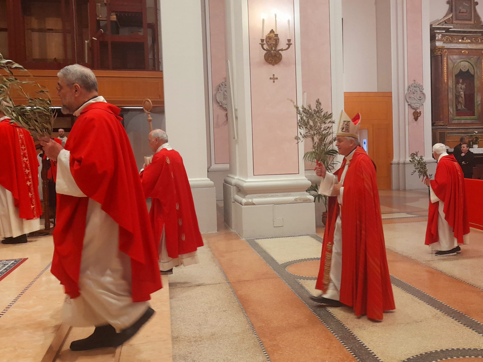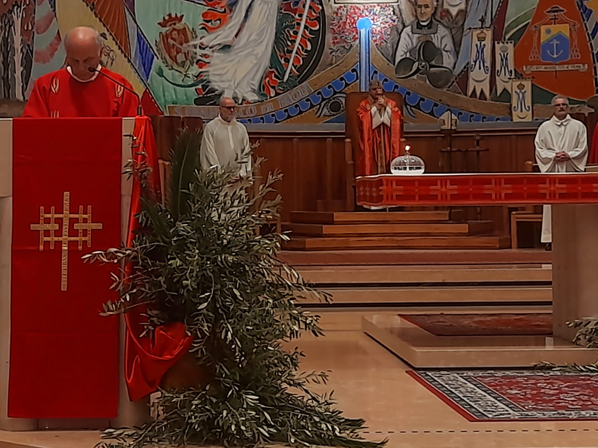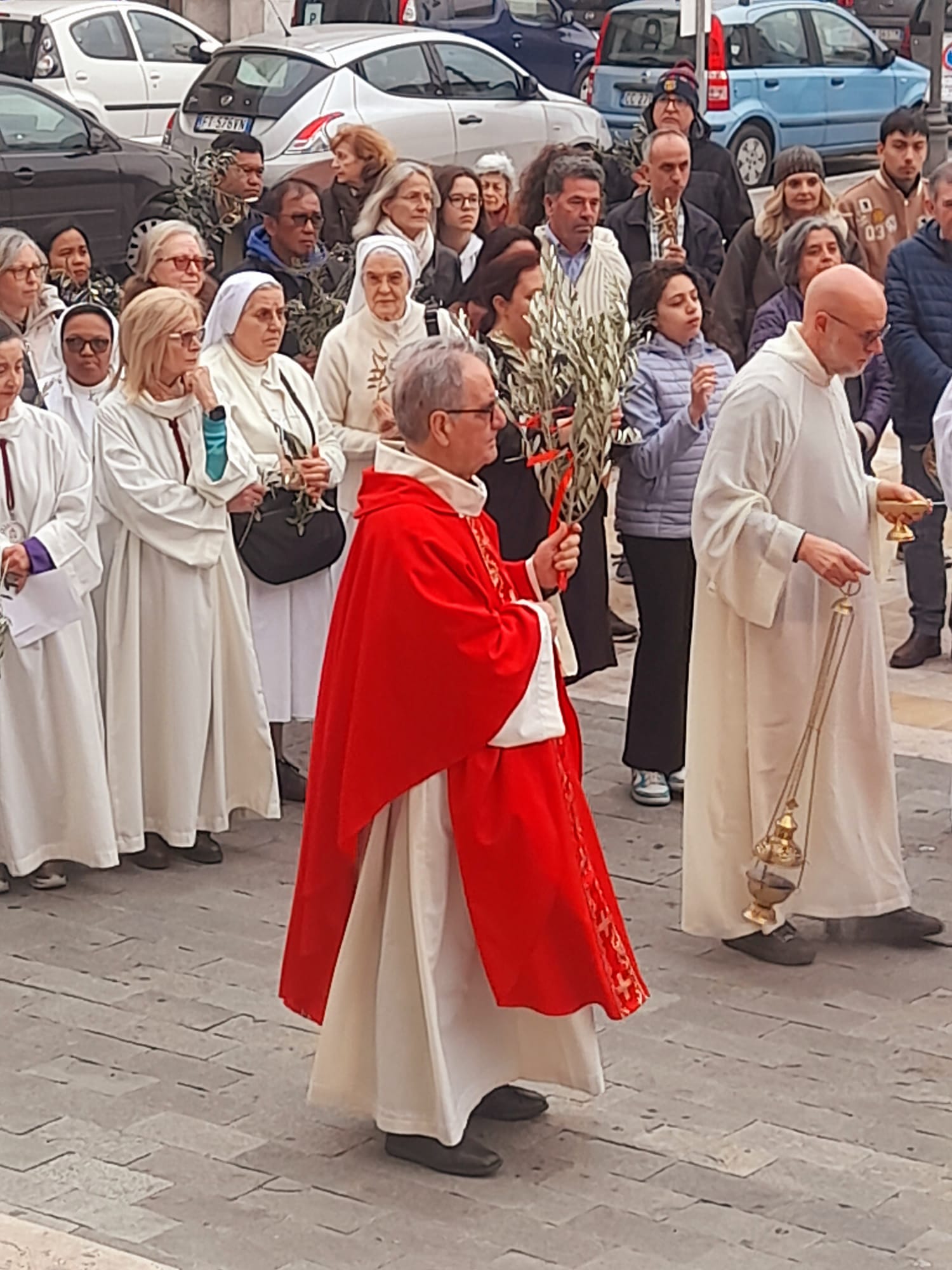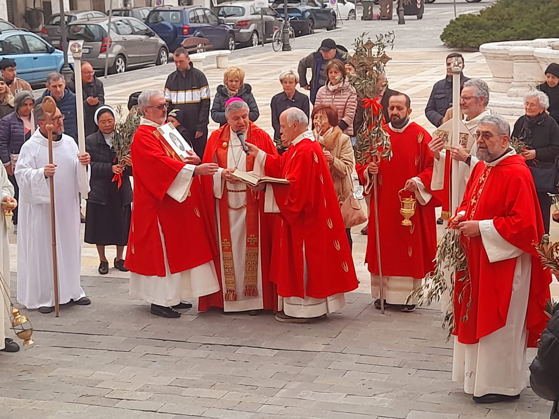 Dopo la Messa delle ore 11:00 in Ascoli Piceno, l’arcivescovo Palmieri nel pomeriggio si è recato a San Benedetto del Tronto per presiedere la Messa anche nella Diocesi Truentina. Prima della Celebrazione Eucaristica, presso piazza Nardone, il prelato ha benedetto i ramoscelli di ulivo, insieme ai sacerdoti don Patrizio Spina, don Romualdo Scarponi e don Luciano Paci e ai diaconi Walter Gandolfi, Emanuele Imbrescia e Pietro Mazzocchi.