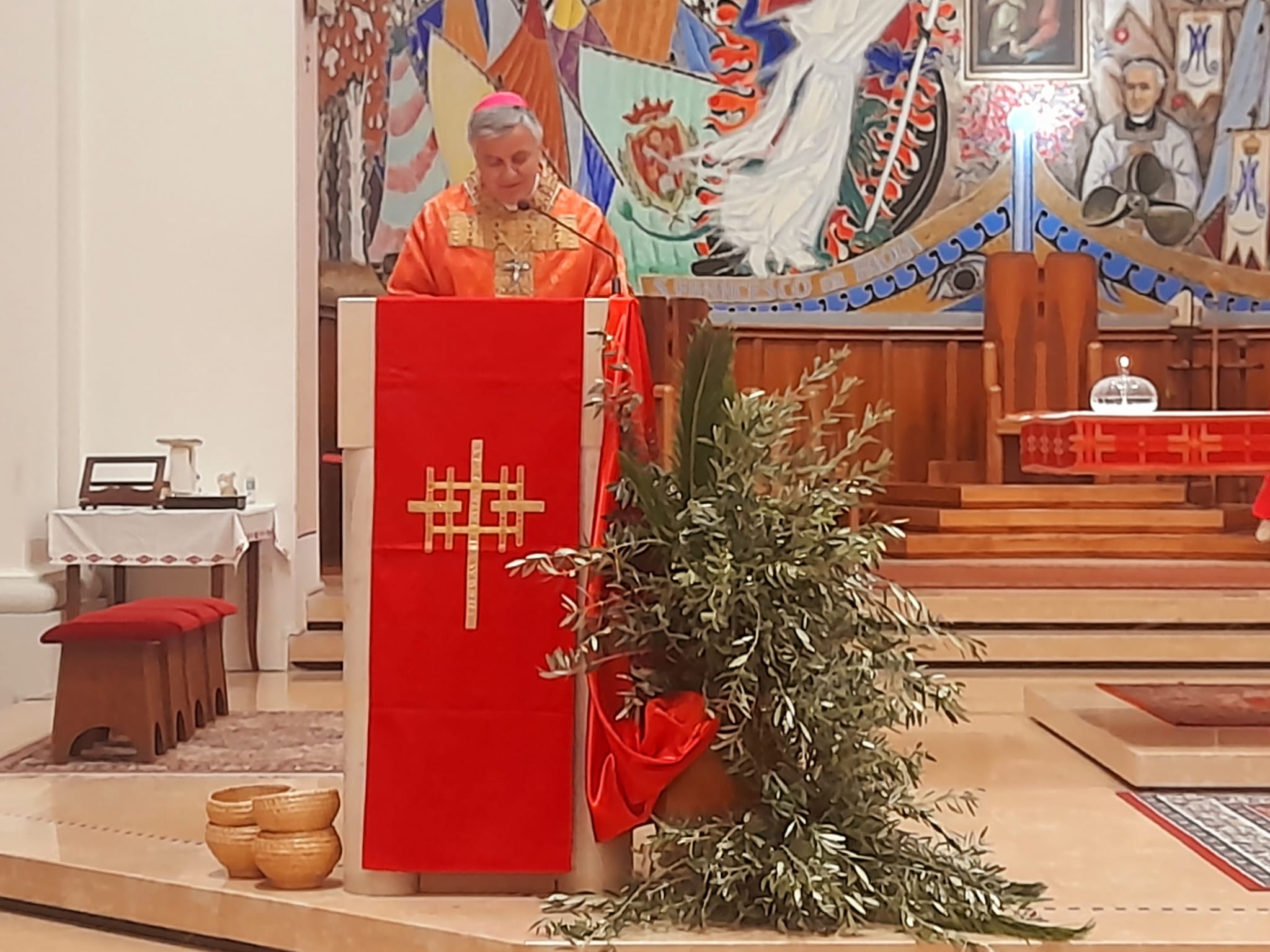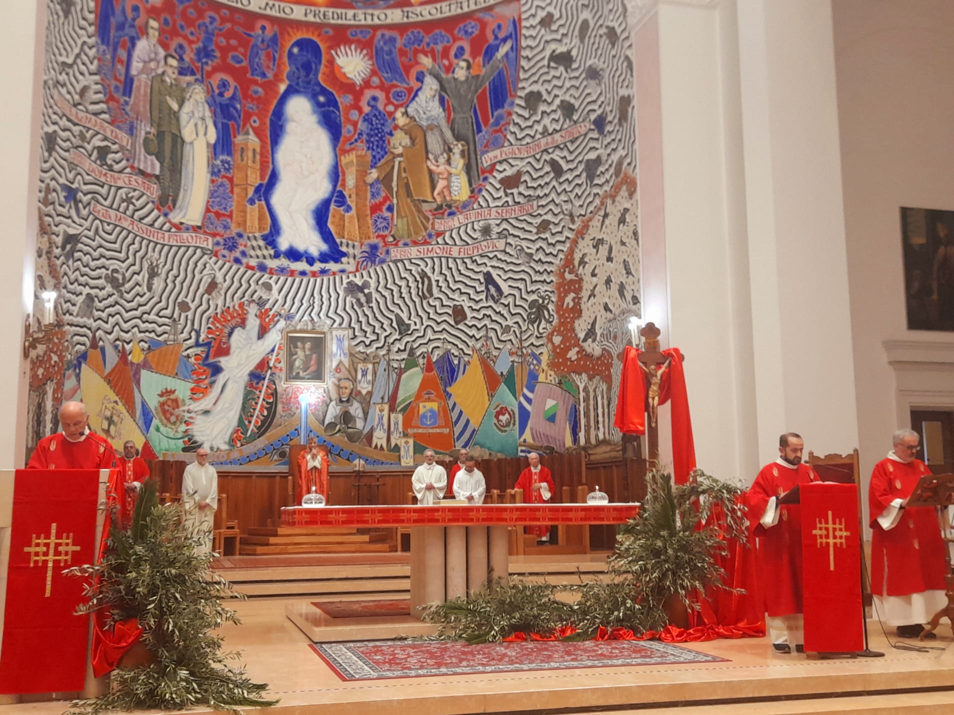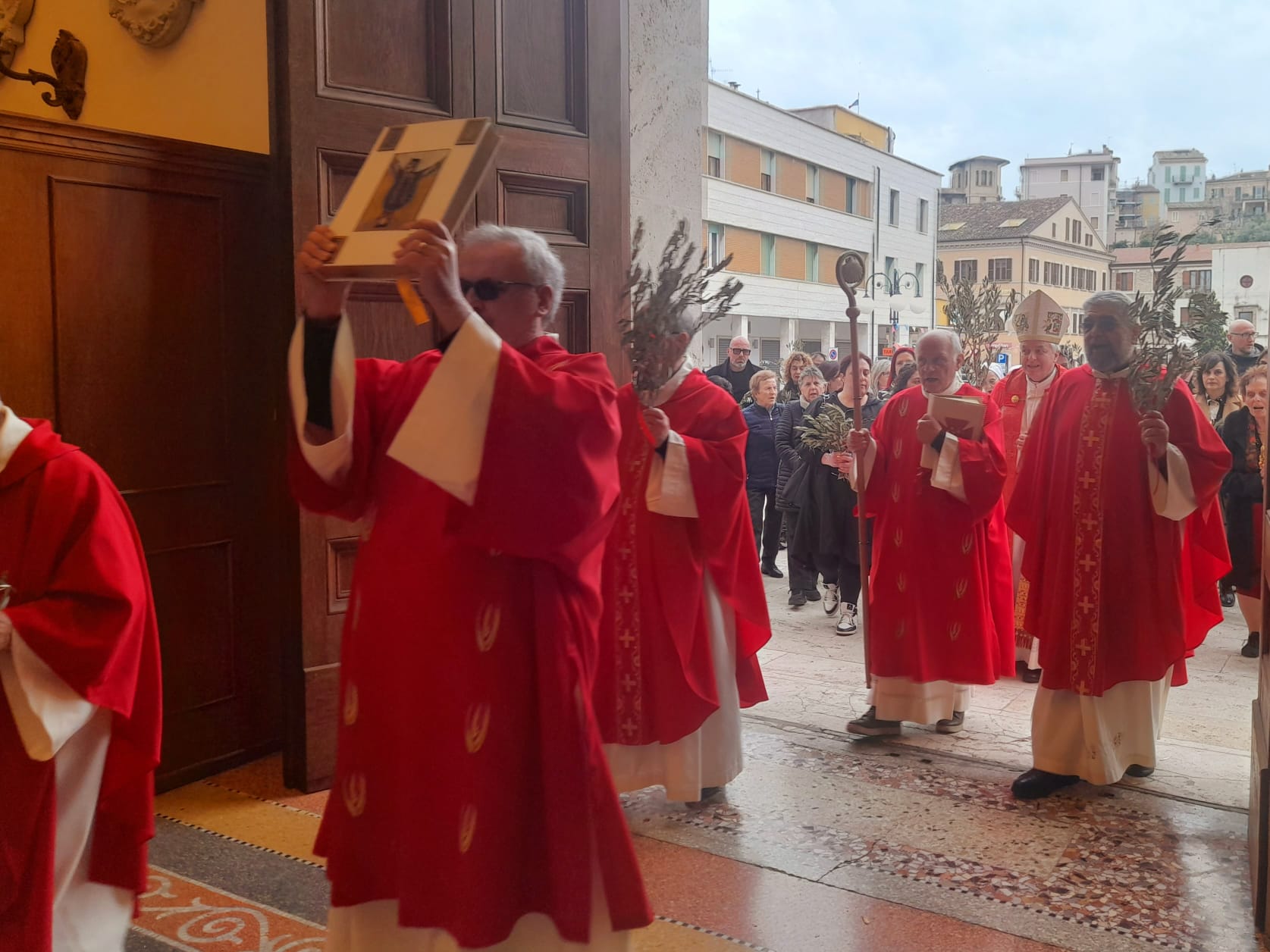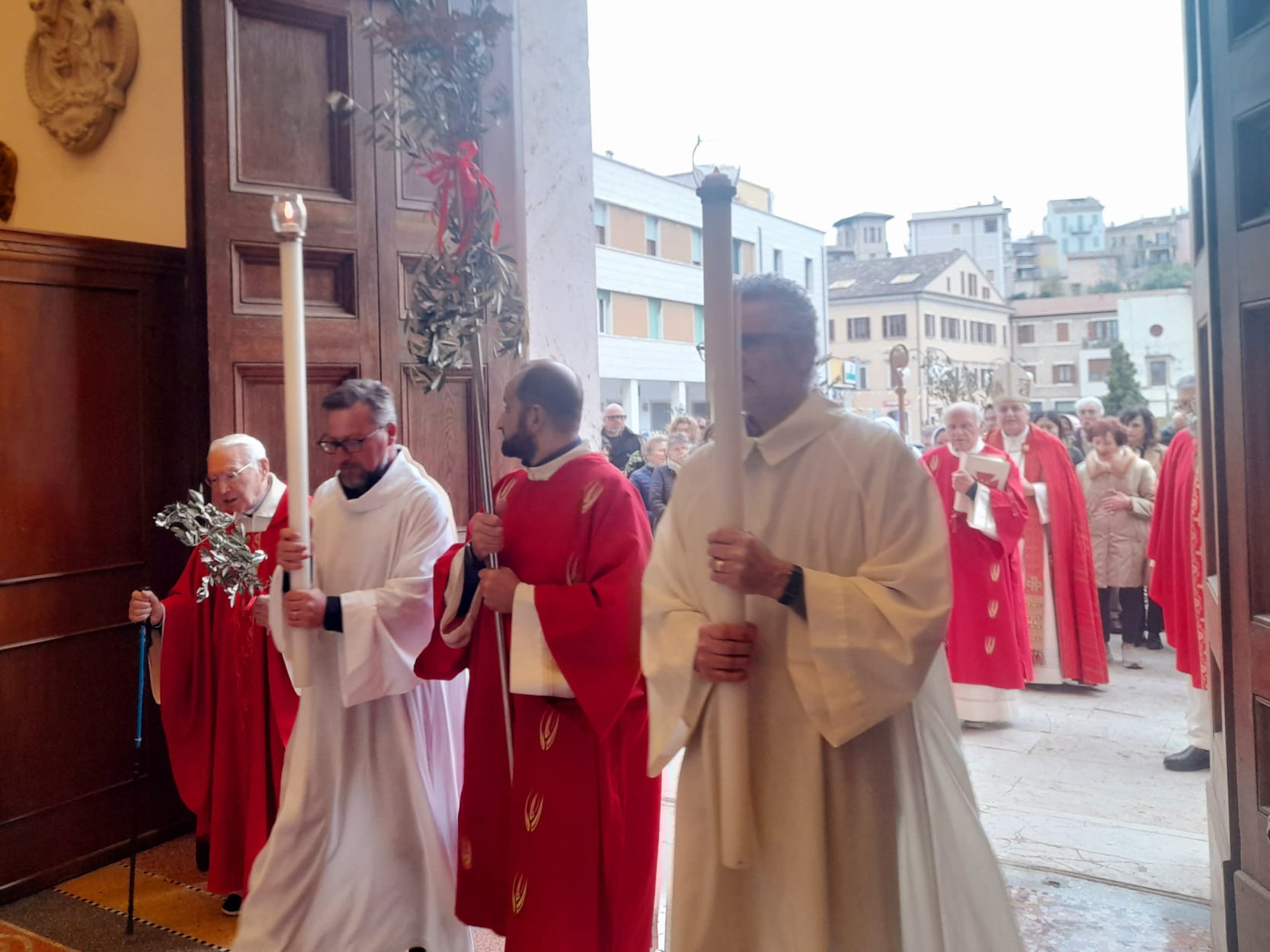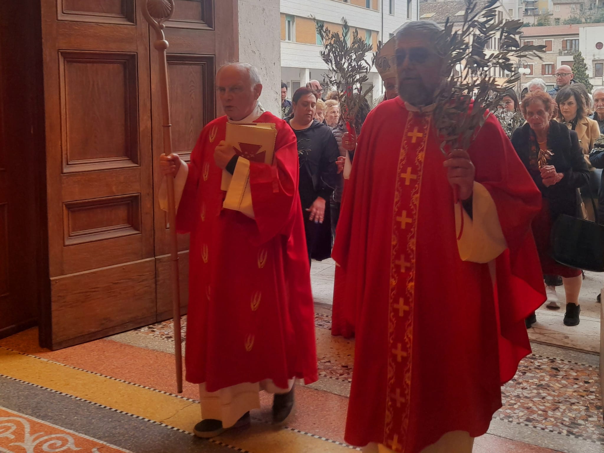 Dopo la Messa delle ore 11:00 in Ascoli Piceno, l’arcivescovo Palmieri nel pomeriggio si è recato a San Benedetto del Tronto per presiedere la Messa anche nella Diocesi Truentina. Prima della Celebrazione Eucaristica, presso piazza Nardone, il prelato ha benedetto i ramoscelli di ulivo, insieme ai sacerdoti don Patrizio Spina, don Romualdo Scarponi e don Luciano Paci e ai diaconi Walter Gandolfi, Emanuele Imbrescia e Pietro Mazzocchi.