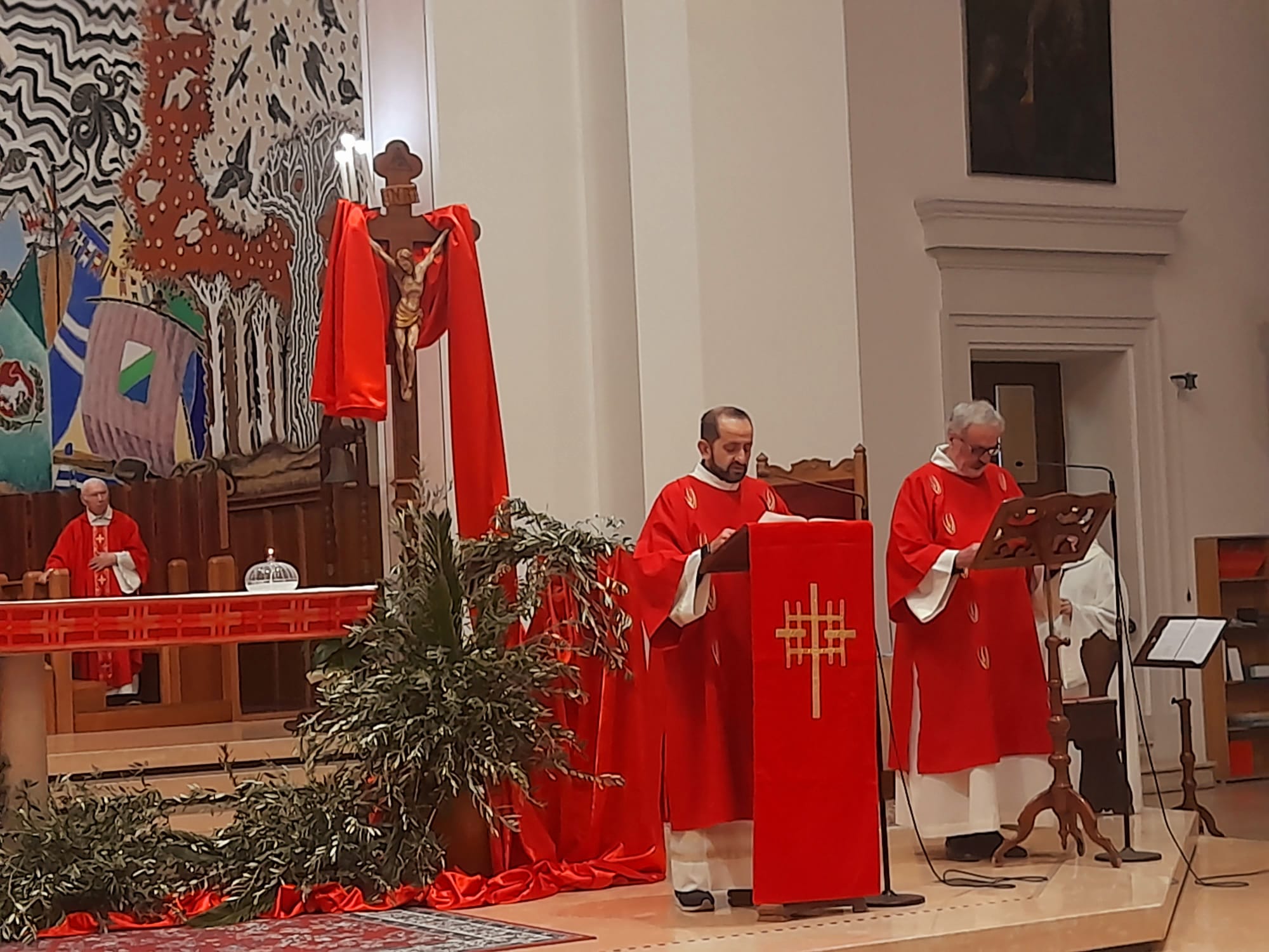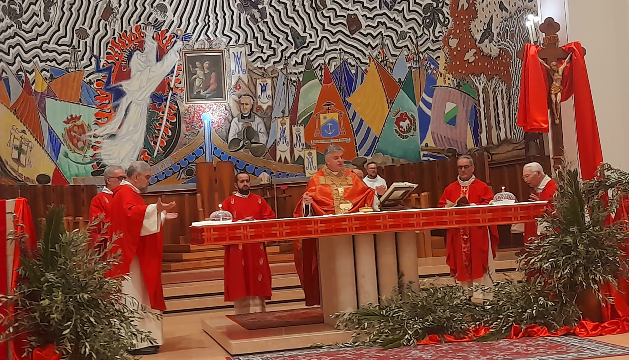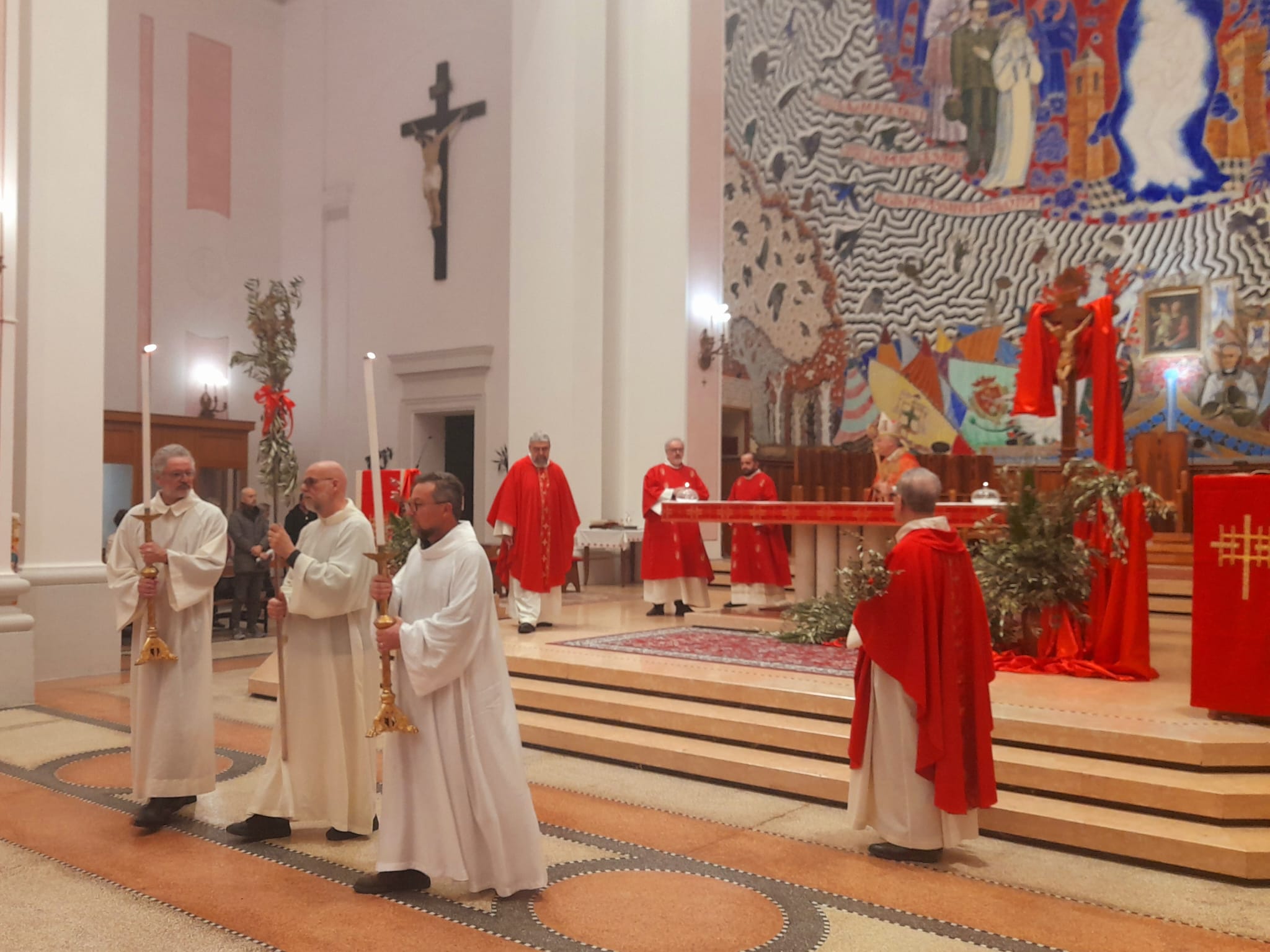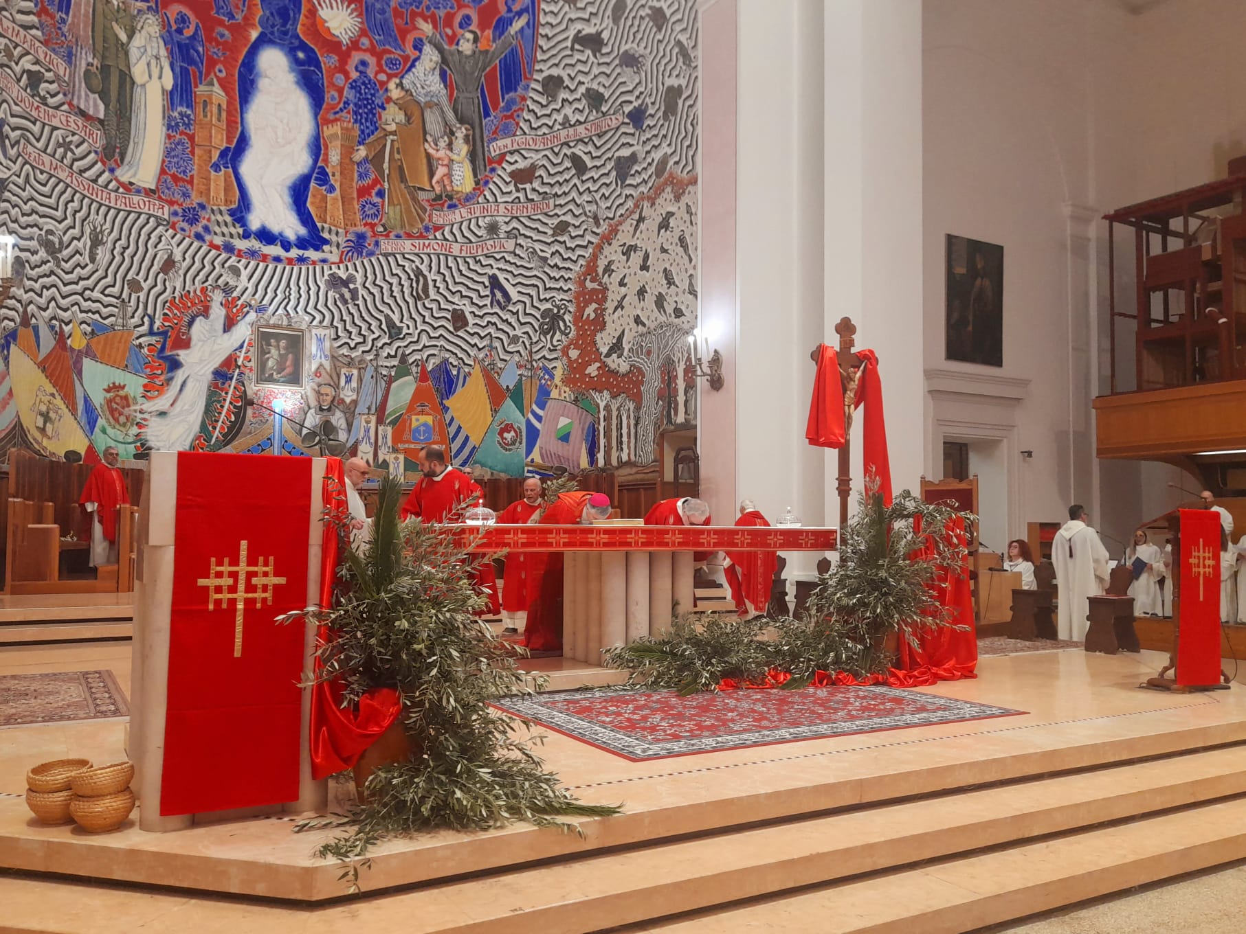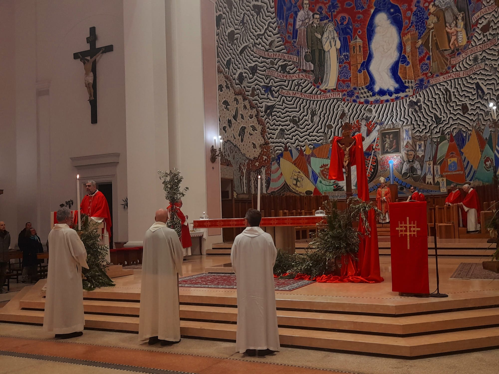 Dopo la Messa delle ore 11:00 in Ascoli Piceno, l’arcivescovo Palmieri nel pomeriggio si è recato a San Benedetto del Tronto per presiedere la Messa anche nella Diocesi Truentina. Prima della Celebrazione Eucaristica, presso piazza Nardone, il prelato ha benedetto i ramoscelli di ulivo, insieme ai sacerdoti don Patrizio Spina, don Romualdo Scarponi e don Luciano Paci e ai diaconi Walter Gandolfi, Emanuele Imbrescia e Pietro Mazzocchi.
