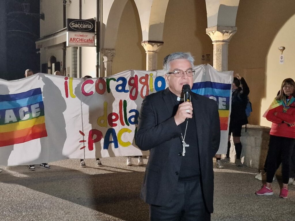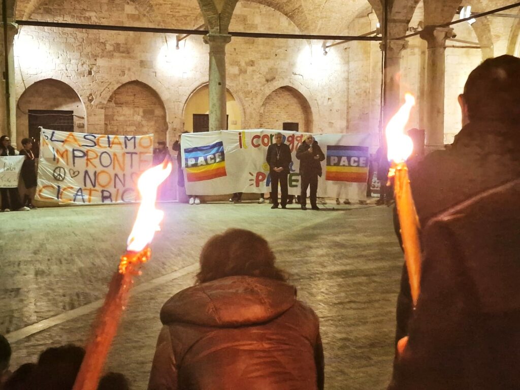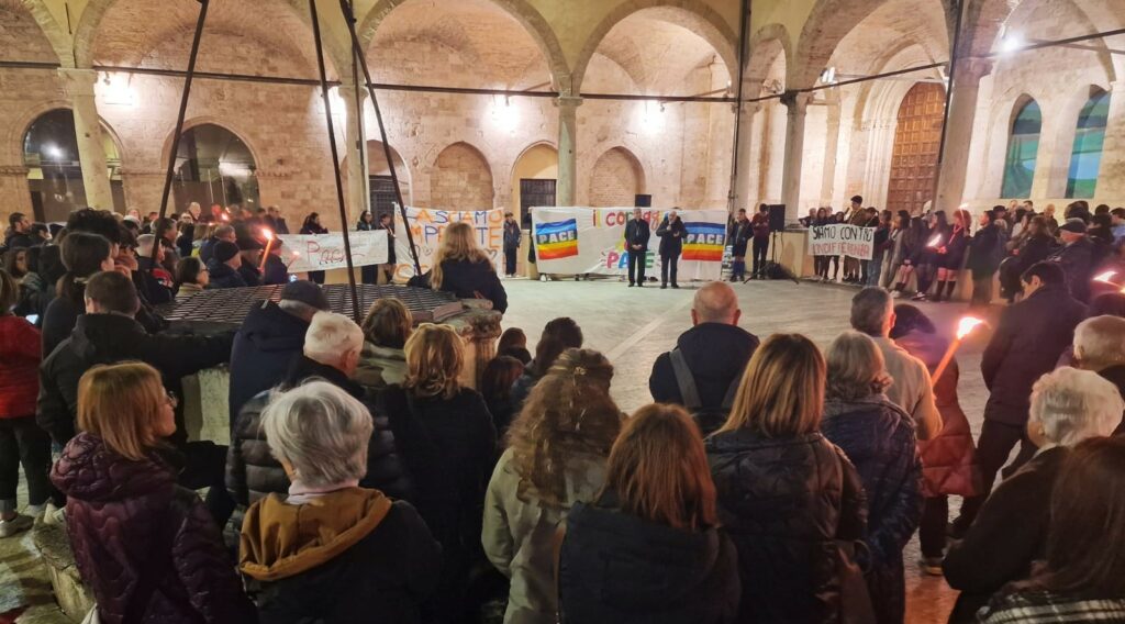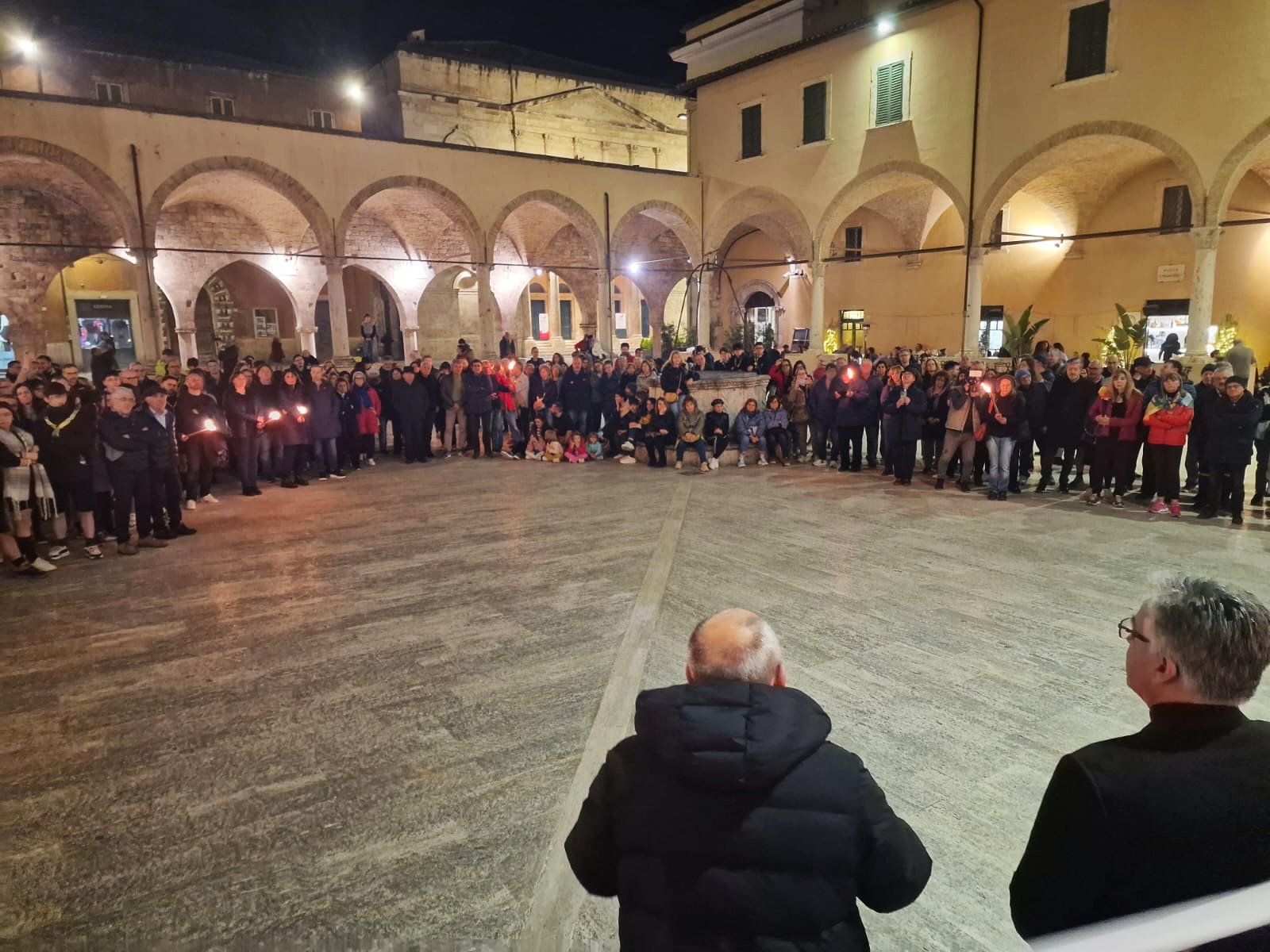 Con queste parole del Vescovo Gianpiero Palmieri è iniziata, venerdì 11 aprile, la Marcia della Pace ad Ascoli Piceno. Partita dalla Santissima Annunziata, una lunga fila silenziosa di persone ha attraversato le vie della città, fino a raggiungere il Chiostro di San Francesco.