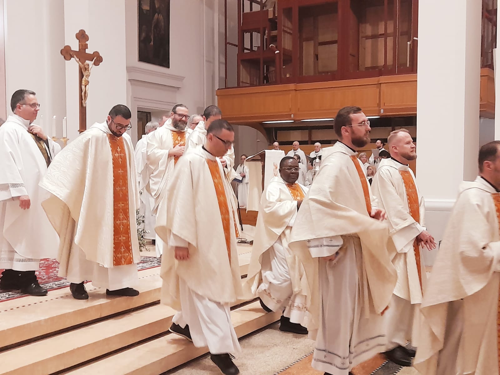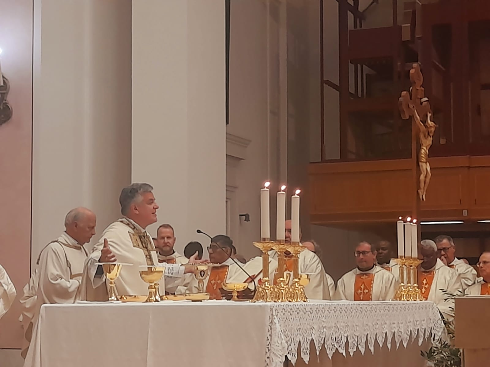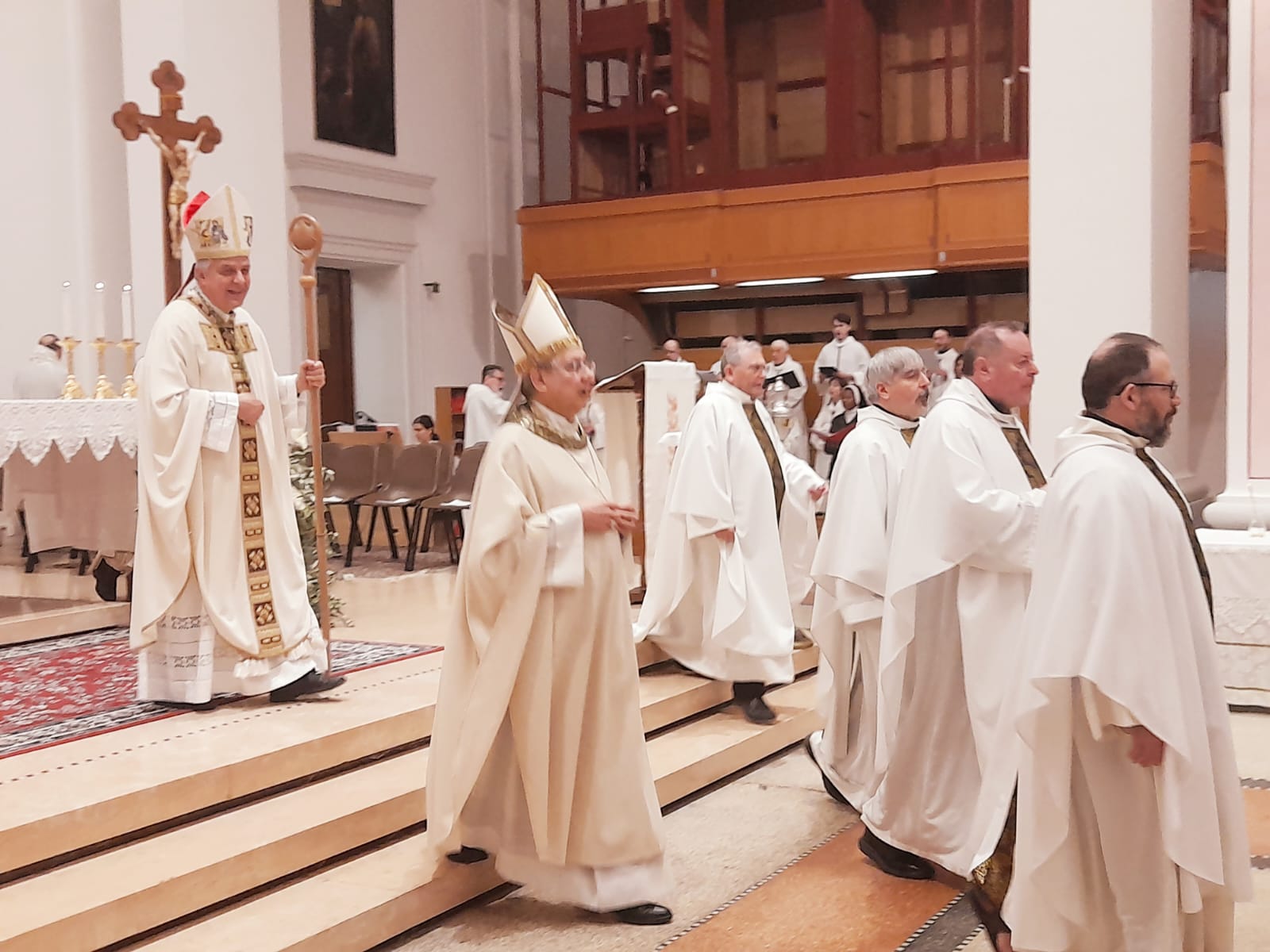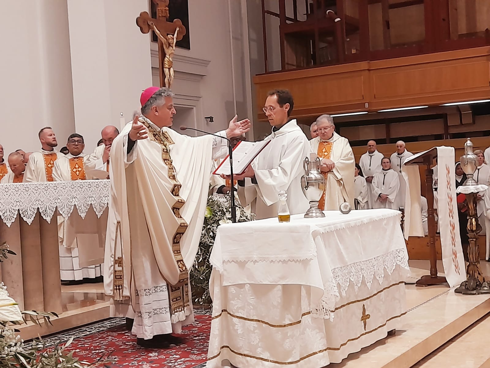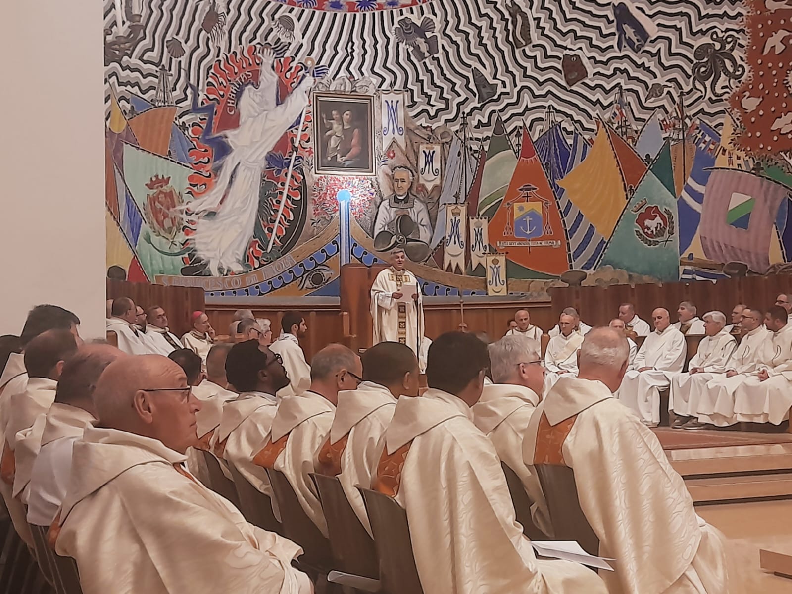 Ha infine concluso il prelato: “Qualcuno potrebbe dire: ‘È vero, però hai visto come va il mondo? Hai visto quante guerre e quante vittime? Hai visto quante guerre anche commerciali e quanto individualismo?’. Sì, ho visto i mali che attanagliano la nostra società. Ma lo Spirito del Signore è su di me, Lo riconosco e Lo vedo agire. Lo vedo operare dentro le persone e anche nel cuore della storia. Lo vedo nelle piccole comunità coraggiose che ascoltano il Vangelo e cercano di metterlo in pratica. Lo vedo nelle piccole comunità che non si rassegnano e vanno avanti, nonostante tante difficoltà. Lo vedo nei miei amici preti che conservano la spes tipica della vocazione sacerdotale, che si commuovono per un passo del Vangelo o nell’ascoltare una storia vera. Significa essere vivi, tenendosi sempre in ascolto della Verità di Dio”.