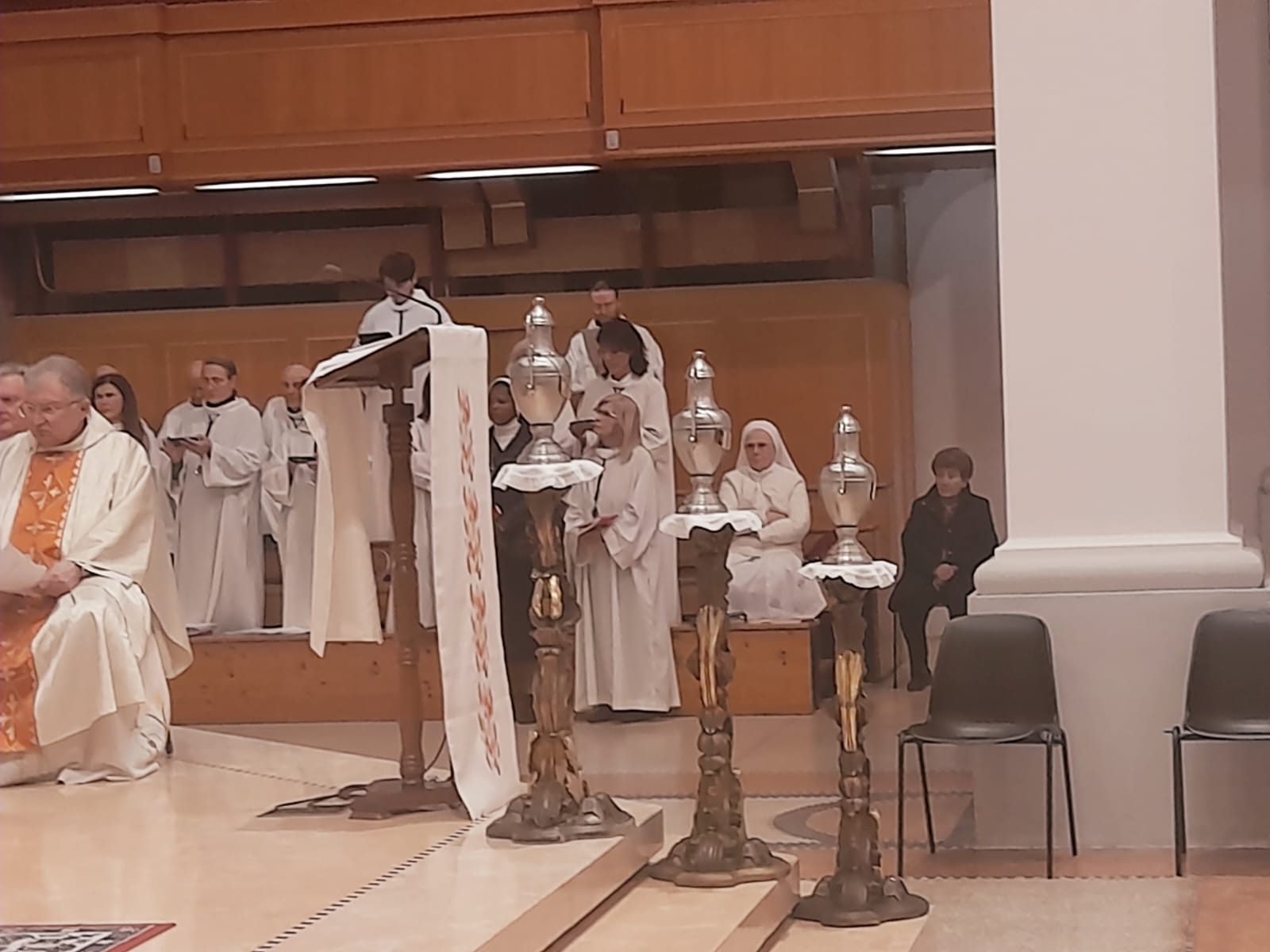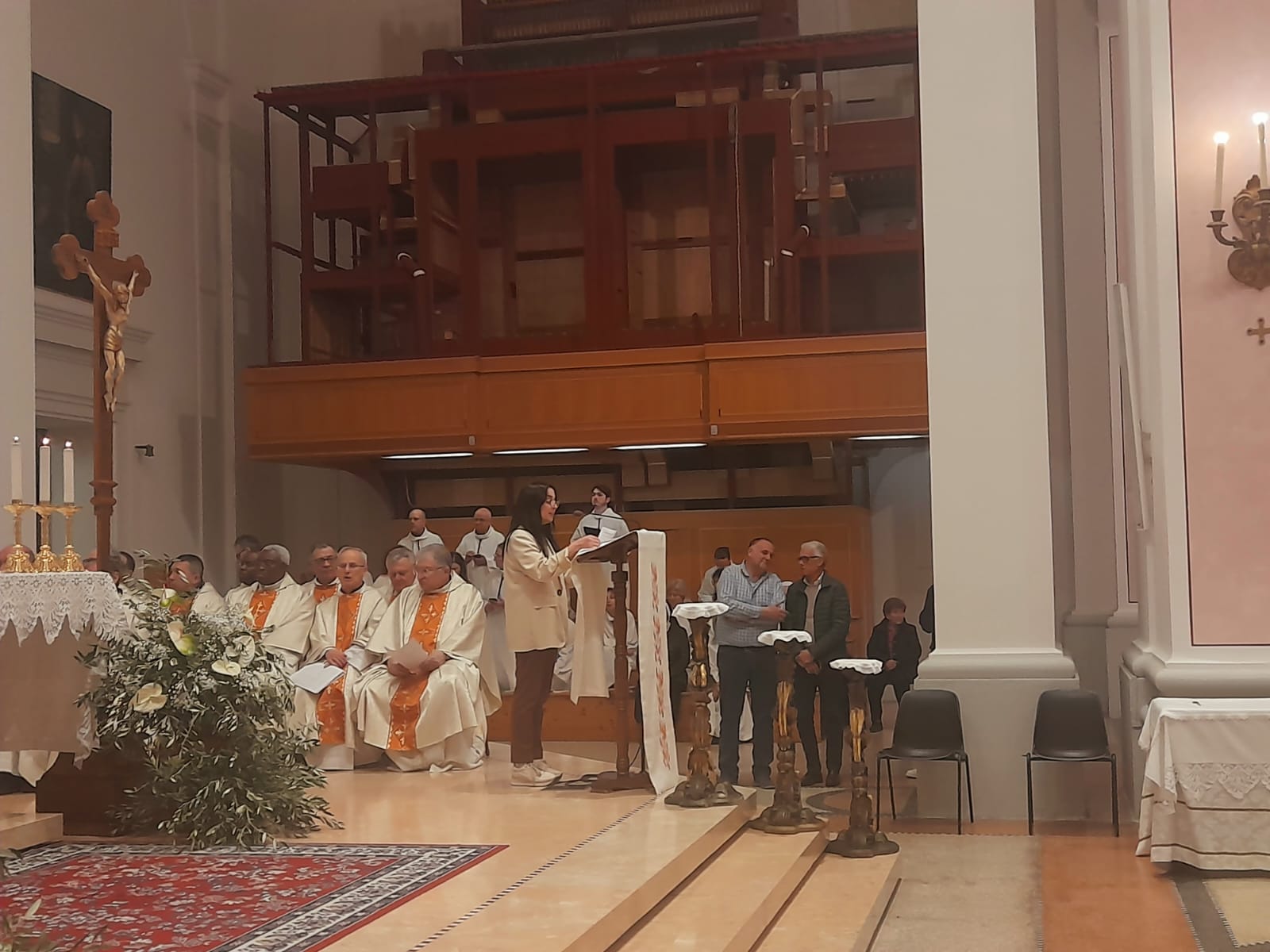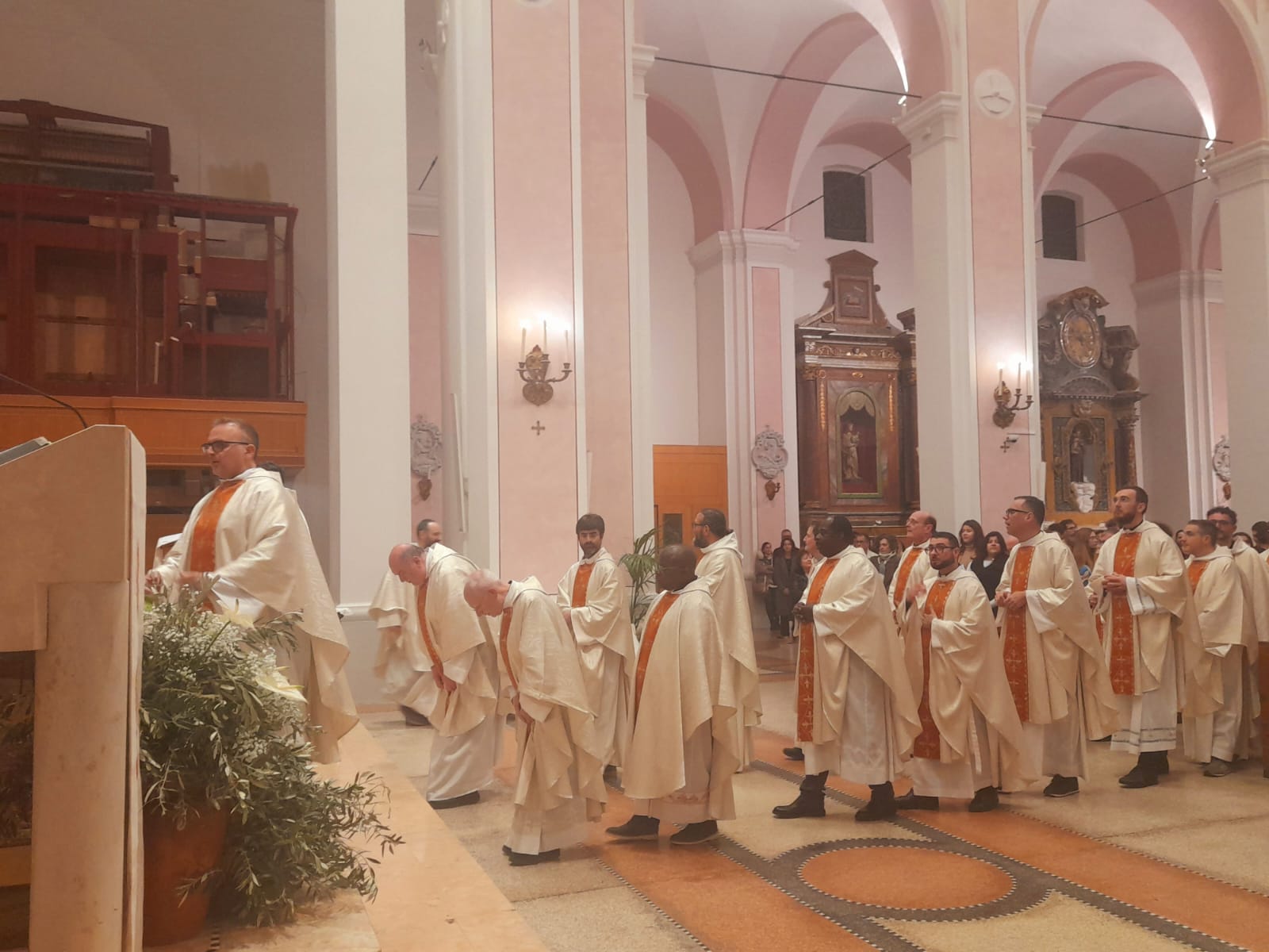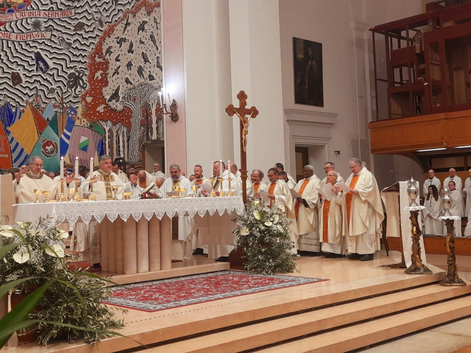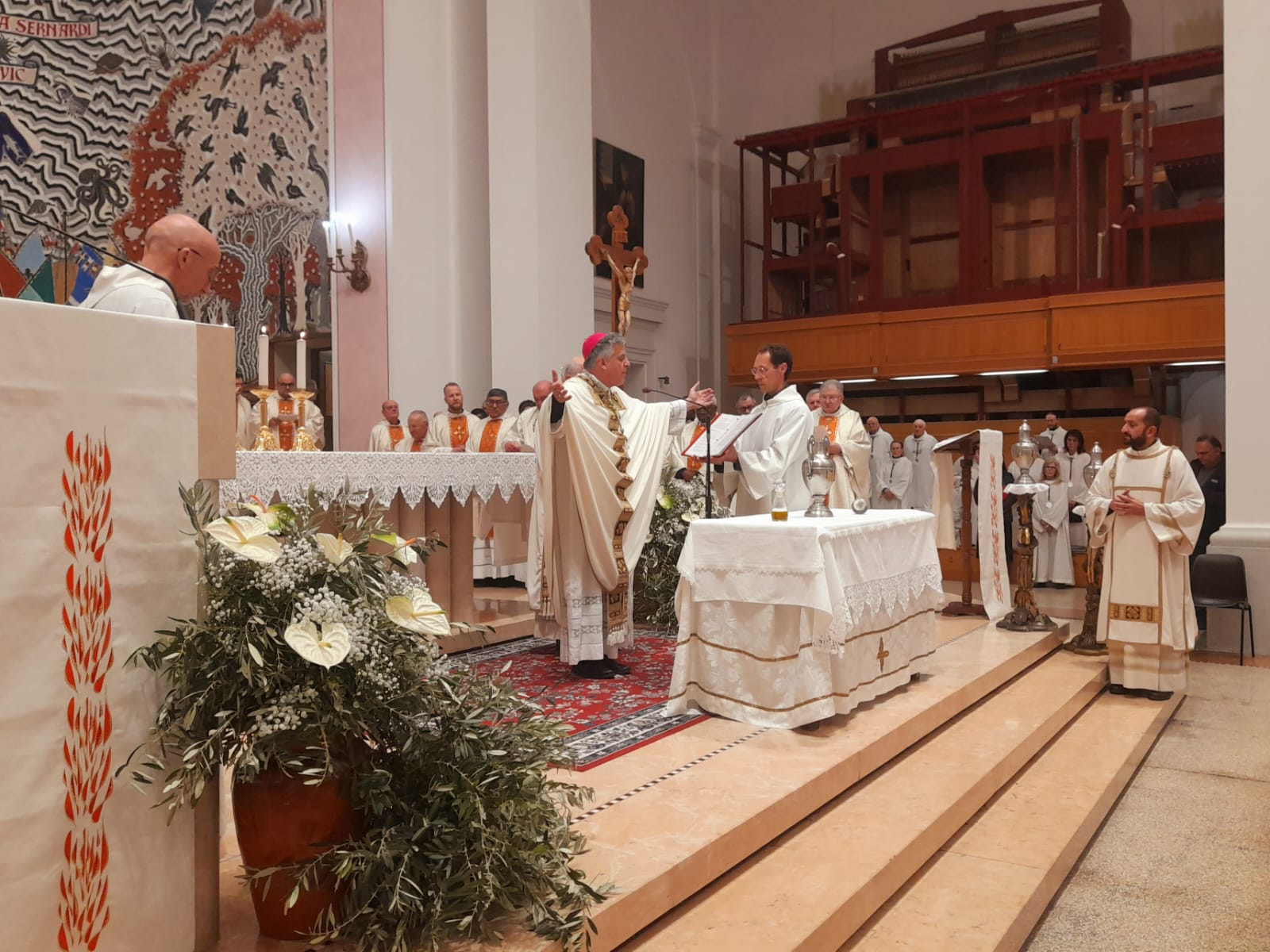 DIOCESI – “Con gioia ci ritroviamo insieme! Il Signore ci accoglie intorno all’altare. Oggi c’è davvero tutta la Chiesa! Ci sono i preti, i diaconi, i religiosi e le religiose, le famiglie e tanti, tanti ragazzi che quest’anno riceveranno la Cresima. Ci sono cinque signore che riceveranno il Battesimo, la Cresima e l’Eucarestia nella notte di Pasqua, catecumene che si sono preparate a ricevere i Sacramenti dell’iniziazione cristiana. E c’è il vescovo Carlo (n.d.r. Bresciani) che ci ha raggiunto per vivere questo momento di festa insieme. Allora siamo pieni di gioia. Inizia oggi il Triduo della Settimana Santa. È il Mistero della Pasqua! È la Passione e la Crocifissione di Gesù. E poi è la Resurrezione di Gesù, il centro della nostra fede, il cuore della nostra vita!“.