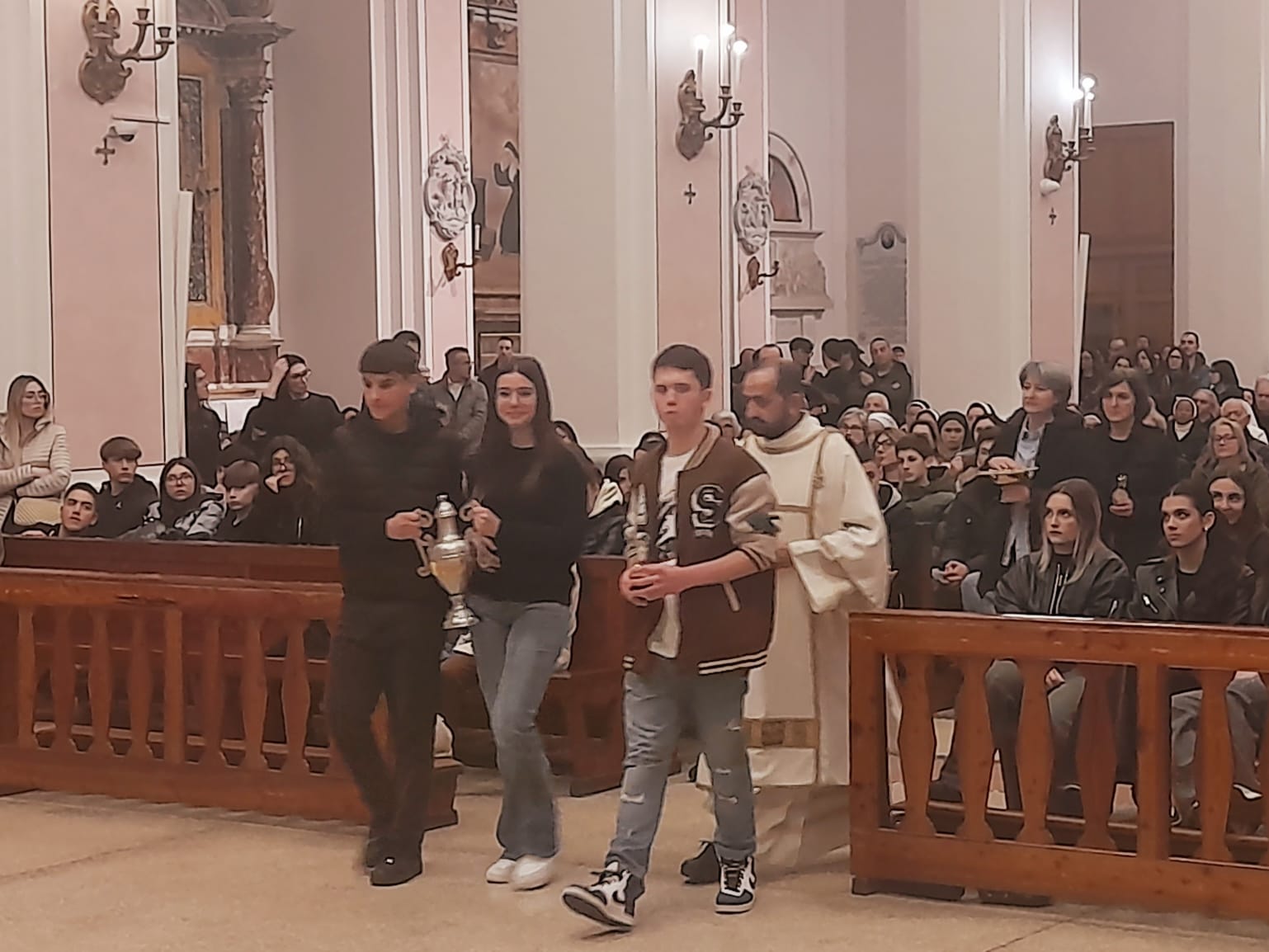 È stata poi la volta dell’olio dei catecumeni, quello che sancisce che il battezzando è diventato un combattente della fede, un paladino della cristianità, come simbolo di forza e fermezza contro le tentazioni e il peccato. Nel benedirlo, il vescovo Palmieri ha pregato il Signore affinché “i catecumeni che ne riceveranno l’unzione comprendano più profondamente il Vangelo di Cristo, assumano con generosità gli impegni della vita cristiana e gustino la gioia di rinascere e vivere nella Chiesa”.