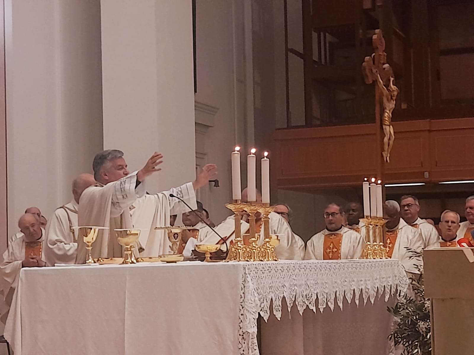 Come ogni anno, nella memoria del giorno in cui Gesù comunicò agli apostoli il suo sacerdozio, i preti presenti hanno rinnovato le loro promesse sacerdotali. In particolare hanno rinnovato il loro impegno ad unirsi e conformarsi intimamente al Signore e ad essere fedeli dispensatori dei Misteri di Dio. Il vescovo Gianpiero ha poi chiesto a tutta l’assemblea di pregare per i preti e per lui, affinché siano fedeli al servizio loro affidato.