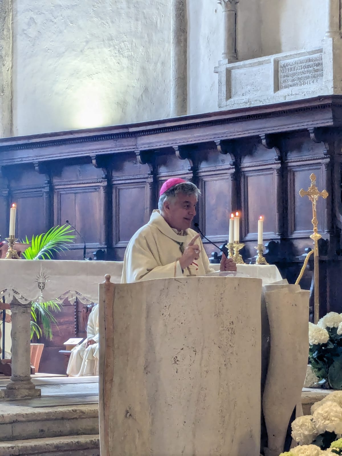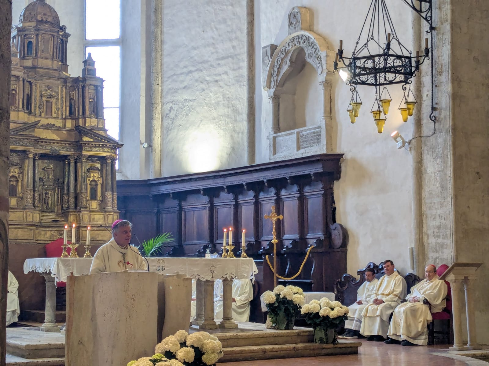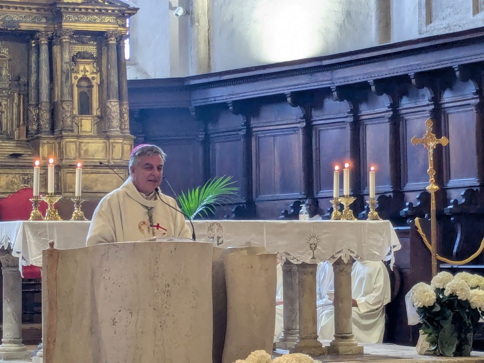 Prima della consacrazione degli oli santi, il vescovo Gianpiero si è rivolto ai presenti, e in particolare ai presbiteri, in una coinvolgente omelia incentrata sulla presenza dello Spirito Santo nella nostra quotidianità e nella comunità cristiana del Piceno, nonostante le molteplici criticità e avversità che ostacolano il nostro cammino.