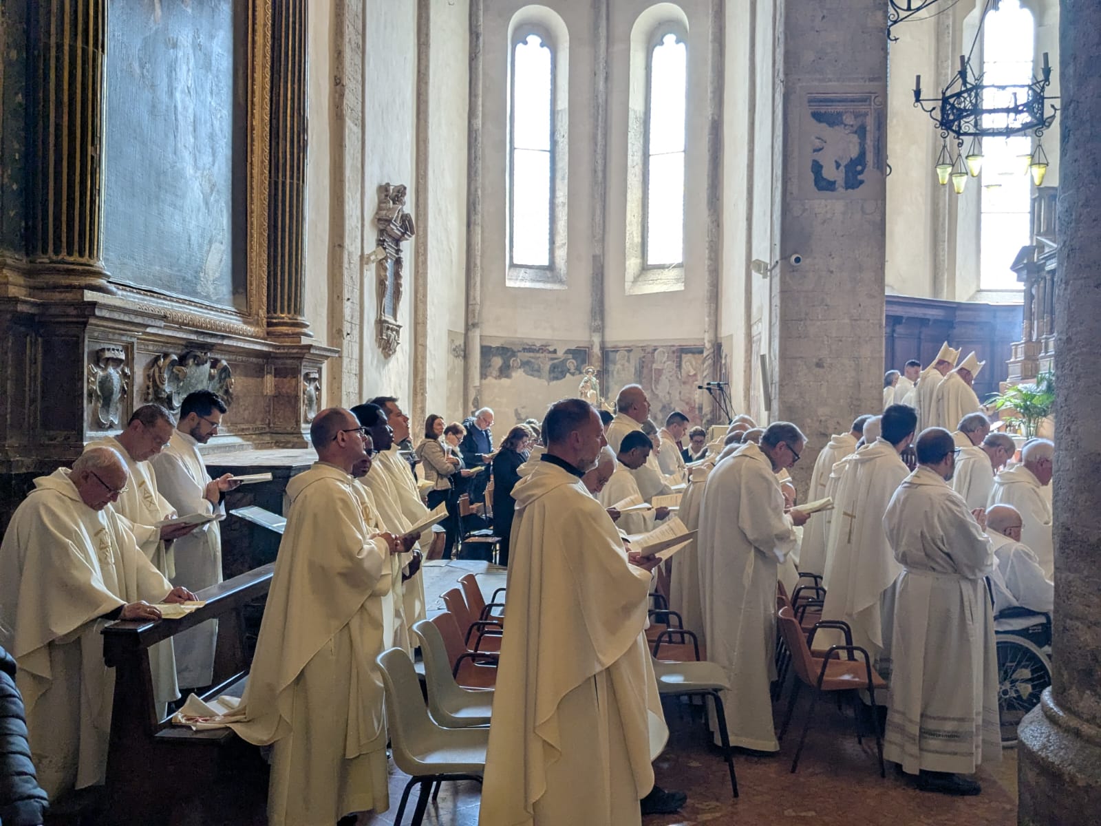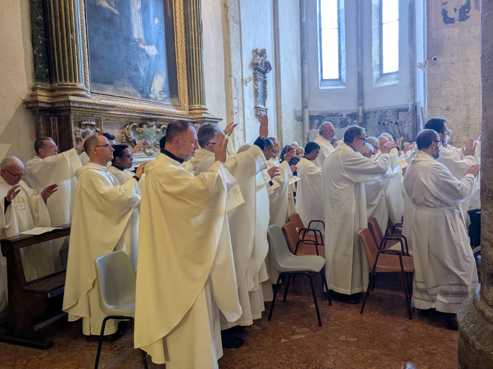 La nostra è una comunità che vive di Spirito, che vedo in particolare in voi sacerdoti. Vedo lo Spirito Santo nei preti che conservano la generosità istintiva degli inizi, nei cui occhi c’è ancora un guizzo di entusiasmo, che si emozionano nella lettura di un passo del Vangelo, che si commuovono di fronte a una persona che apre il cuore di fronte a loro.