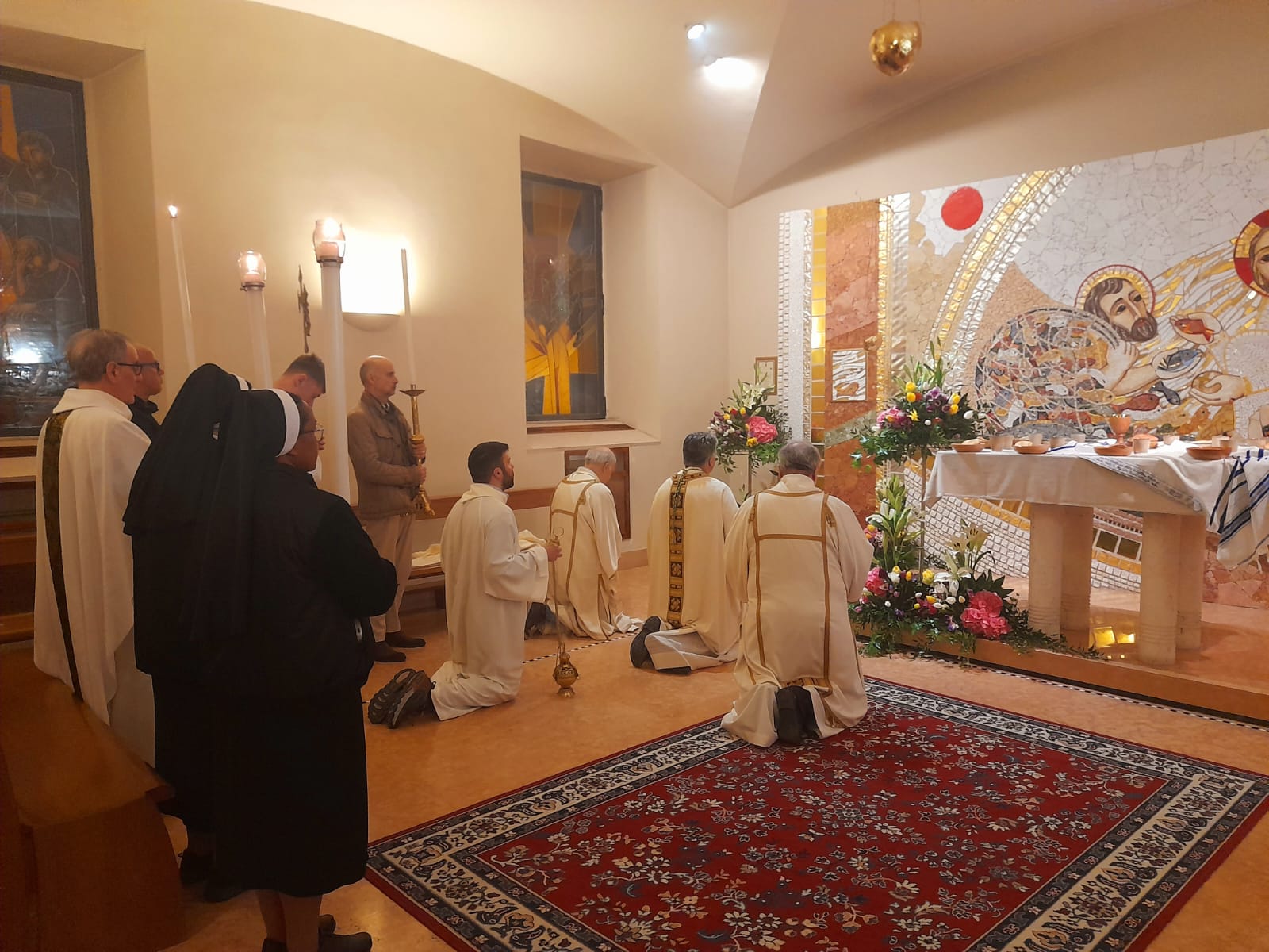 Mi piace pensare che, nel silenzio della cappellina, siano risuonate nei cuori dei fedeli le parole con cui qualche minuto prima il vescovo Gianpiero aveva concluso la Celebrazione: “Lasciamoci lavare i piedi dal Signore, lasciamoci perdonare da Lui, lasciamoci donare il Suo Corpo e il Suo Sangue. Forse è più difficile questo che lavare i piedi agli altri. Chiediamo, allora, al Signore un dono singolare: l’umiltà del cuore e la disponibilità a servire, perché il Signore ci ha serviti per primi. Rivolgiamo a Dio le nostre preghiere ed apriamo il cuore ad accoglierne la grazia sovrabbondante che ci verrà riversata”.