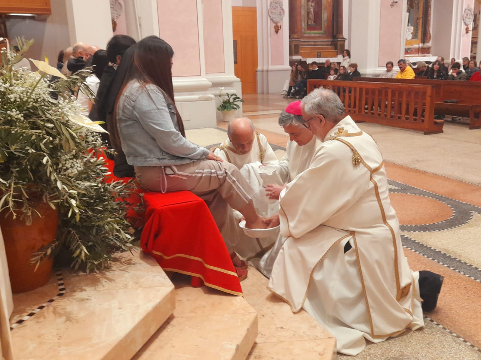 DIOCESI – Don Gianpiero – come ama farsi chiamare – lava, asciuga e bacia i piedi a 12 fedeli della parrocchia Santa Maria della Marina, un segno che fa memoria di Gesù, che si fa servo dell’umanità, ma che simboleggia anche la misericordia infinita di Dio, che vuole che ci lasciamo lavare dall’acqua del Suo perdono per vivere nella gioia e nella pienezza la nostra vita.