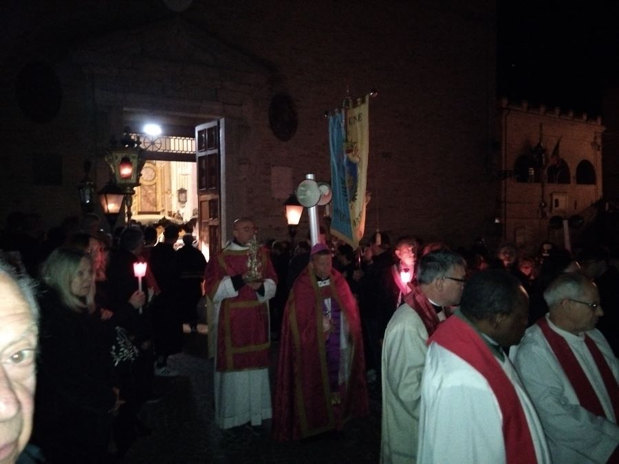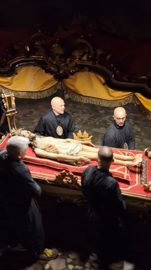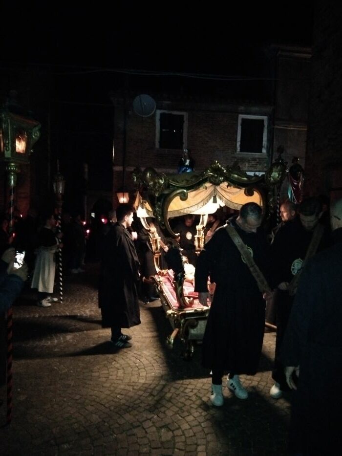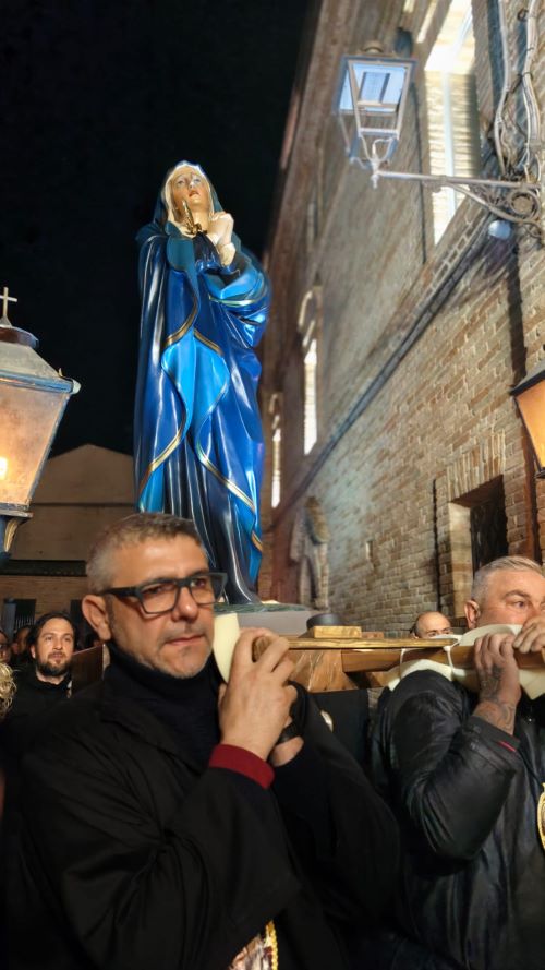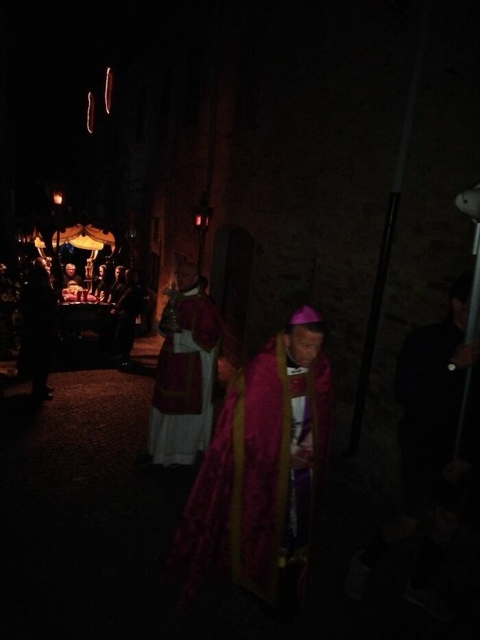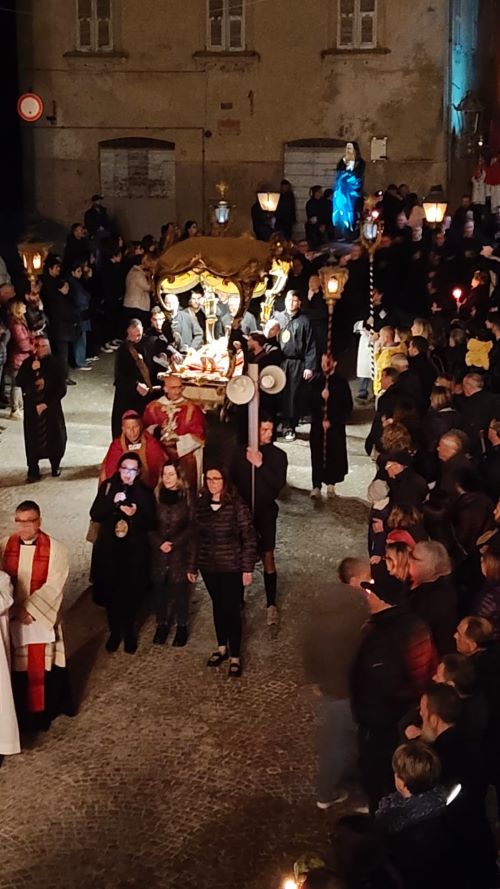 Particolarmente suggestiva la presenza delle Confraternite, che hanno portato a spalla le statue sacre. Tra queste spiccavano la bara settecentesca del Cristo Morto, recentemente restaurata, e la statua di Gesù, anch’essa riportata al suo originario splendore dopo un accurato intervento conservativo.