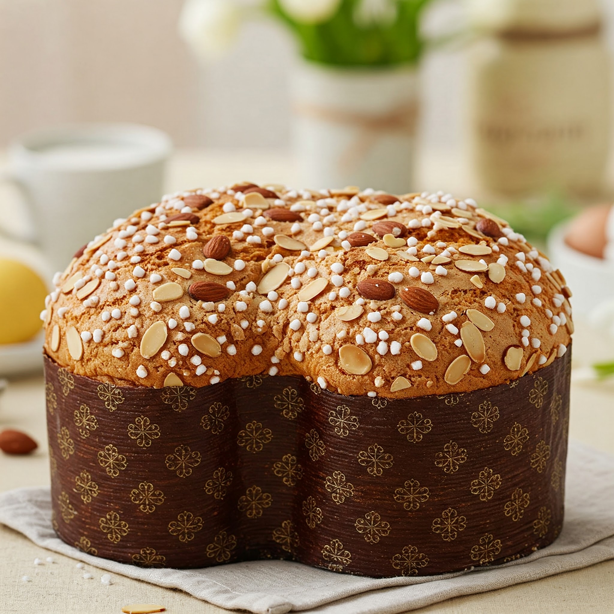 Se la Colomba vi ricorda un altro celebre lievitato italiano, non vi sbagliate! La sua ricetta base presenta molte similitudini con quella del panettone, il re dei dolci natalizi. Entrambi sono realizzati con un impasto a lievitazione naturale (il lievito madre), farina, uova, burro e zucchero. La principale differenza risiede negli aromi e nella forma: la Colomba è arricchita con scorza d’arancia candita (e a volte altri agrumi) e modellata a forma di colomba, mentre il panettone presenta uvetta e canditi di cedro e arancia e ha una forma cilindrica.