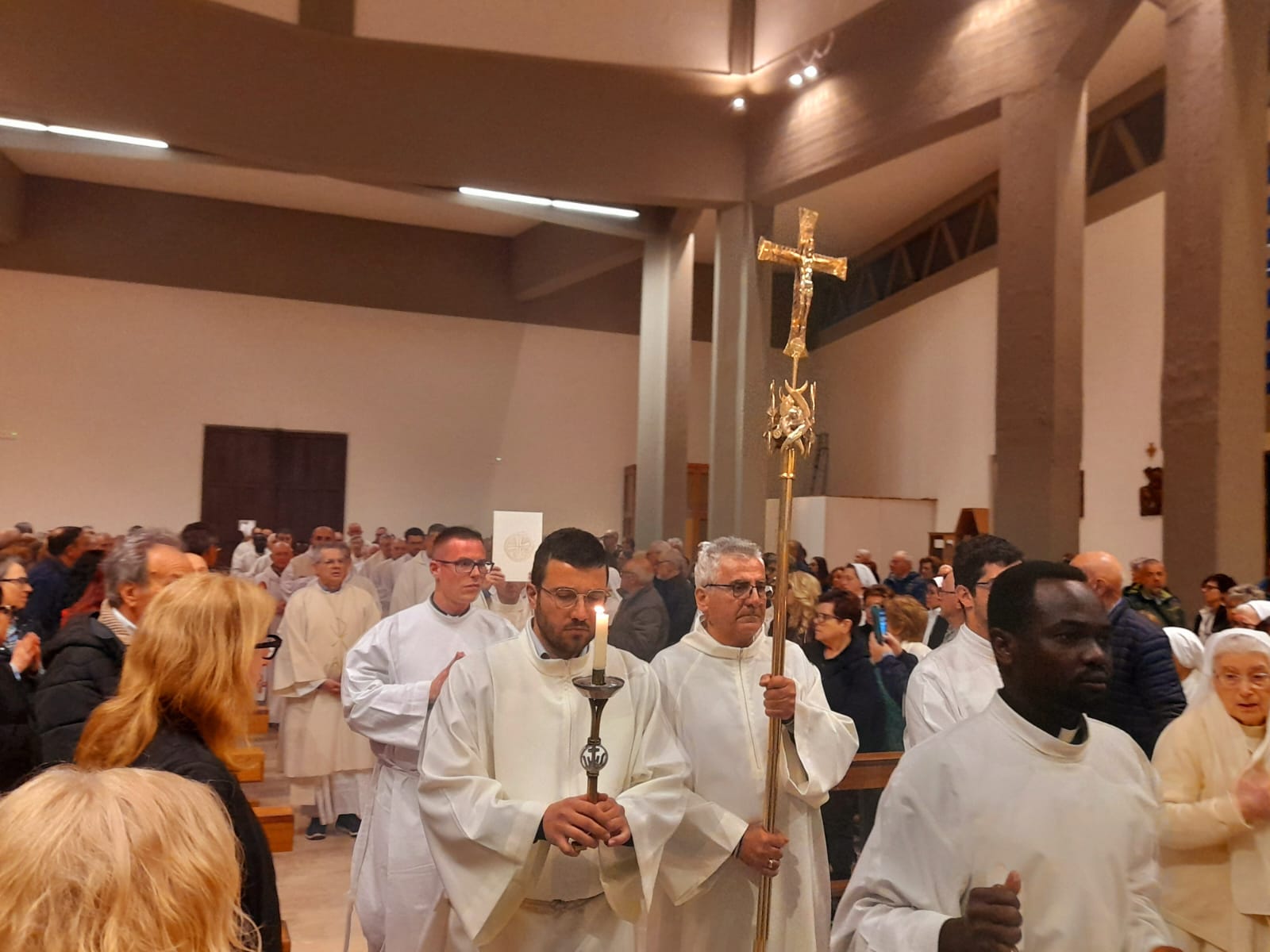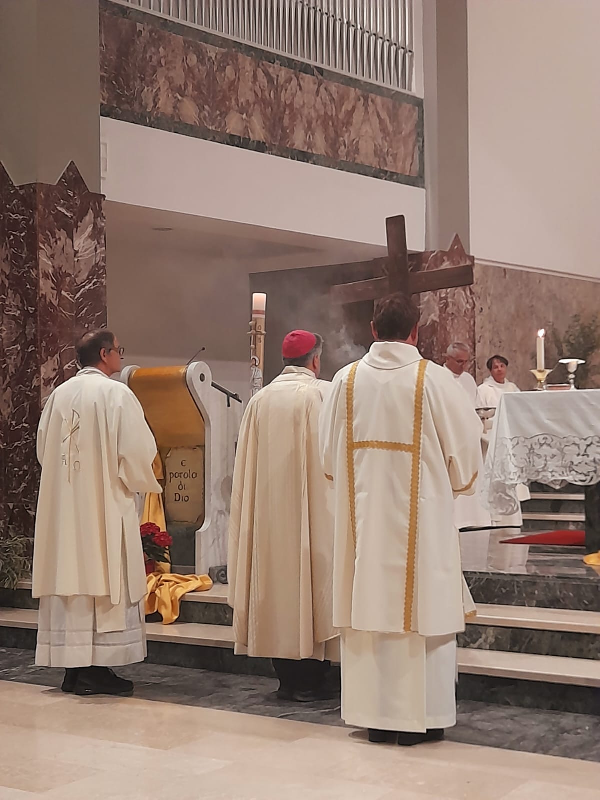 Il vescovo Palmieri ha poi letto un’omelia fatta dal Santo Padre, riferita proprio al Vangelo del giorno, in cui parlava della grazia delle lacrime: “A proposito di Maria Maddalena Papa Francesco dice: «Non c’è più l’amore di Gesù. E Maria Maddalena piange. È il momento del buio. Però Maria Maddalena non dice: ‘Ho fallito’. Strano! Piange semplicemente. Vedete, alle volte nella nostra vita, gli occhiali per vedere Gesù sono le lacrime. C’è un momento nella nostra vita in cui solo le lacrime ci preparano a vedere Gesù. E qual è il messaggio di questa donna? Ho visto il Signore. È un esempio per il cammino della nostra vita. Tutti noi abbiamo, nella nostra vita, attraversato dei momenti di gioia, di dolore, di tristezza. Tutti siamo passati per queste cose. Ma – e lascio cadere una domanda – abbiamo pianto? Nei momenti più scuri abbiamo pianto? Abbiamo avuto il dono delle lacrime che preparano gli occhi per vedere il Signore? Vedendo questa donna che piange, possiamo anche noi domandare al Signore la grazia delle lacrime? È una bella grazia, è una bella grazia! Piangere è frutto di tutto. Del bene, dei nostri peccati, delle grazie, della gioia pure! Piangere di gioia. Quella gioia che noi abbiamo chiesto di avere in Cielo e che adesso pregustiamo. Piangere. Il pianto ci prepara a vedere Gesù. E il Signore dia la grazia a tutti noi di poter dire, nella nostra vita, ‘Ho visto il Signore!’. ‘Perché ti è apparso?’. ‘No, non lo so. Ma l’ho visto. L’ho visto nel cuore. E, perché l’ho visto, vivo. E l’ho visto in questa maniera qui, tra le lacrime’. E questa è la testimonianza. Ho visto il Signore. Bene! Che tutti noi possiamo dare questa testimonianza: ‘Vivo così, perché ho visto il Signore!’».