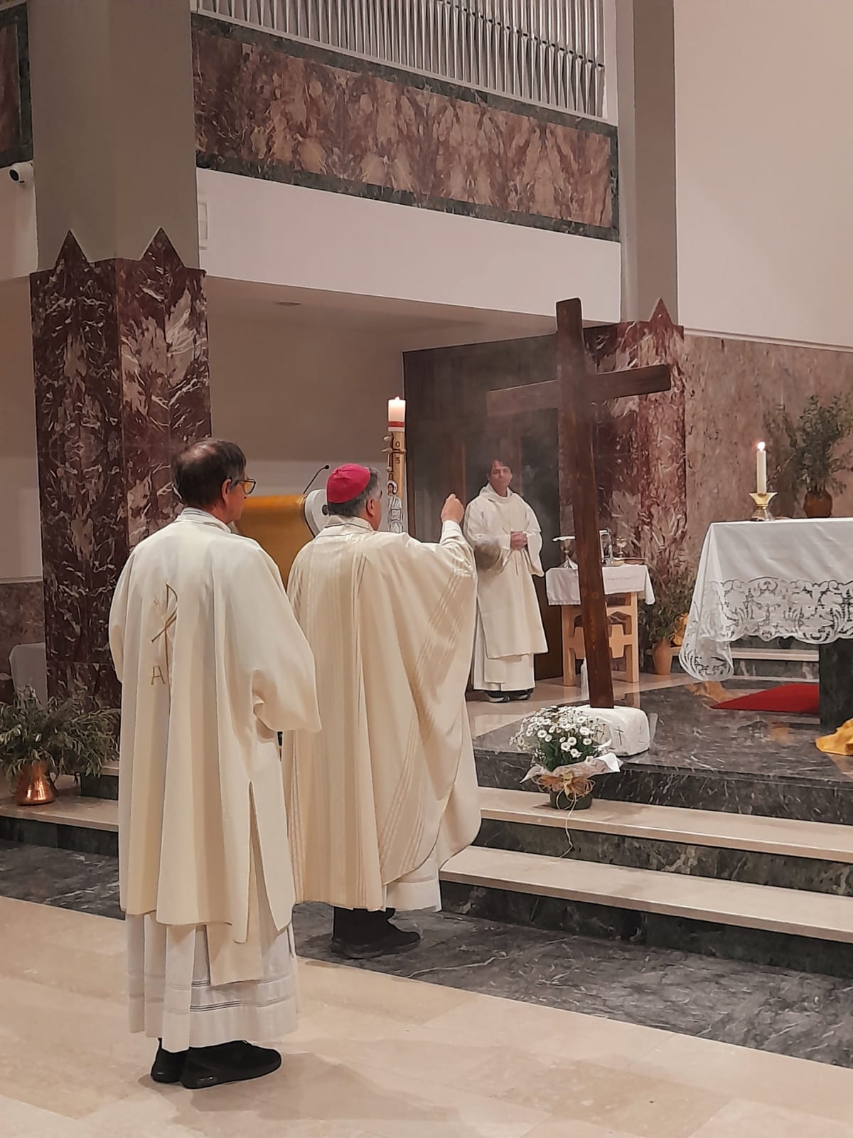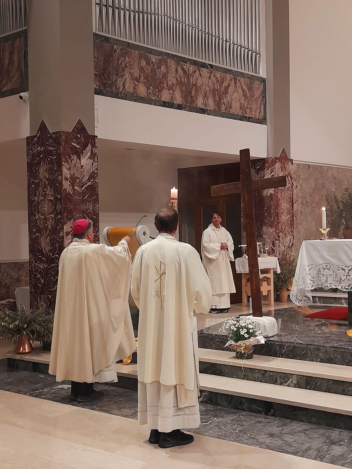 Sono queste le immagini più suggestive e rappresentative della Celebrazione Eucaristica che si è svolta ieri sera, 22 Aprile 2025, alle ore 21:00, presso la chiesa Santa Maria Goretti in Ascoli Piceno, per l’occasione gremita di fedeli accorsi da ogni parte della Diocesi di Ascoli Piceno per commemorare Papa Francesco e pregare per lui. La Santa Messa, presieduta dall’arcivescovo Gianpiero Palmieri, è stata concelebrata anche da numerosi preti diocesani. Tra i fedeli era presente anche Sua Eccellenza Sante Copponi, Prefetto di Ascoli Piceno.