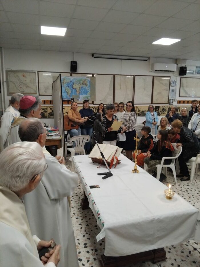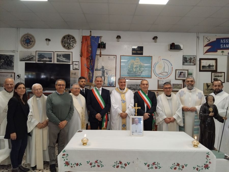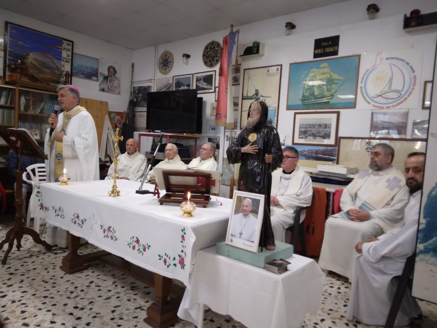 A concelebrare con Mons. Palmieri vi erano il Vicario generale don Patrizio Spina, don Giuseppe Giudici dell’Ufficio per l’Apostolato del Mare, don Federico Pompei e don Luciano Paci.