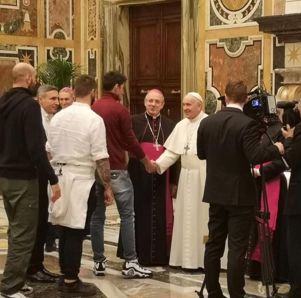 “Non dimenticherò mai quel 18 Gennaio del 2020, quando Papa Francesco ci accolse per una Celebrazione privata e poi venne a ringraziarci per il lavoro gratuito di pulizia del mare che stavamo facendo con il progetto ‘A pesca di plastica’. Il Santo Padre ci strinse la mano singolarmente. Io, che ero uno dei più giovani ed avevo tatuaggi dappertutto, fui colto da una grande emozione e anche da un po’ di ansia, tanto che, mentre ero in fila per giungere dal Papa, mi sudavano le mani e mi muovevo nervosamente. Papa Francesco se ne era accorto e, quando arrivò il mio momento, porgendomi la mano e facendosi una risata, mi disse: “Ah, finalmente è arrivato il ragazzo tutto tatuato!“. Con quella semplice battuta riuscì a far sciogliere i miei nervi tesi e ci facemmo anche una bella risata insieme. Mi ringraziò per il mio contributo e tornai a casa con un gran sorriso, ignaro che lo scatto fotografico di quella mano tatuata che stringeva quella del Papa avrebbe fatto il giro del web”.