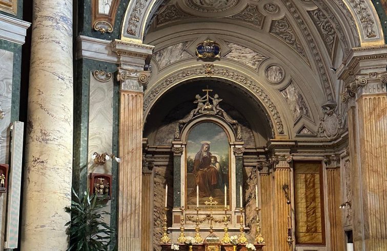 dice al Sir padre Mario Millardi, parroco di Sant’Anna in Vaticano. Da diversi anni è lui a guidare questa piccola comunità intitolata alla madre di Maria, Sant’Anna. Il dipinto centrale sull’altare, di Arturo Valligiani, mostra una madre dolcissima seduta su una sedia che ascolta le confidenze di Maria bambina, inginocchiata ai suoi piedi. La chiesa, costruita nel 1565 da Giacomo Barozzi, detto “il Vignola” (uno dei più noti nomi dell’architettura rinascimentale), prende il nome dalla confraternita dei “Palafrenieri pontifici”, gentiluomini di corte con mansioni di fiducia che nel 1378 scelsero Sant’Anna come patrona.