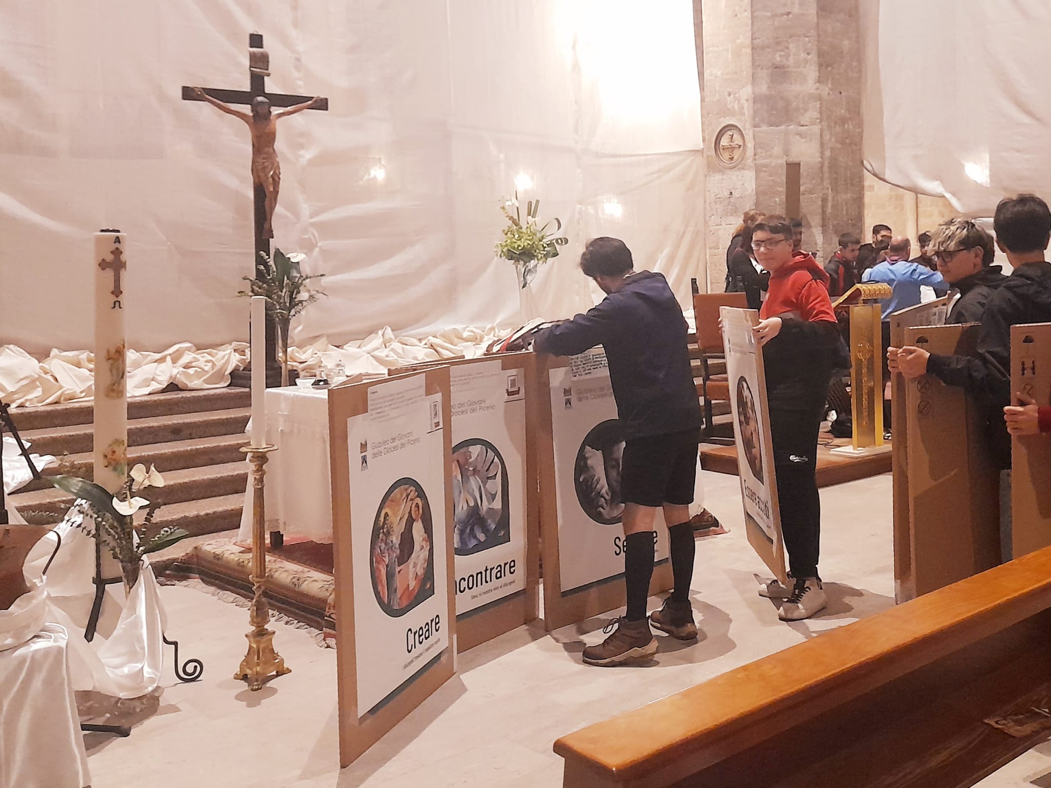 Nella chiesa Santa Maria della Carità, in piazza Roma, i ragazzi, guidati da don Giuseppe Bianchini, hanno vissuto un laboratorio sull’esperienza della riconciliazione, ispirato alla stazione della Via Lucis che ricorda il momento in cui Gesù conferisce agli apostoli il potere di rimettere i peccati.