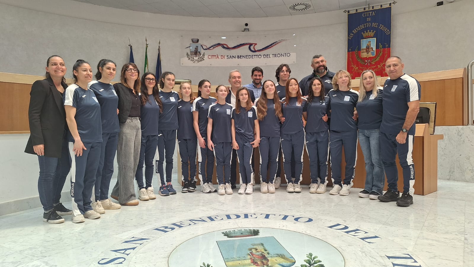 Come di consueto in queste occasioni, il Sindaco, a nome dell’Amministrazione comunale e della comunità sambenedettese, ha omaggiato la società e gli atleti di targhe ricordo per celebrare l’importante traguardo conseguito: la prima, intitolata alla World Sporting Academy, è stata consegnata nelle mani della presidente Christel Mattoni. Targhe individuali sono poi andate a ciascuna delle atlete della squadra: Giada Di Pietro, Iris Tommasi, Rebecca Moré, Adele Pagani, Lai Filippini, Tina Novi, Mia Fatima Pia Cervi, Alessia Quaranta e Serena Sacchi.