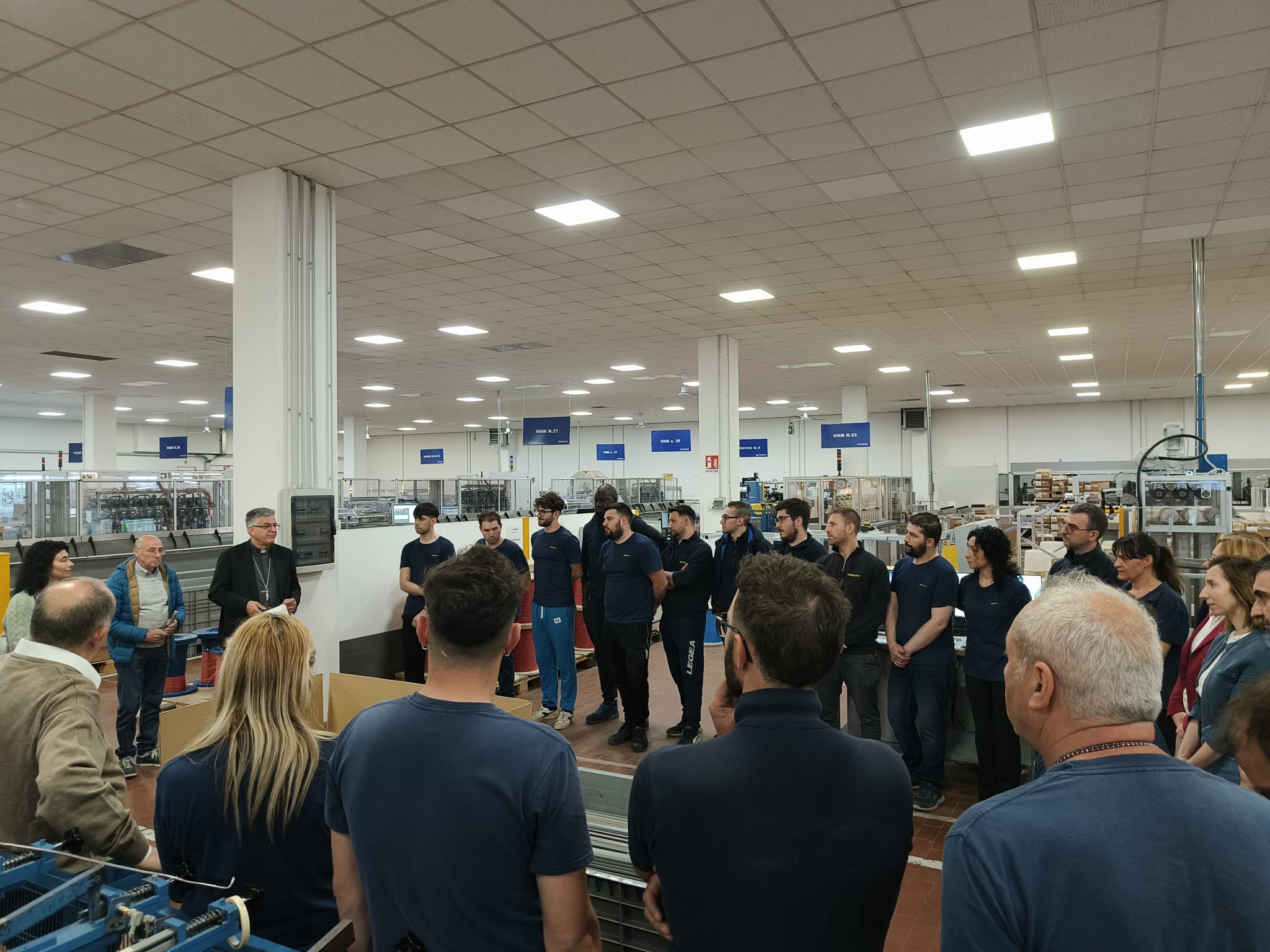 Passaretti Luigi: “Ritengo molto importante l’orientamento dei ragazzi al lavoro, per questo motivo dedico del tempo a queste attività. In quest’occasione hanno partecipato alle visite l’ISC di Comunanza, Montemonaco, Force e Santa Vittoria: quattro classi, accompagnate dalla Preside Alessia Cicconi e dal Vescovo mons. Palmieri, in quattro aziende.”