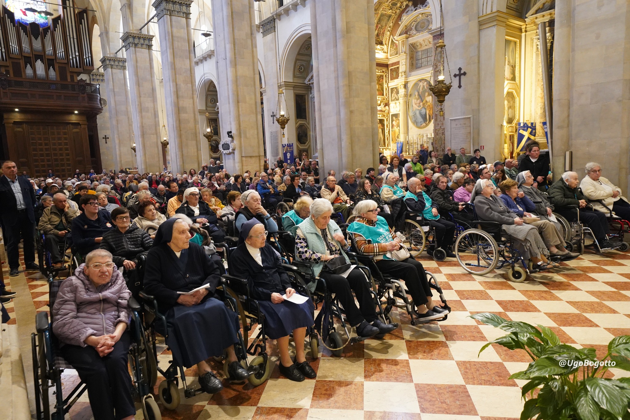 «Viviamo con gratitudine questo incontro, accompagnati dalla benedizione del Papa», ha detto Mons. Dal Cin nel suo saluto iniziale. «Siete giunti da tanti luoghi della nostra regione e oltre, e saluto anche le tremila persone collegate da casa attraverso i social. La Santa Casa di Loreto vi accoglie con amore e speranza. La presenza di tre vescovi testimonia quanto ognuno di voi stia a cuore alla Chiesa: siete i più vicini a Gesù, perché condividete con Lui la sofferenza. Grazie a tutti coloro che si sono prodigati per questo evento, ai volontari e al personale Unitalsi. E grazie anche a chi ogni giorno vi assiste con dedizione nelle famiglie, nelle case di riposo, negli ospedali. La sofferenza è un peso grande, ma qui, dove Maria ha pronunciato il suo “sì” a Dio, ricordiamo che nessuno è mai solo: Dio è con voi, specialmente nei momenti di prova. La vostra preghiera ha un valore immenso per voi, per i vostri cari e per il mondo intero».