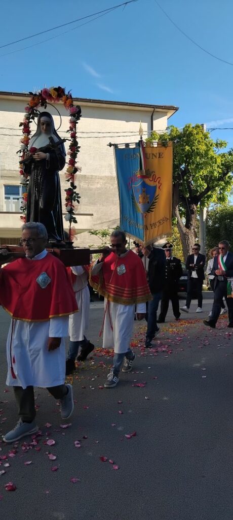 Dopo il triduo di preparazione, domenica si sono svolte le Celebrazioni Eucaristiche presso il convento dei frati. Nell’omelia, padre Angelo, appartenente all’Ordine degli Agostiniani Scalzi, ha ricordato la figura di Santa Rita: figlia, moglie, madre e infine monaca, simbolo di virtù cristiana e di fede incrollabile anche nei momenti più difficili.
