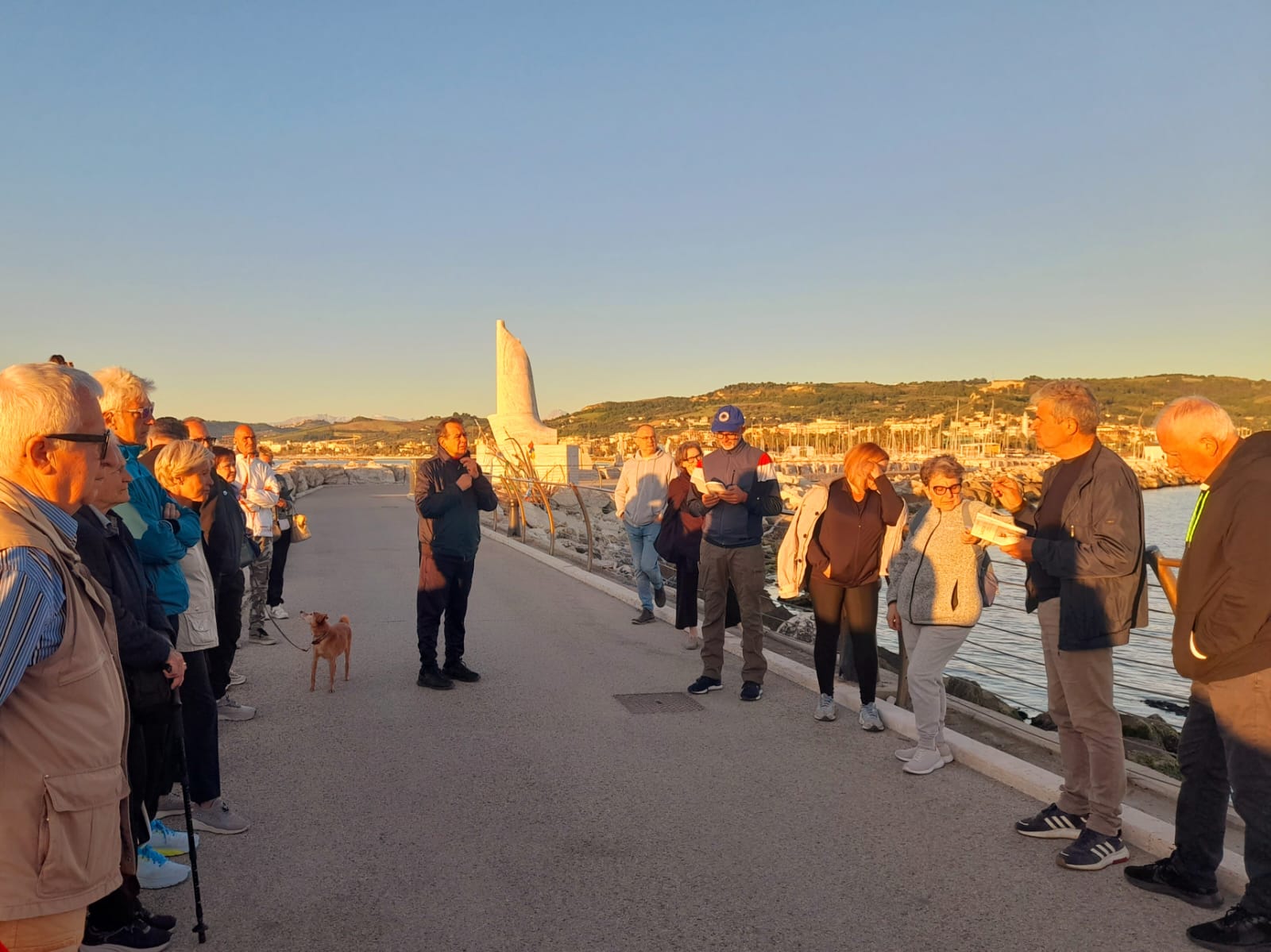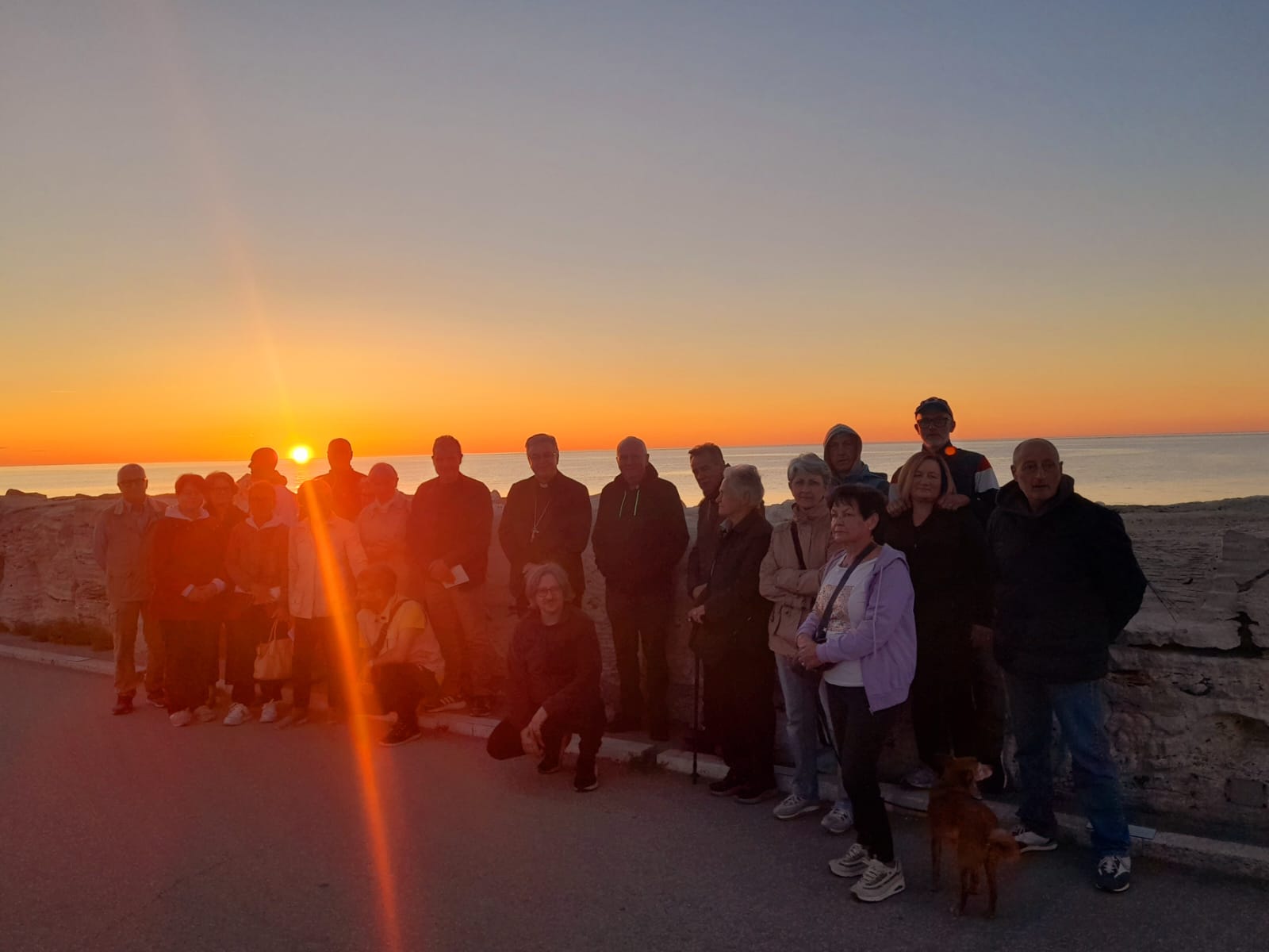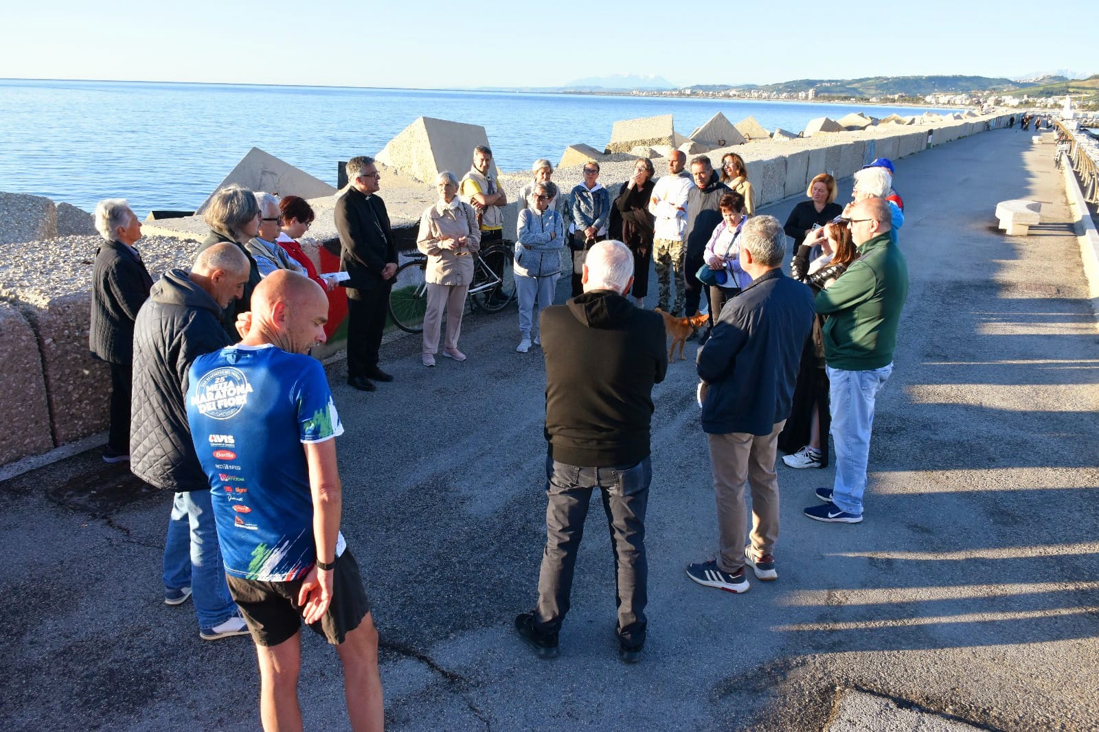 DIOCESI – Il giallo intenso del sole che fa capolino lungo la linea dell’orizzonte, l’arancio del cielo che si tinge di fuoco ai primi raggi del mattino, l’azzurro striato dal mare che prosegue incessantemente il suo sciabordio, il bianco della cresta delle onde che si infrangono lungo gli scogli, il rosa del riverbero delle imbarcazioni sulla lastra cristallina del mare: sono questi i colori della tavolozza di Dio, il Pittore che ha dipinto il Creato, e che Sabato 30 Maggio 2025, alle ore 5:00, in molti hanno potuto ammirare passeggiando sul lungomare di San Benedetto del Tronto, grazie all’iniziativa organizzata dagli Uffici di Pastorale Sociale, del Lavoro e della Cura del Creato delle due Diocesi del Piceno per celebrare il decimo anniversario dell’enciclica Laudato Si’ di papa Francesco.