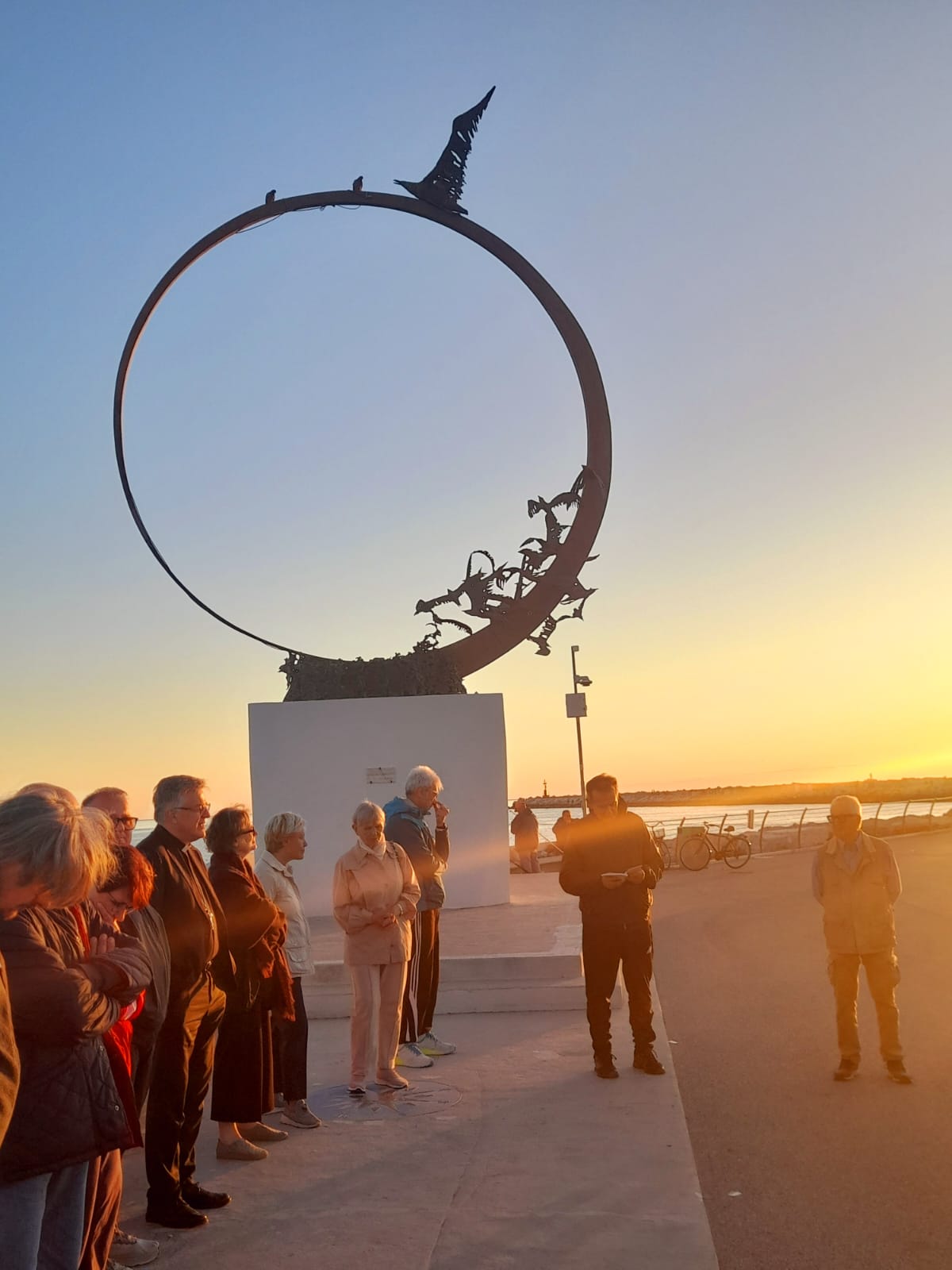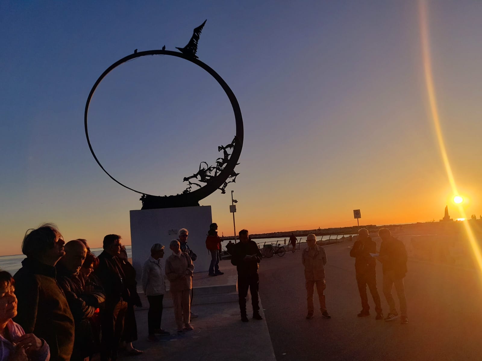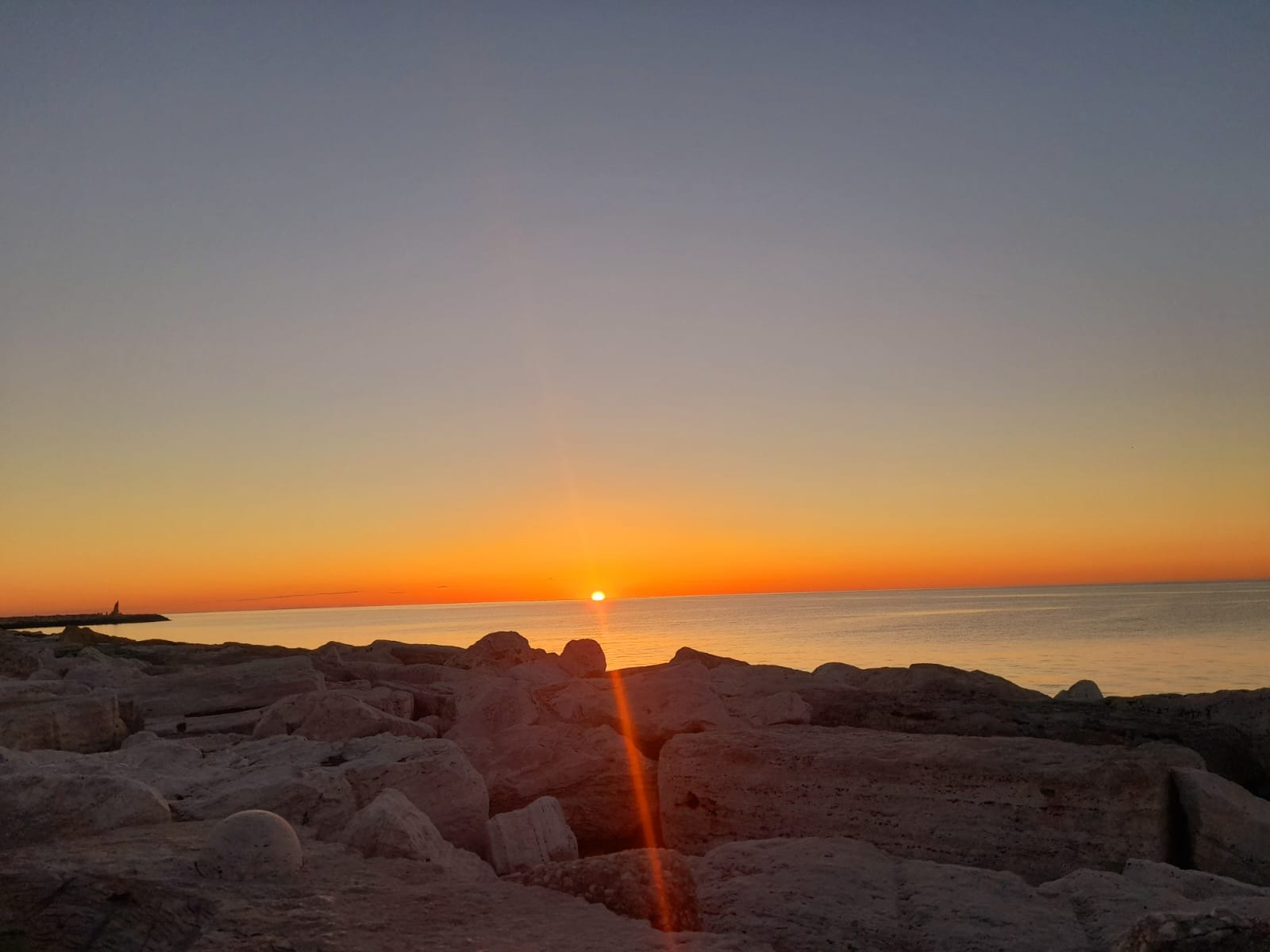 DIOCESI – Il giallo intenso del sole che fa capolino lungo la linea dell’orizzonte, l’arancio del cielo che si tinge di fuoco ai primi raggi del mattino, l’azzurro striato dal mare che prosegue incessantemente il suo sciabordio, il bianco della cresta delle onde che si infrangono lungo gli scogli, il rosa del riverbero delle imbarcazioni sulla lastra cristallina del mare: sono questi i colori della tavolozza di Dio, il Pittore che ha dipinto il Creato, e che Sabato 30 Maggio 2025, alle ore 5:00, in molti hanno potuto ammirare passeggiando sul lungomare di San Benedetto del Tronto, grazie all’iniziativa organizzata dagli Uffici di Pastorale Sociale, del Lavoro e della Cura del Creato delle due Diocesi del Piceno per celebrare il decimo anniversario dell’enciclica Laudato Si’ di papa Francesco.