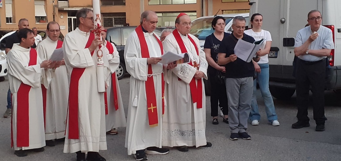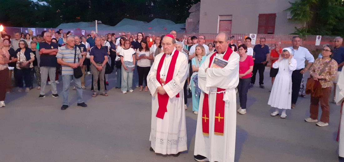 La Veglia è iniziata sabato scorso, alle 20:30, con una solenne processione introitale presieduta dall’ascolano S.E. Cardinale Giuseppe Petrocchi. Il punto di ritrovo era situato nella località Pennile di Sotto, in prossimità della chiesa di S. Marcello, lato est della città, poiché la Cattedrale non era fruibile a causa di importanti lavori di restauro. La processione si è svolta lungo le strade del quartiere, dove erano previste sette tappe, ciascuna dedicata ad un dono dello Spirito Santo.