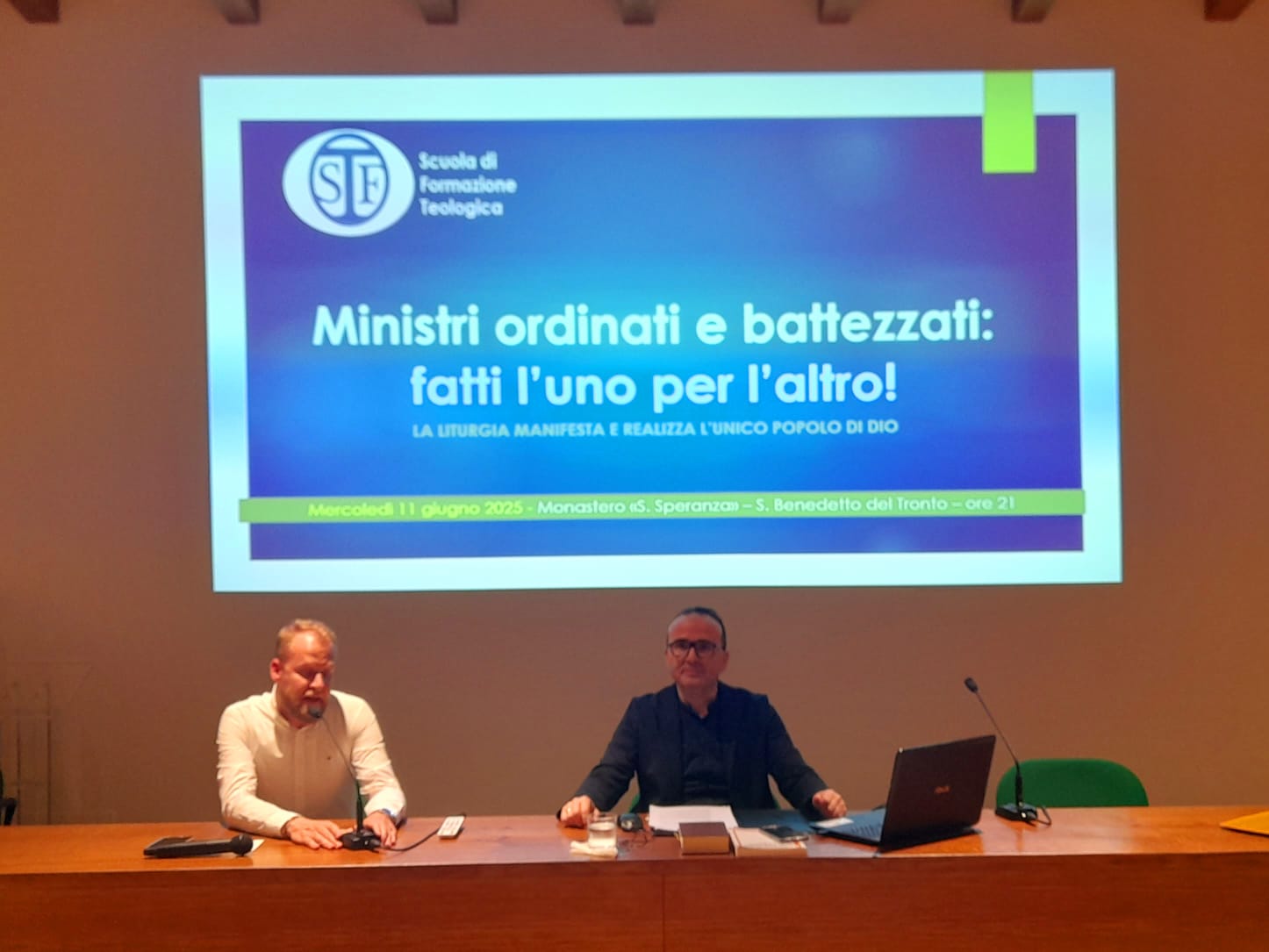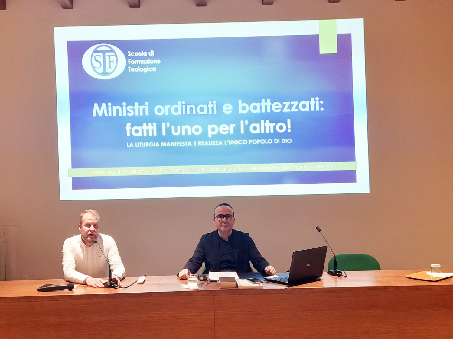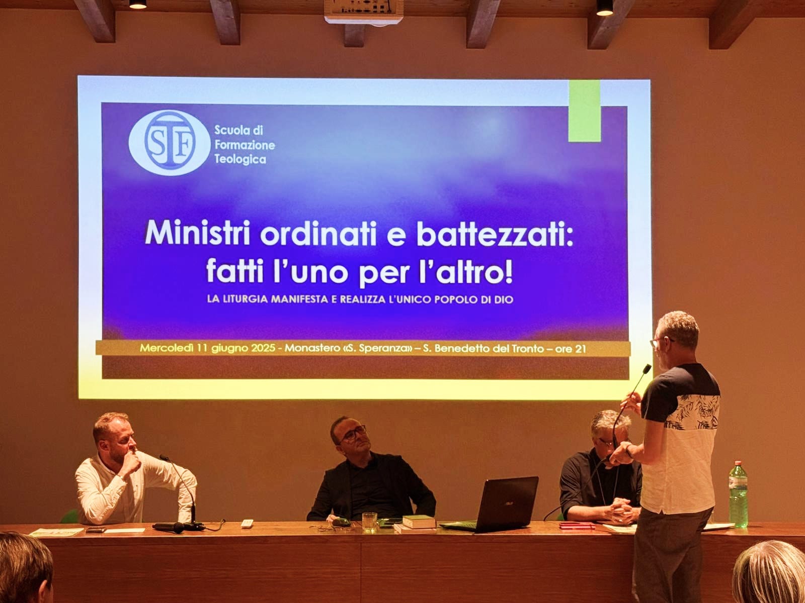 È con queste parole che don Gian Luca Pelliccioni, presbitero della Diocesi di San Benedetto del Tronto – Ripatransone – Montalto e docente di Teologia Fondamentale presso la Scuola di Formazione Teologica, ha iniziato il suo intervento durante l’incontro dal titolo “Ministri ordinati e battezzati: fatti l’uno per l’altro!”, che si è tenuto Mercoledì 11 Giugno, alle ore 21:00, presso la suggestiva cornice del monastero Santa Speranza, in San Benedetto del Tronto. Il sottotitolo – “La liturgia manifesta e realizza l’unico popolo di Dio” – svela quale sia stato il tema al centro della serata.