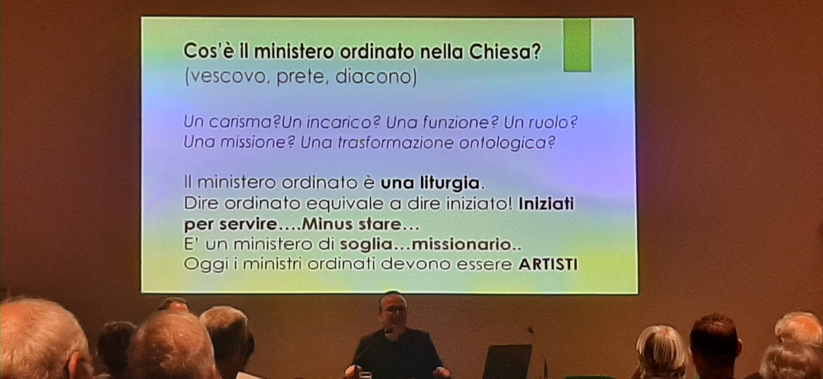 In tal senso, in questo cambiamento d’epoca, il Ministero Ordinato è un ministero di soglia, missionario, creativo. Ogni ministro ordinato deve essere un artista. Cosa significa? L’artista non è mai bizzarro, ma fa emergere una parola, un’aspirazione, un desiderio. L’artista deve saper comporre cose che non sono stabilite, deve essere creativo. Non è un caso che si parli sempre più spesso di ars celebrandi, di arte pastorale. Oggi insomma i ministri ordinati devono essere creativi e quindi in definitiva artisti nell’atto stesso della celebrazione. Un tempo, quando tutti erano cristiani, il cristianesimo era ridotto a moralismo, identificandosi la Chiesa con la sua autorità: sopra c’era una Chiesa docente e sotto una Chiesa discente, con una separazione netta tra ministri ordinati e popolo di Dio. Ordine e Battesimo, invece, sono entrambe iniziazioni, diverse, ma entrambe costitutive della Chiesa, grazie alle quali la Chiesa realizza la sua missione, la sua apostolicità“.