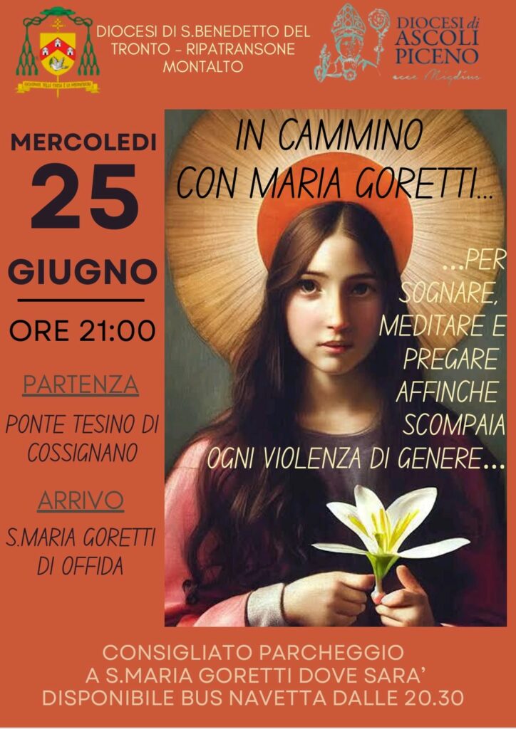 L’appuntamento è fissato per mercoledì 25 giugno alle ore 21:00. La partenza è prevista dal Ponte Tesino di Cossignano, con arrivo presso la chiesa di Santa Maria Goretti di Offida.