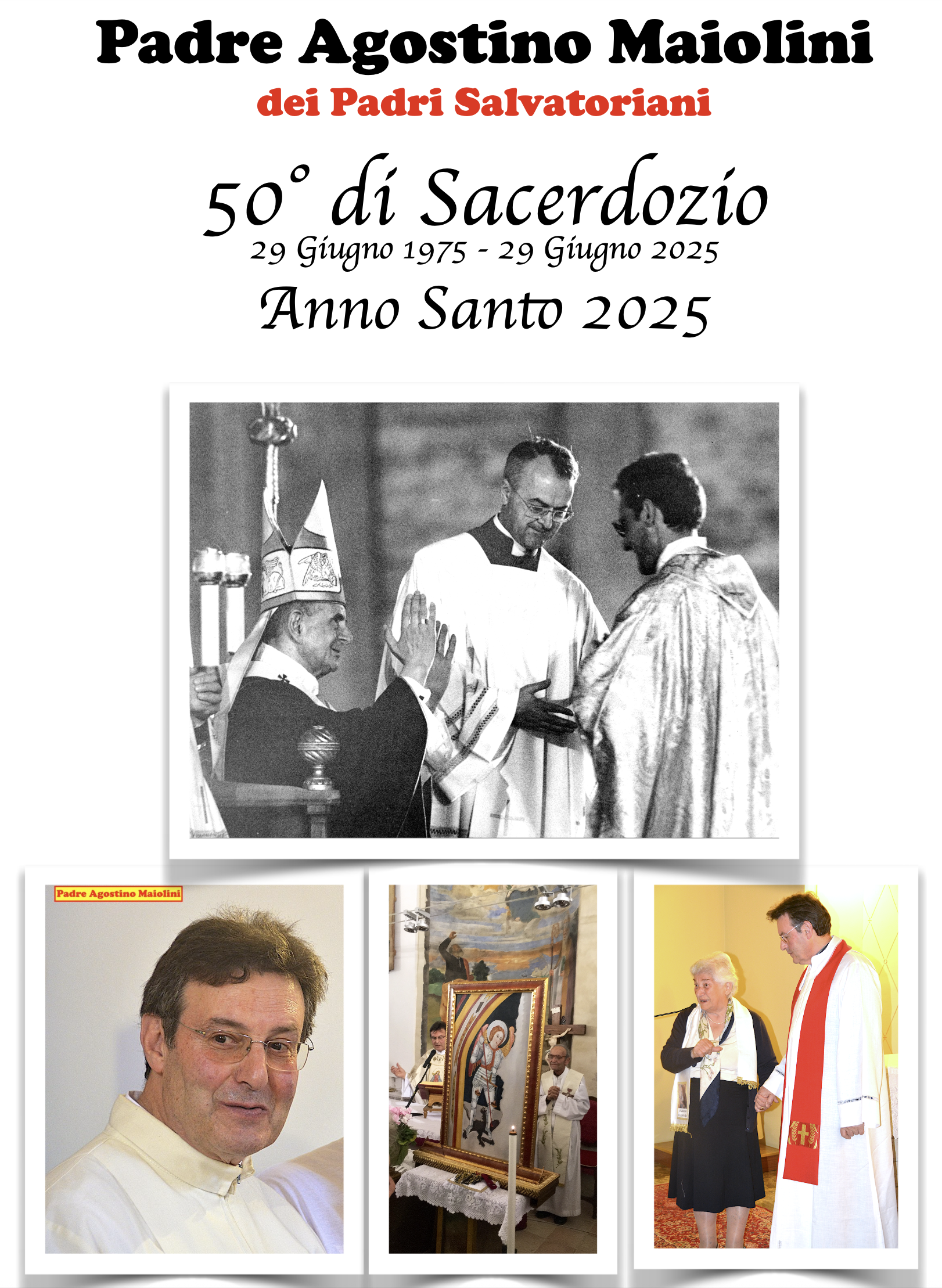 Padre Agostino è stato l’amatissimo parroco di San Michele Arcangelo per cinque anni con il Vice che era, ed è ancora, lo zio padre Giovanni Guerrino Mazzoni (e c’è da dire che anche padre Giovanni, dall’alto dei suoi 96 anni già compiuti, il 3 luglio 2025 raggiungerà un traguardo elevatissimo: 70 anni di Sacerdozio!).