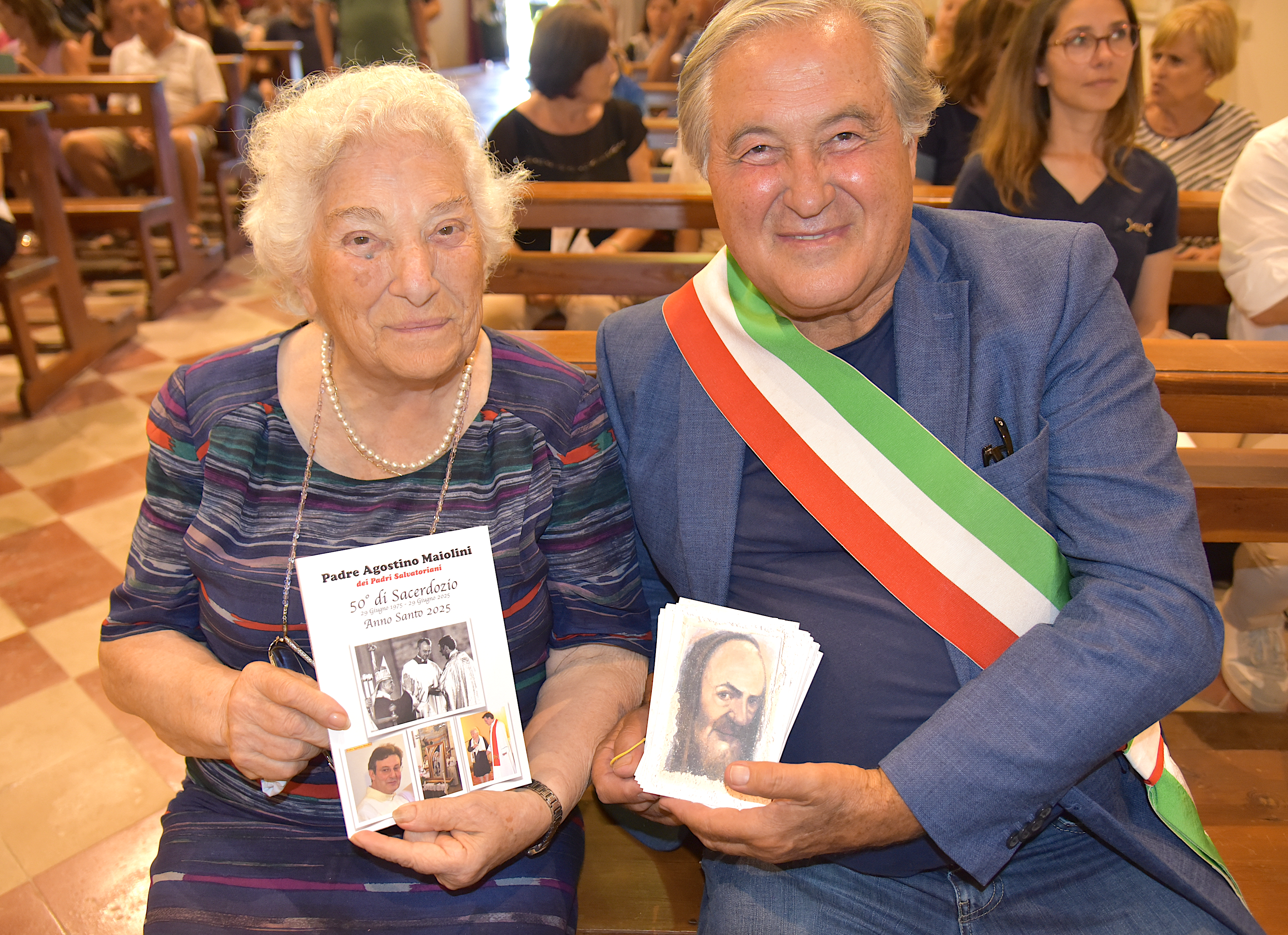 MONTELPARO – Il 50° anniversario di ordinazione presbiterale di padre Agostino Maiolini si è celebrato Domenica 29 giugno 2025, nella affollatissima chiesa di San Michele Arcangelo di Montelparo.