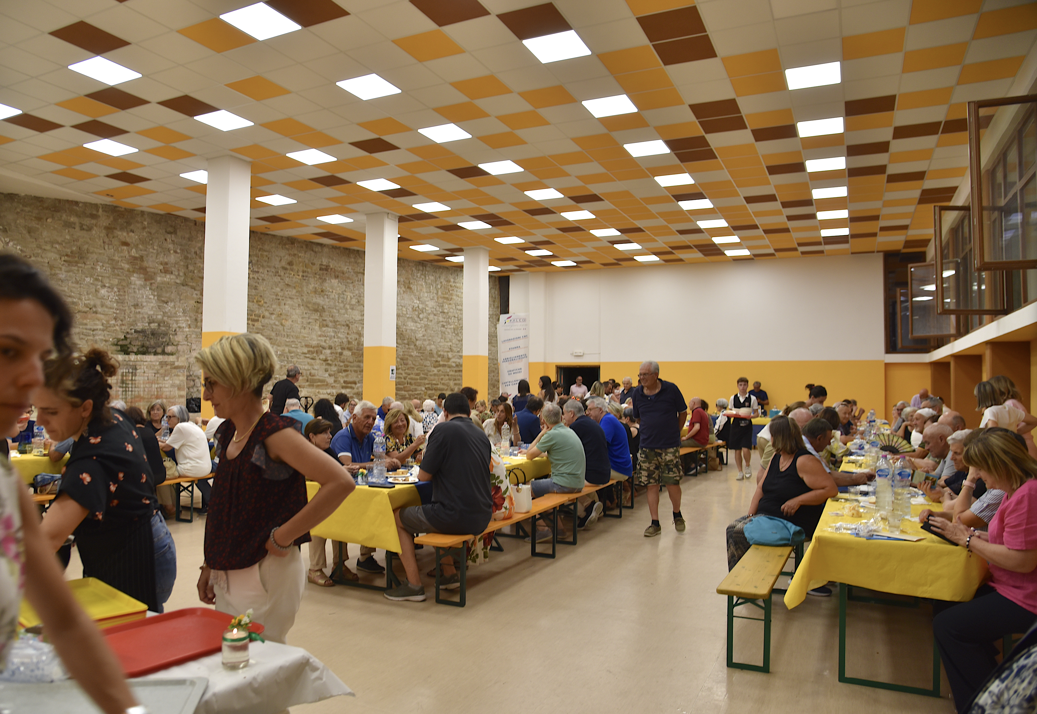 La cerimonia ha avuto termine con un rinfresco sul piazzale adiacente alla chiesa, dopo di cui tutti alla “Cena di Beneficenza o Solidale”, con i ricavi a favore dell’“Ospedale di Comunità Post Oncologico Pediatrico” di Drapia in Calabria, organizzata presso la palestra comunale con l’ottima cena di pesce preparata dai pescatori sambenedettesi amici di padre Agostino.