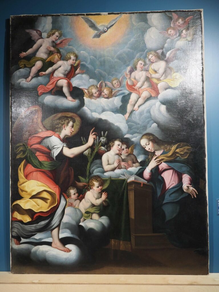 ARQUATA DEL TRONTO – Un’opera dipinta ad olio su tela nel 1620, con una storia recente che lega profondamente due comunità comunali, provinciali e regionali. L’Annunciazione, attribuita all’ambito di Francesco Albani, fu recuperata dai Carabinieri del Nucleo Tutela Patrimonio Culturale di Ancona, diretti dall’allora tenente colonnello Carmelo Grasso, e dai Vigili del Fuoco, nella chiesa della Santissima Annunziata di Arquata del Tronto, devastata dal terremoto del 2016. Insieme ad un nucleo di opere d’arte, il prezioso dipinto fu restaurato a Corropoli, grazie alla stretta collaborazione di una filiera attivatasi all’indomani del sisma e che vide lavorare assieme la Diocesi di Ascoli Piceno, le Soprintendenze di Marche e Abruzzo, i comuni di Arquata del Tronto e di Corropoli, l’Università di Camerino e Italico onlus. Il delicato e complesso intervento di restauro fu diretto dal funzionario della Soprintendenza Pierluigi Moriconi e operato da Serena Petrelli, Michele Aureli e Davide Di Silvestro, con il supporto delle indagini diagnostiche di Giuseppe Di Girolami, grazie ai fondi raccolti dall’azienda Colgate-Palmolive di Anzio e ai suoi dipendenti.