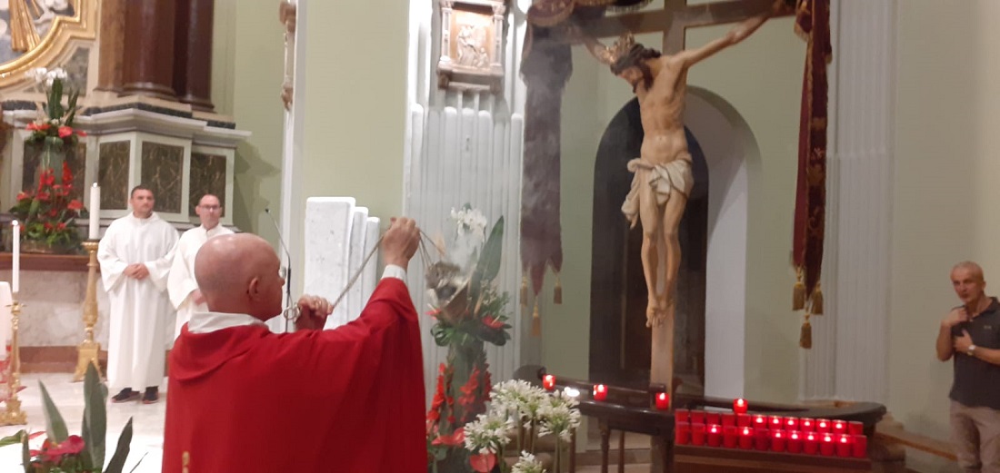 La processione del Santissimo Crocifisso ha percorso diverse vie del quartiere accompagnata dalla grande devozione e partecipazione dei fedeli. Purtroppo, a causa di altri impegni, l’Arcivescovo non ha potuto partecipare alla processione del Santissimo Crocifisso, la quale ha proceduto sotto la guida del parroco don Alvaro Campanelli.