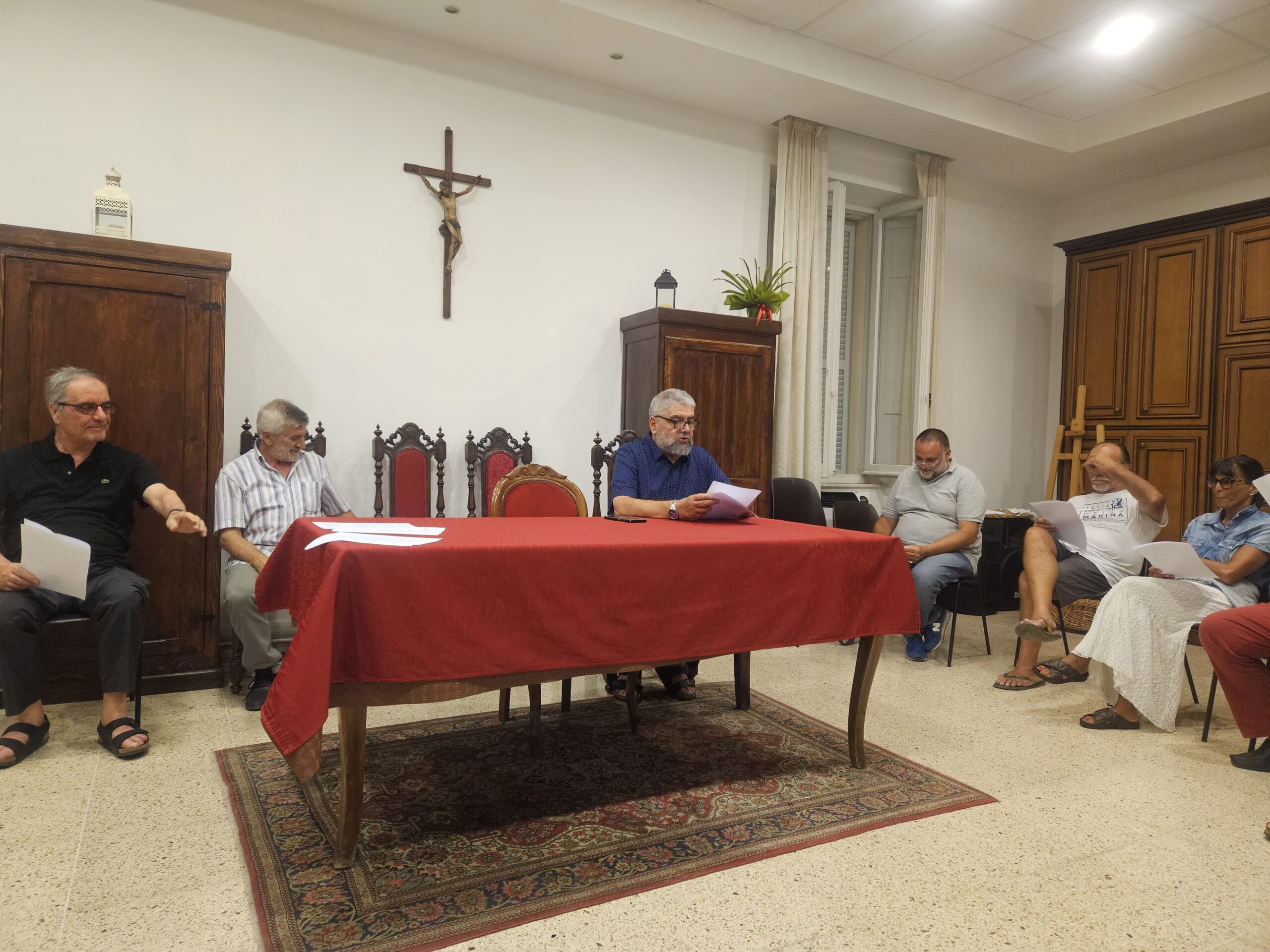 SAN BENEDETTO DEL TRONTO – In una serata abbastanza fresca, considerato il clima torrido di questi giorni, il parroco della Madonna della Marina e vicario generale della Diocesi, don Patrizio Spina, ha convocato negli ambienti della cattedrale gli “stretti” collaboratori per discutere e perfezionare giorno per giorno, le iniziative religiose della Festa della Madonna della Marina 2025. Presente mons. Romualdo Scarponi.