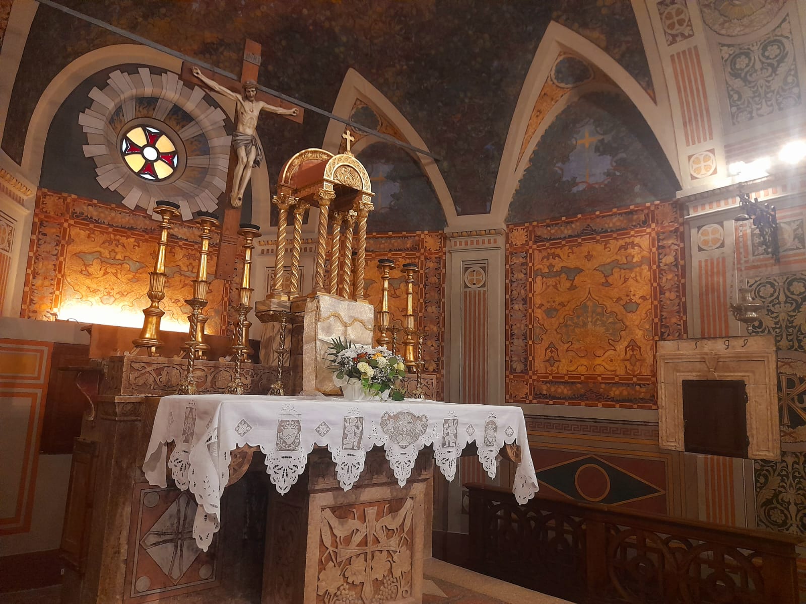 Dopo il saluto iniziale, prima di proseguire con la Celebrazione, il vescovo Palmieri ha benedetto l’altare con due gesti: prima ha asperso con l’acqua benedetta sia l’altare che i fedeli, poi ha incensato prima l’altare, poi il crocifisso ed infine l’assemblea. Ha spiegato il prelato: “La liturgia di riapertura di una chiesa, soprattutto dopo alcuni anni che non è stata utilizzata, richiede soltanto un gesto: la benedizione dell’altare. I segni che si fanno sull’altare sono gli stessi che si fanno su di voi: aspergere con l’acqua del Battesimo l’altare e voi, poi incensare l’altare e voi. Questo ha un significato preciso: l’altare rappresenta Gesù, pietra angolare della vita della Chiesa, ovvero del popolo di Dio fatto di pietre vive strette che si stringono di fronte alla pietra d’angolo“.