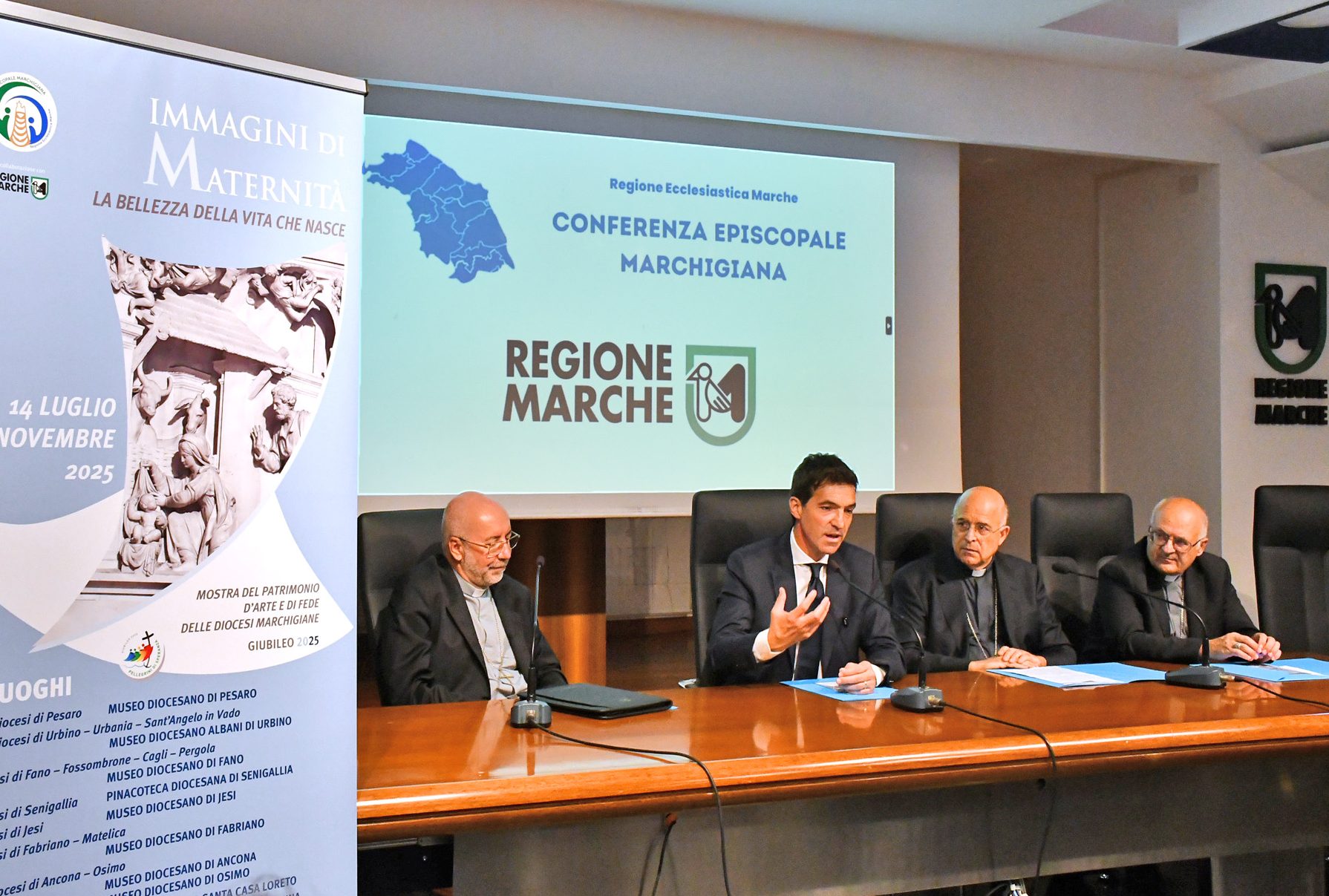 Mons. Francesco Massara, vescovo delegato dalla CEM per i Beni Culturali e arcivescovo delle Diocesi di Camerino-San Severino Marche e Fabriano-Matelica: “La mostra diffusa è un’esperienza sperimentale, innovativa e unica per l’intero panorama nazionale: per la prima volta una mostra diffusa mette in rete i musei delle 13 Diocesi Marchigiane, ciascuno con almeno tre opere significative selezionate non solo per il loro pregio artistico, ma per il contenuto simbolico e teologico con cui raccontano il tema che ci guida: la maternità e la bellezza della vita che nasce, privilegiando naturalmente le immagini mariane. Alcune di queste opere provengono da chiese rese inagibili dal sisma: riportarle allo sguardo del pubblico significa restituire memoria, identità e speranza ai territori feriti, trasformando la fruizione culturale in gesto di ricostruzione morale e spirituale. È un segno concreto di speranza e di bellezza che le nostre Chiese offrono al territorio, narrando il Vangelo attraverso i colori, la luce e le forme dell’arte. L’inaugurazione avviene in date articolate a partire dal 14 luglio e la mostra proseguirà almeno fino al 30 novembre: un arco temporale che abbraccia l’estate e l’avvio del nuovo anno scolastico. Desideriamo che chi entra in uno dei nostri musei sia invogliato a mettersi “in cammino” verso gli altri: la mostra è diffusa proprio per suscitare movimento, pellegrinaggio, scoperta integrale della nostra splendida regione”.