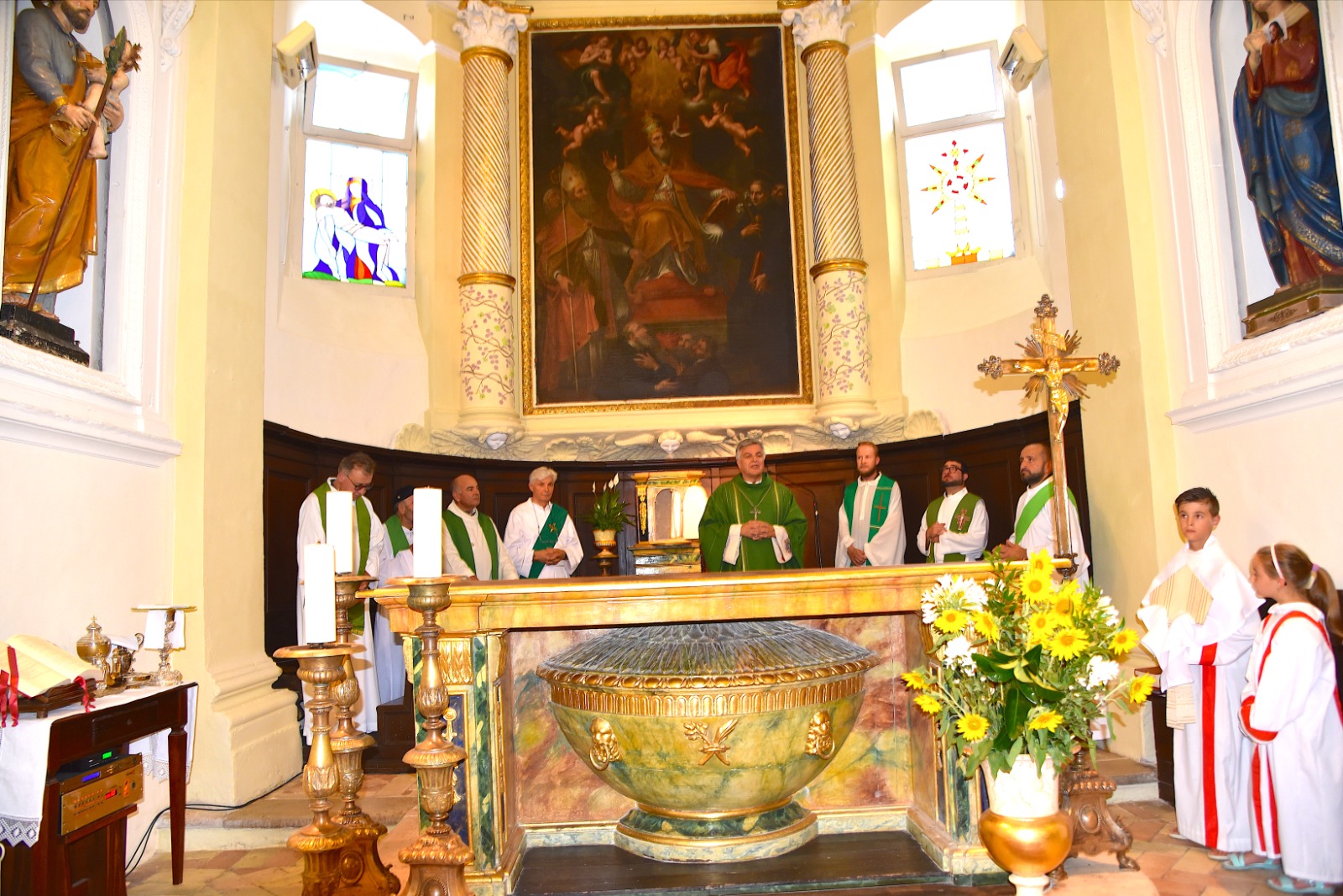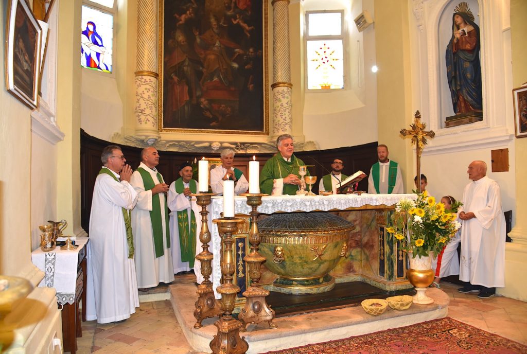 A celebrare la solenne riapertura è stato il Vescovo della diocesi di San Benedetto del Tronto – Montalto delle Marche – Ripatransone, Mons. Gianpiero Palmieri. Con lui hanno concelebrato Don Pino Raio, amministratore parrocchiale, insieme a una rappresentanza significativa del clero legato a Montelparo: Padre Luigi Moretti, missionario montelparese attualmente a Cuba; Padre Gabriele Lupi, parroco di Montedinove e Guardiano del convento San Thomas Becket; Padre Giovanni Guerrino Mazzoni, storico vice parroco del paese, oggi 96enne; e Don Lorenzo Bruni, parroco delle comunità di Montalto delle Marche.