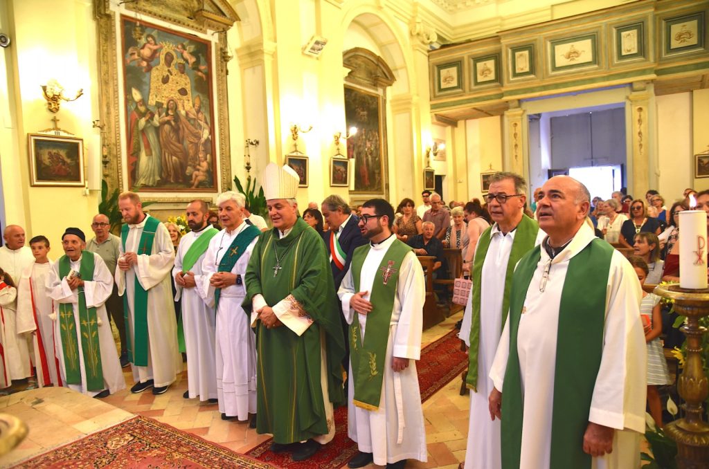 La celebrazione eucaristica, intensa e partecipata, è stata accompagnata dai canti della Corale “Gregorio Petrocchini” di Montelparo, intitolata all’illustre camerlengo di Papa Sisto V, figura centrale nella storia della chiesa: fu proprio lui a volerne la costruzione, purtroppo senza riuscire a vederla completata a causa della sua morte prematura.
