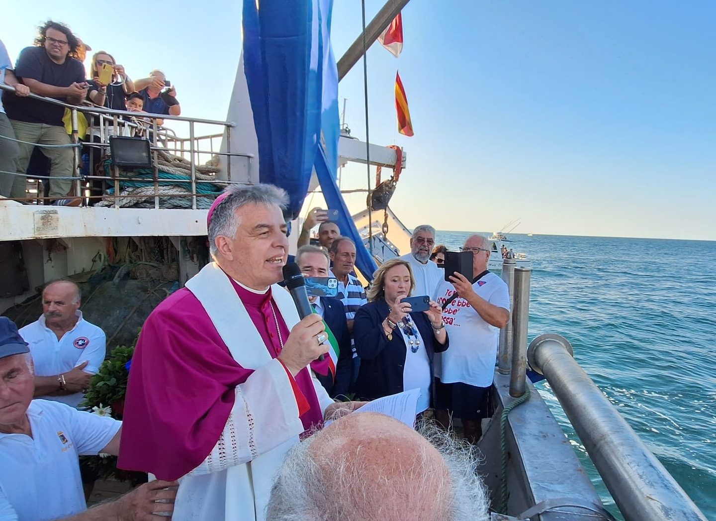 In questa festa della Marina guardiamo insieme il mare, guardiamo alla Stella del Mattino. Lo sguardo che da secoli il nostro popolo ha rivolto a Maria, lo rivolgiamo anche noi: è lei la Stella della speranza, la Madre di tutti i popoli.